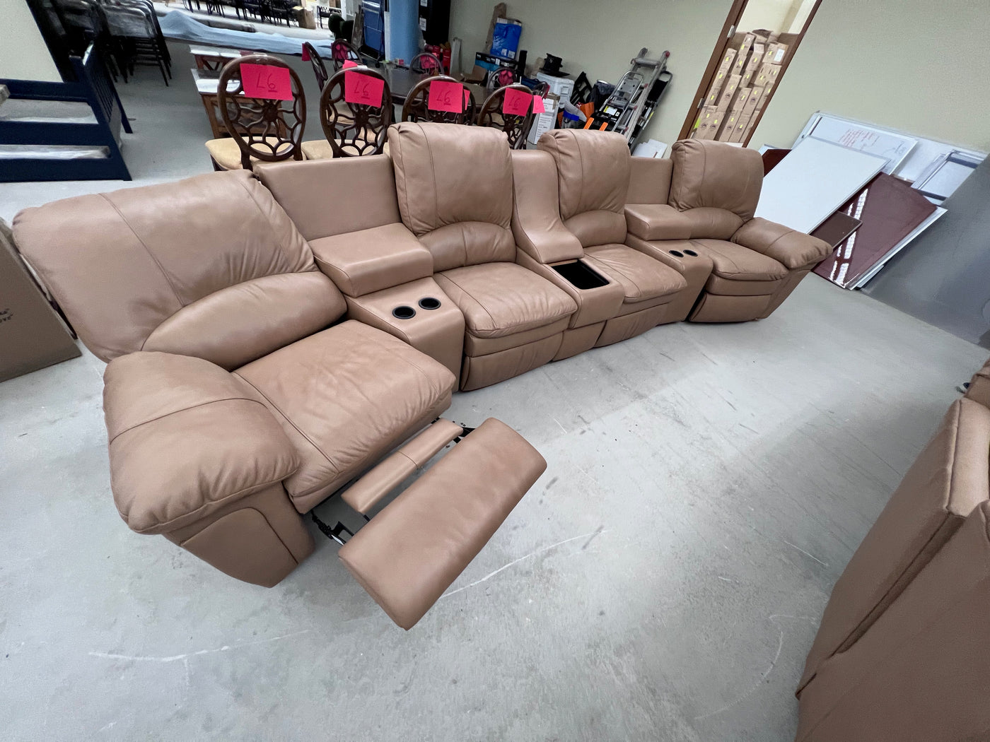 Elran Brown Leather Power Reclining Theatre Sectional Sofa # 3.