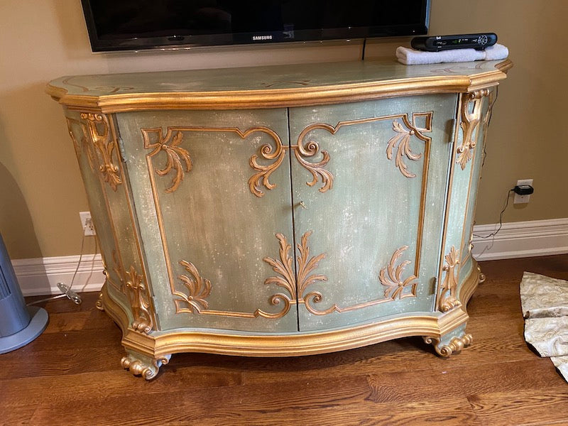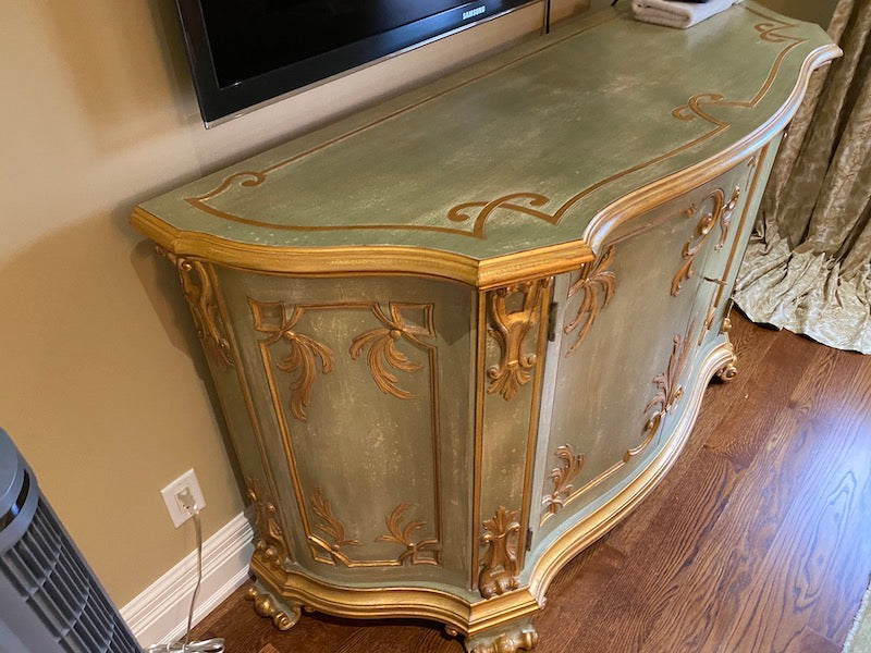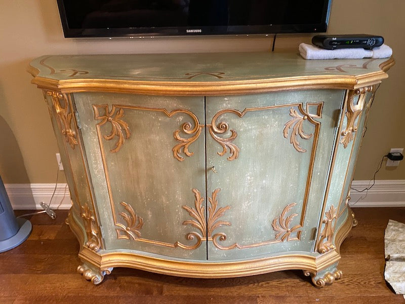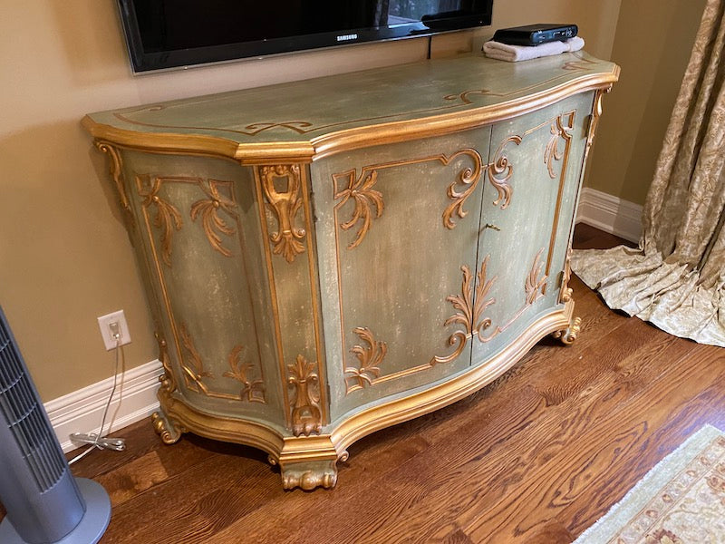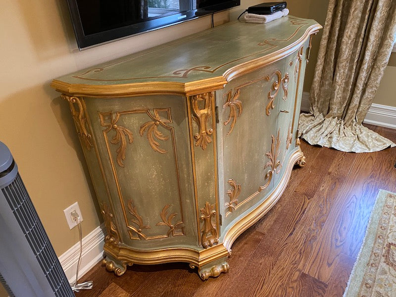 Wood Carved Entertainment Cabinet, Made In Italy.