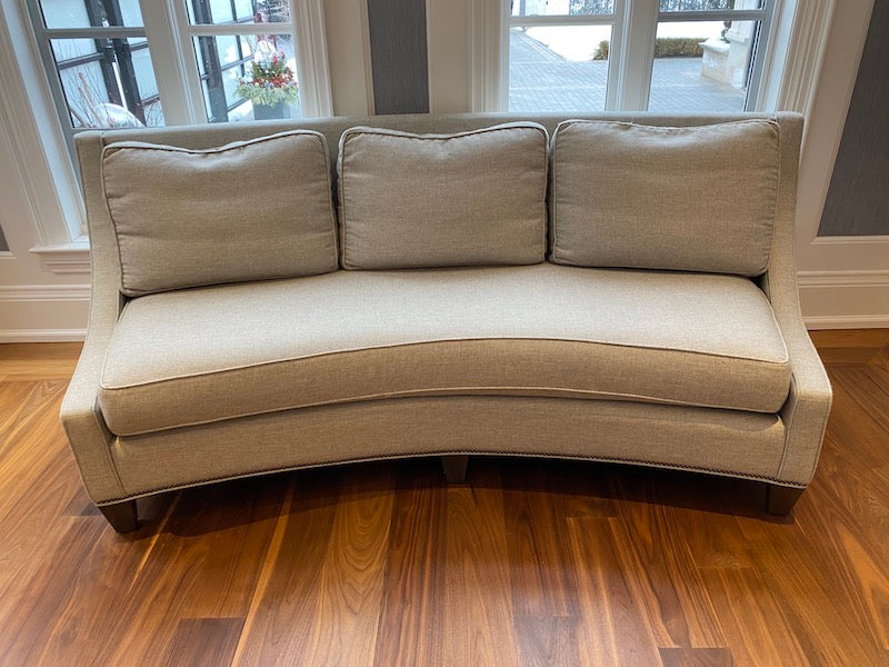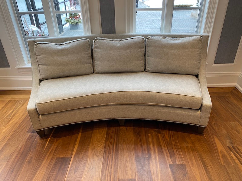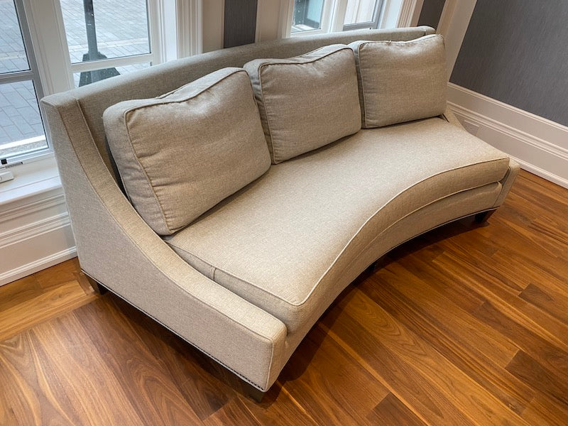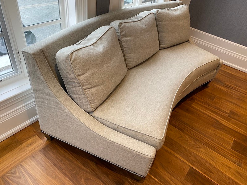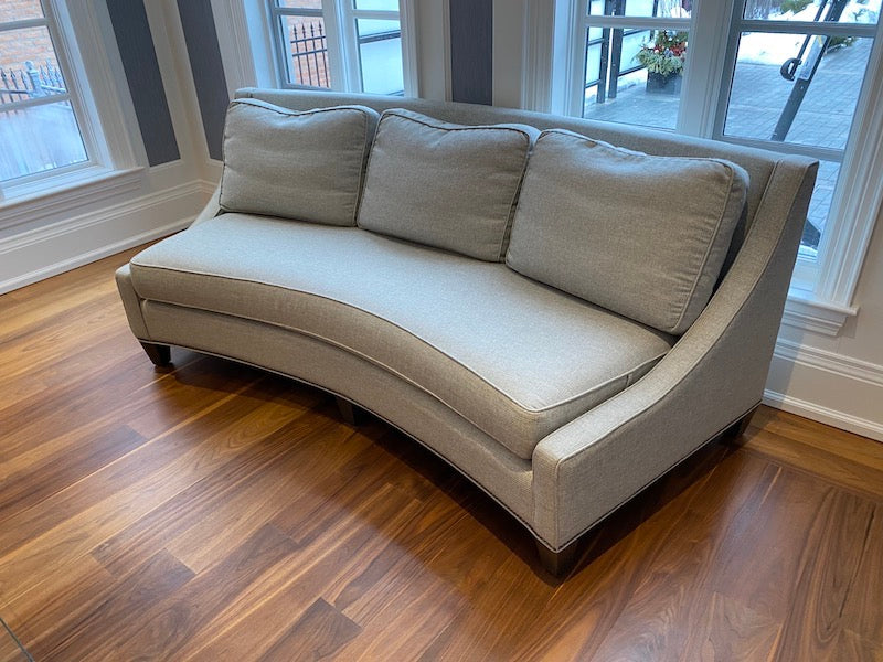 Custom Made Grey Upholstered Curved Sofa by "Silva Custom Furniture".