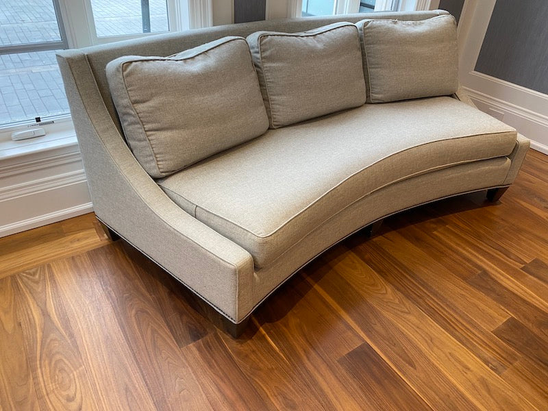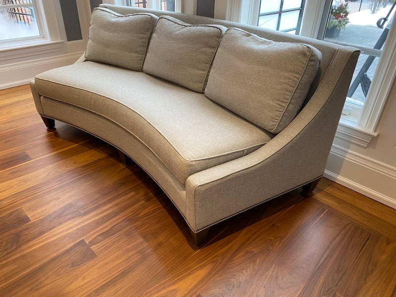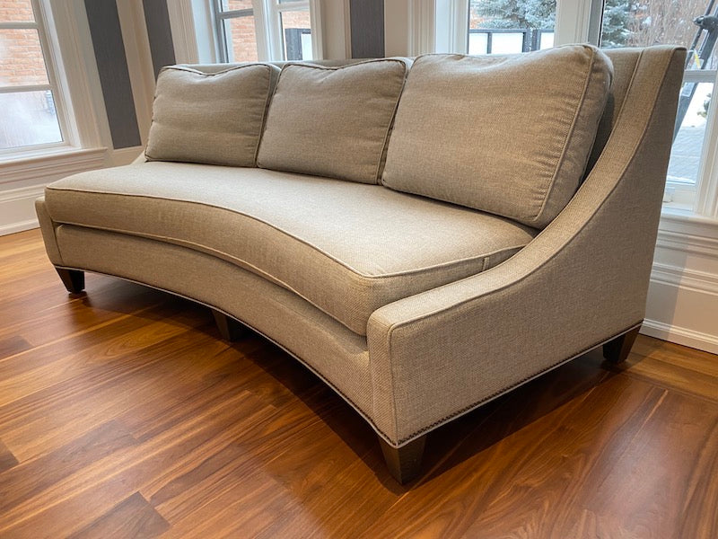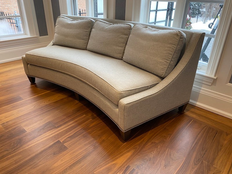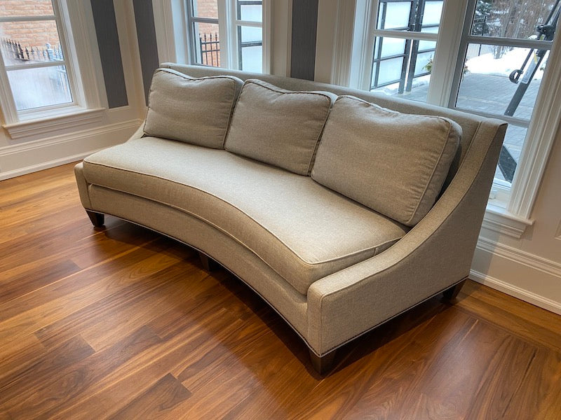 Custom Made Grey Upholstered Curved Sofa by "Silva Custom Furniture"