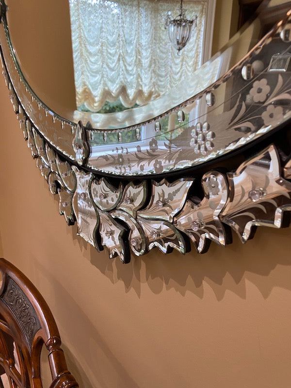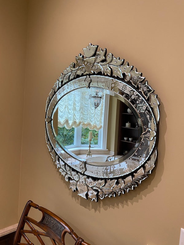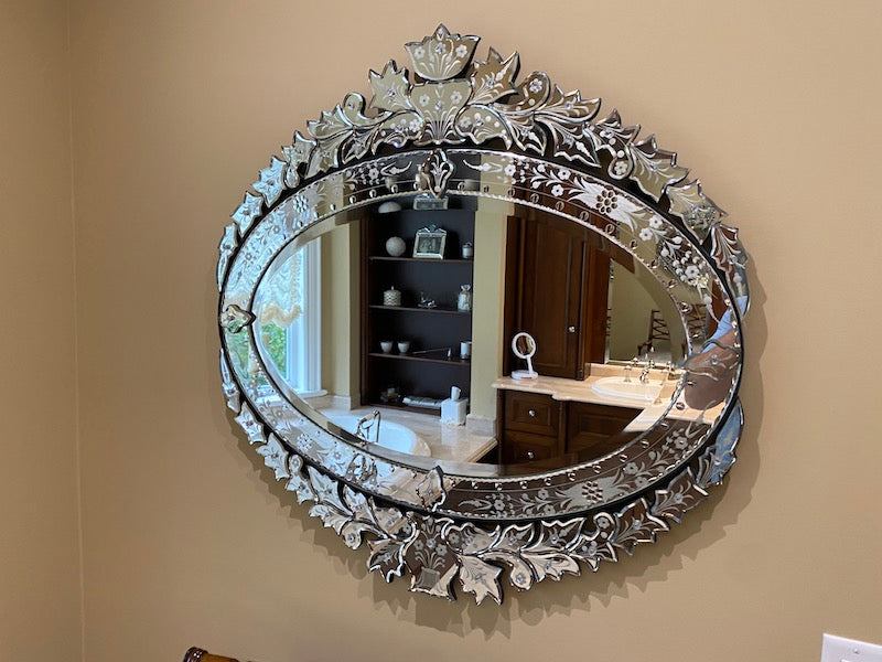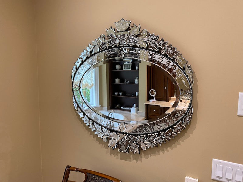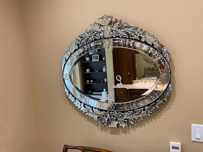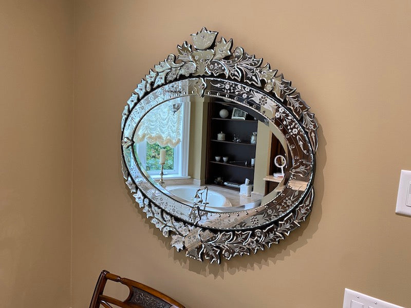 Palma Brava- Elegant Oval Mirror with Detailed Trim.