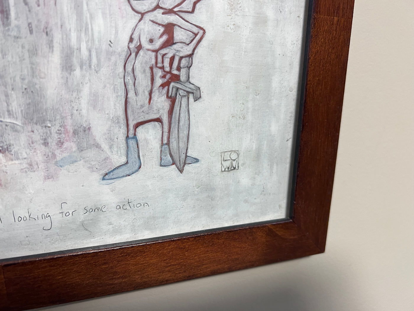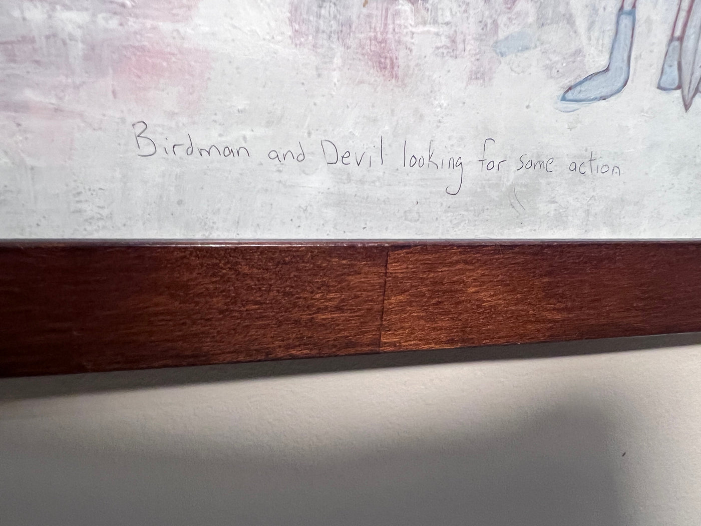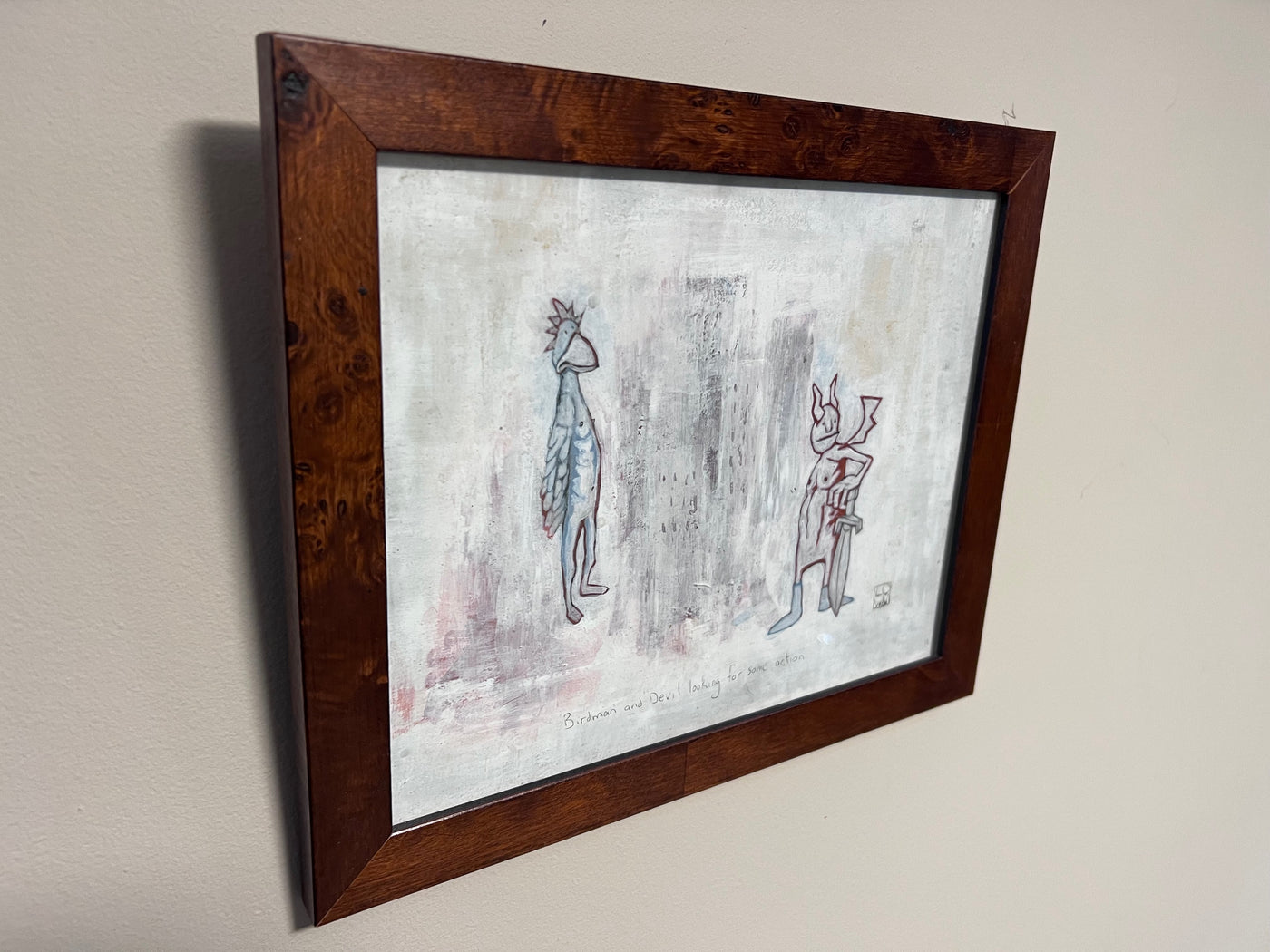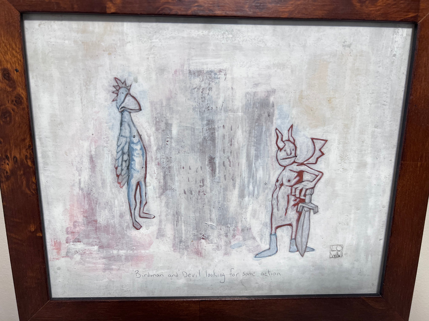 Jesse Lown 'Birdman and Devil Looking for some Action' Mixed Media.
