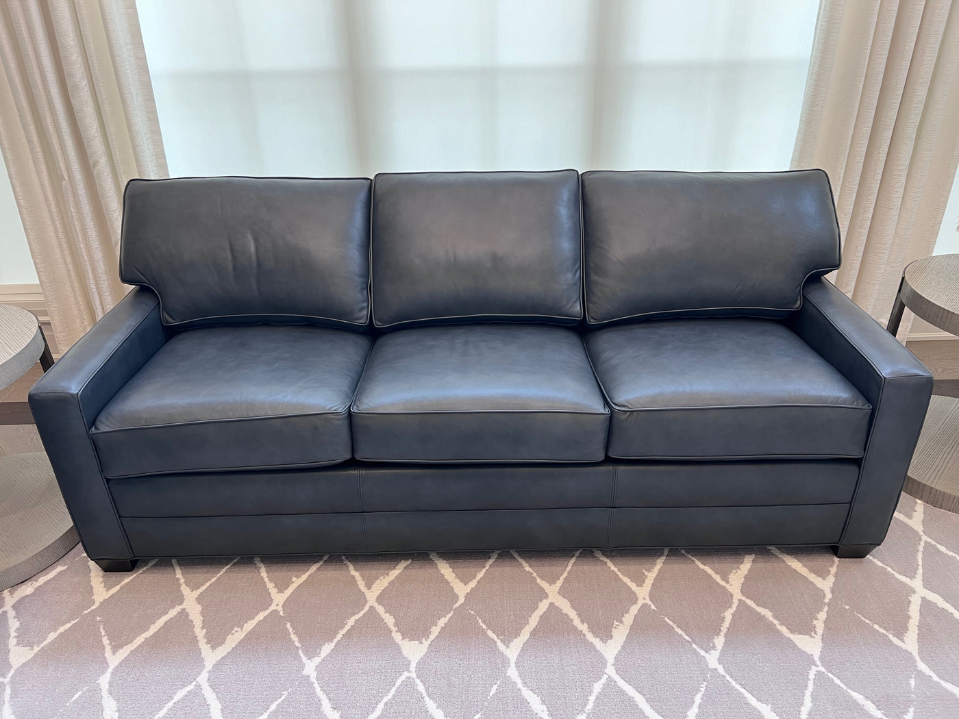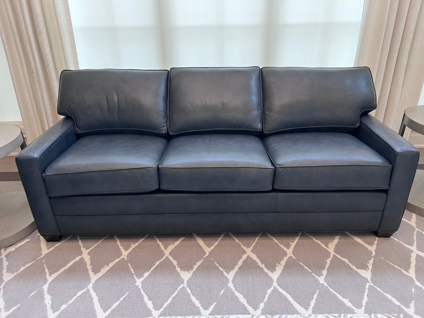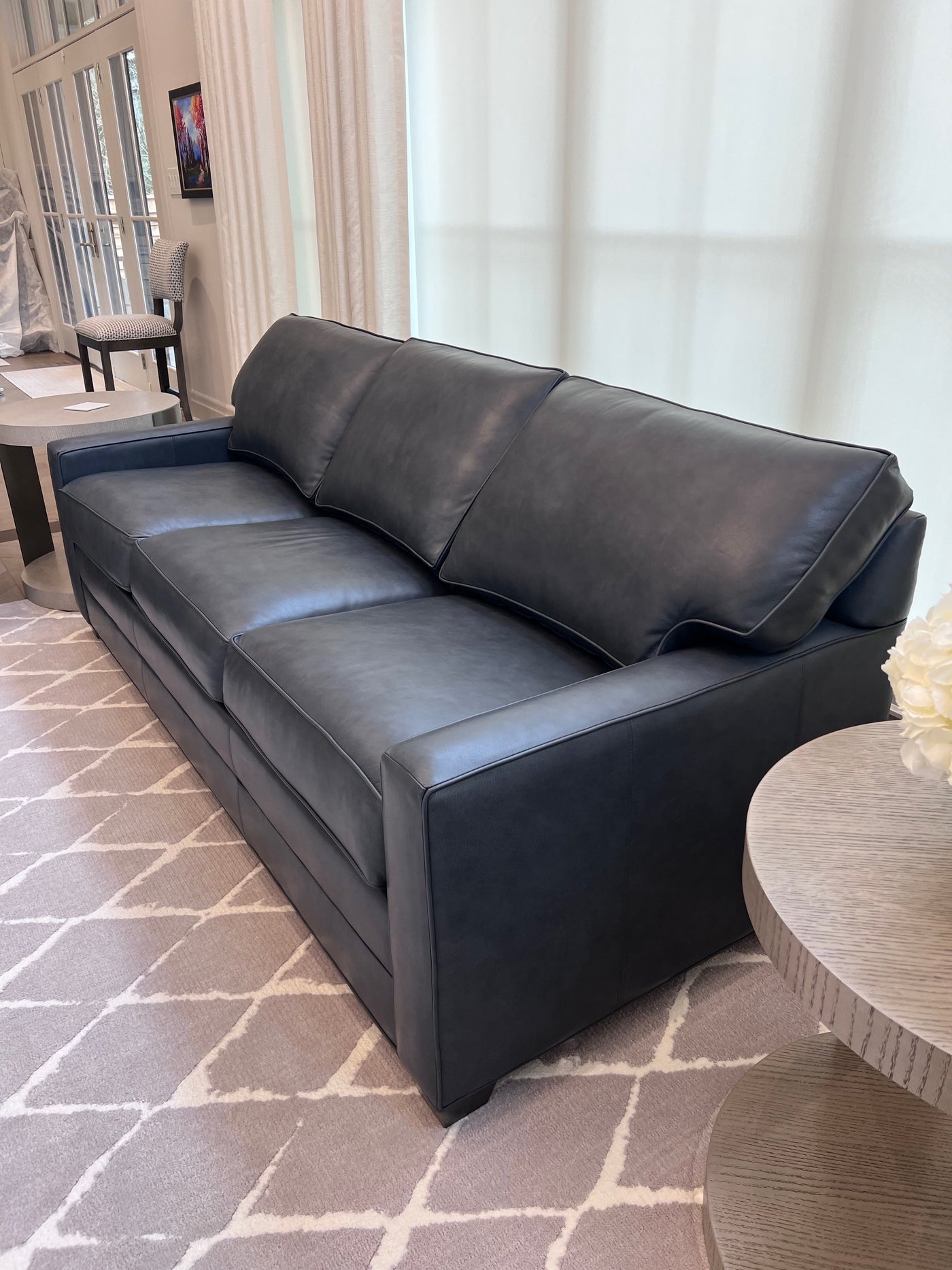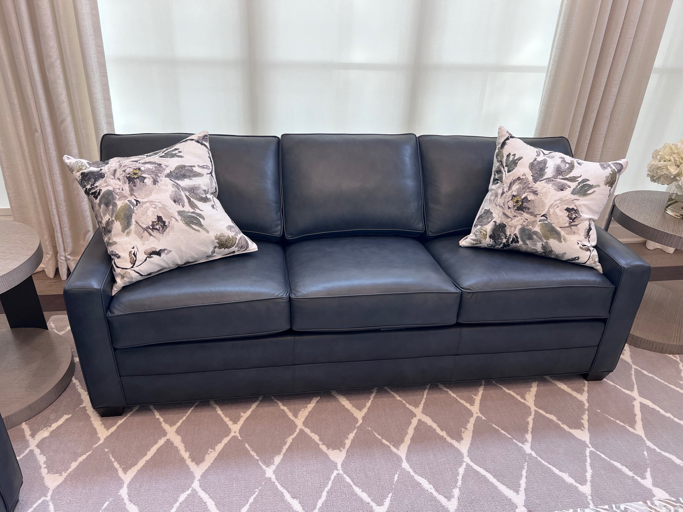 Ethan Allen Bennett Track-Arm Leather Three-Seat Sofa, in Sherwood Blue # 1 (*retail $5,488).