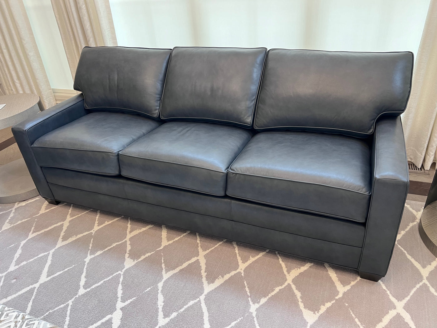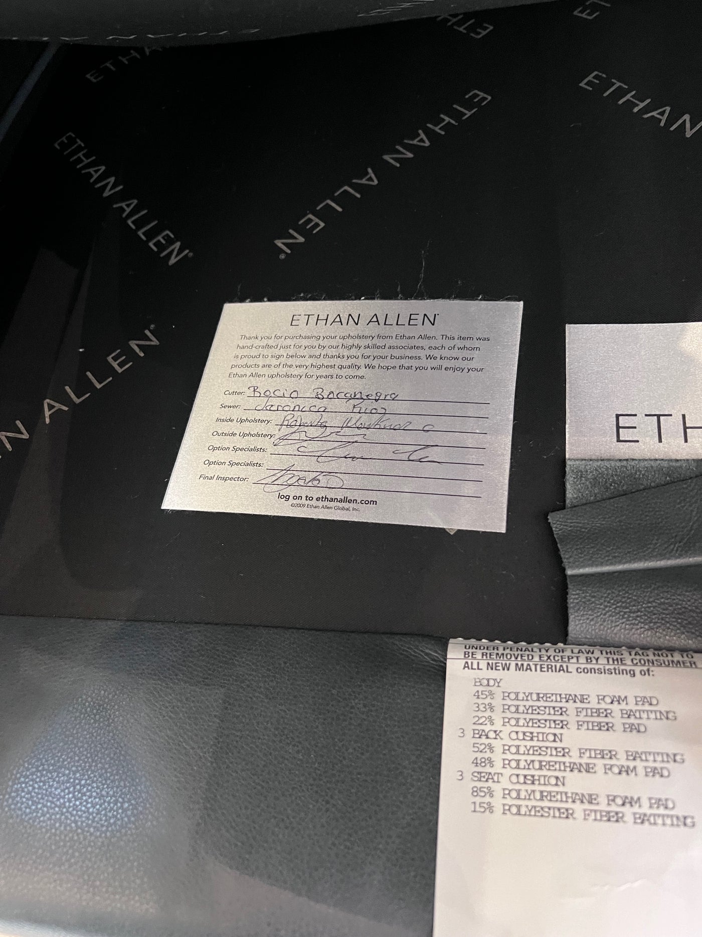 PLEASE NOTE: the colour code on the Ethan Allen website is "Sherwood Blue L9887". However the colour presents as a gray-ish blue and is not a predominant blue.