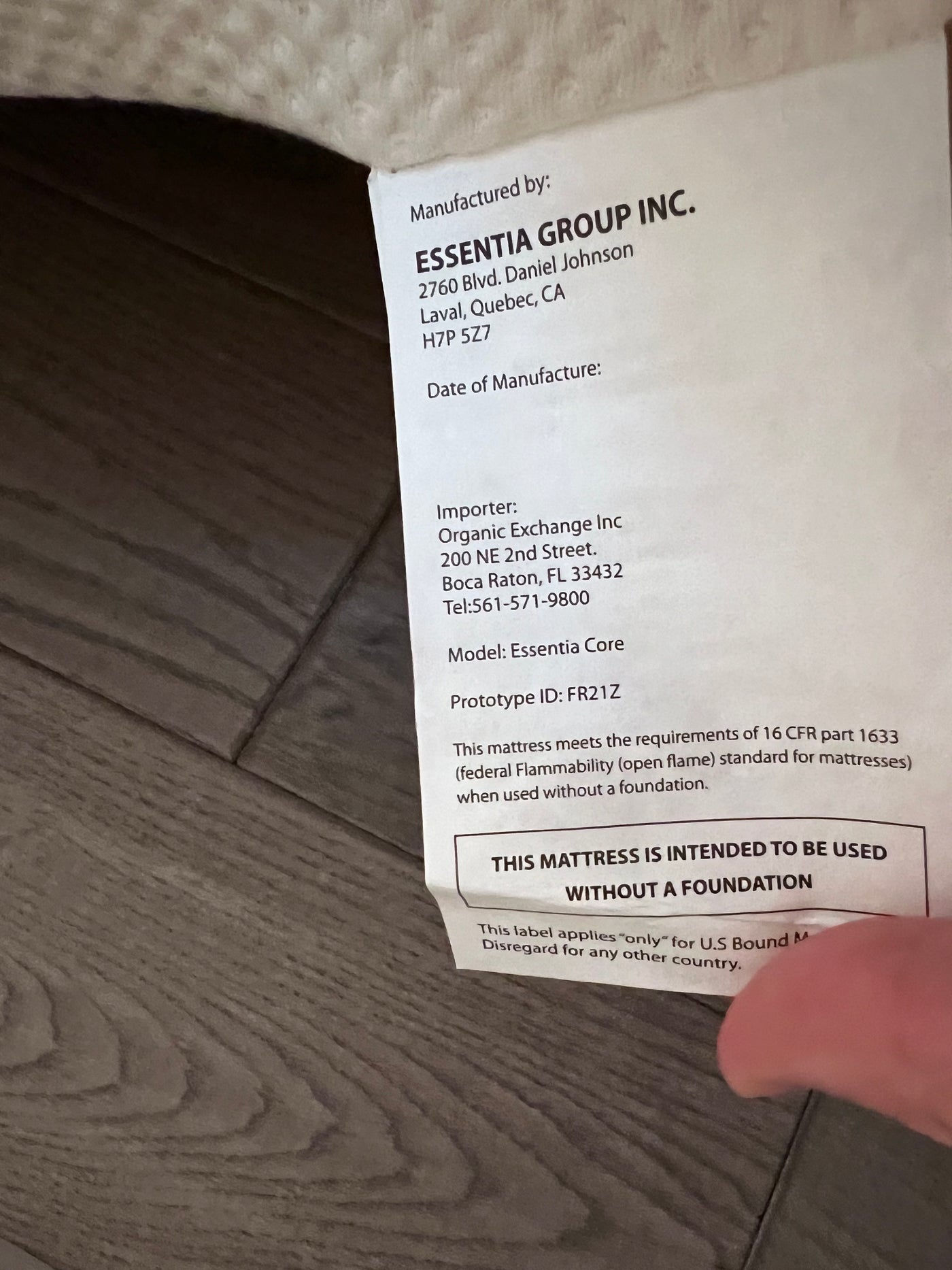 Essentia Dormeuse Fior Contour Organic Mattress, Queen (*retail $8,500).