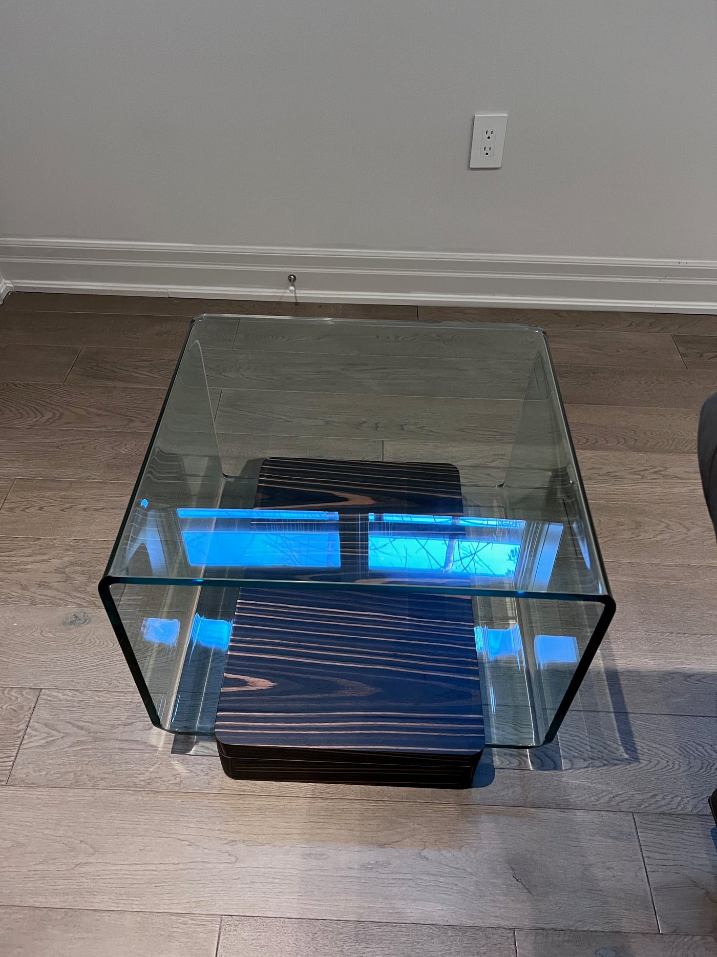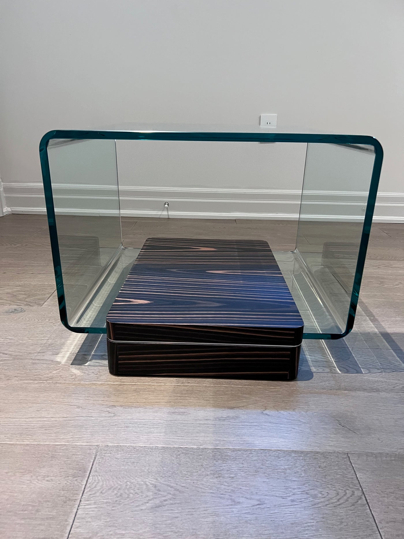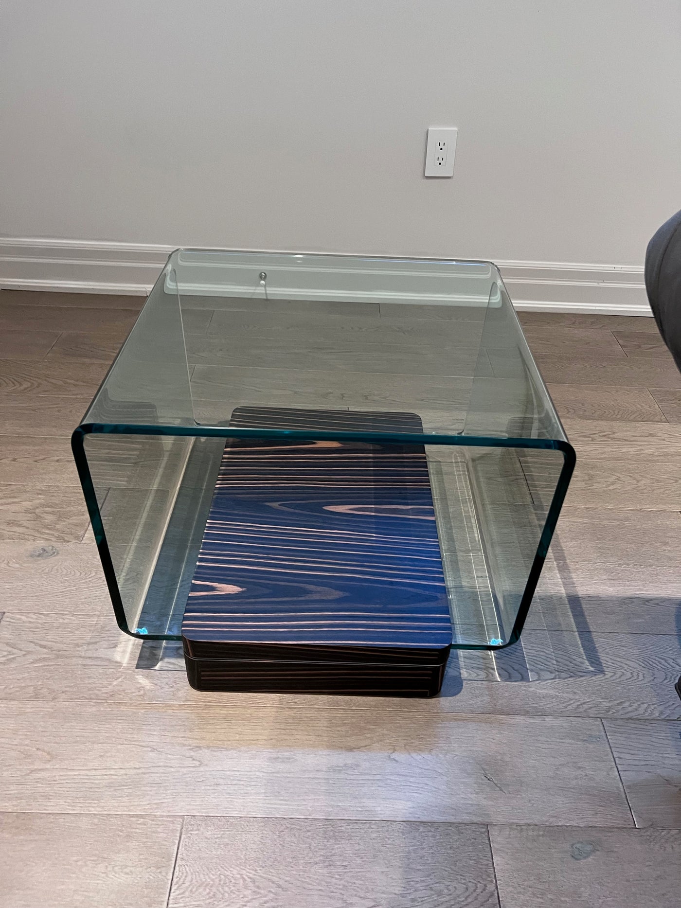 Simple and elegant the Lepage End Table is perfect for any living room. Square in shape this end table can be used with sofas or sectionals. The thick tempered glass top provides a unique design element with its rounded sides. Complimented by a wood base.