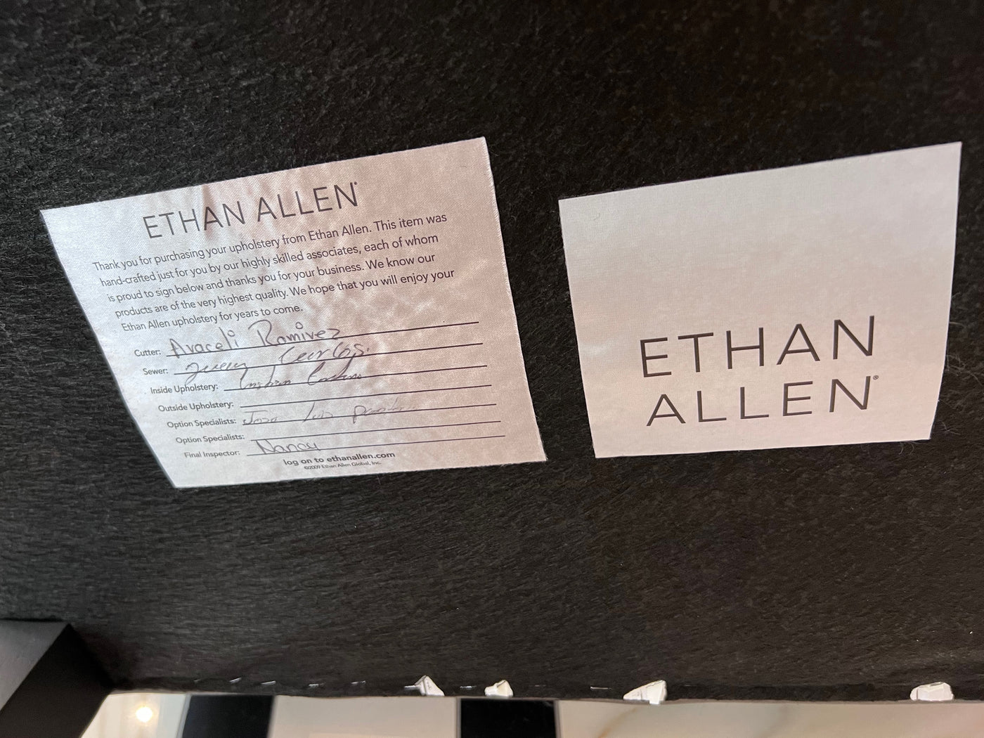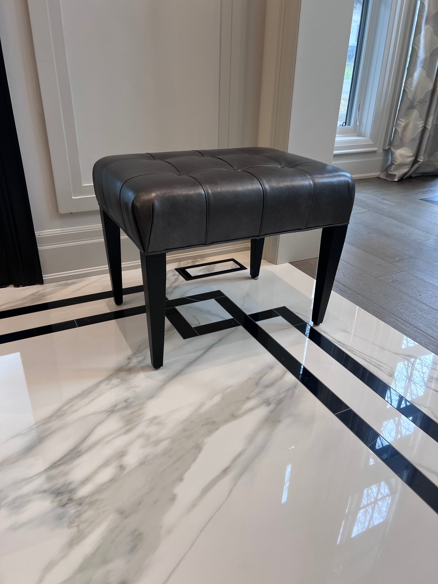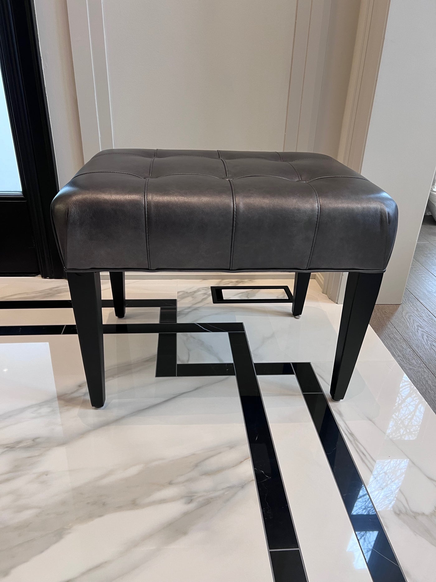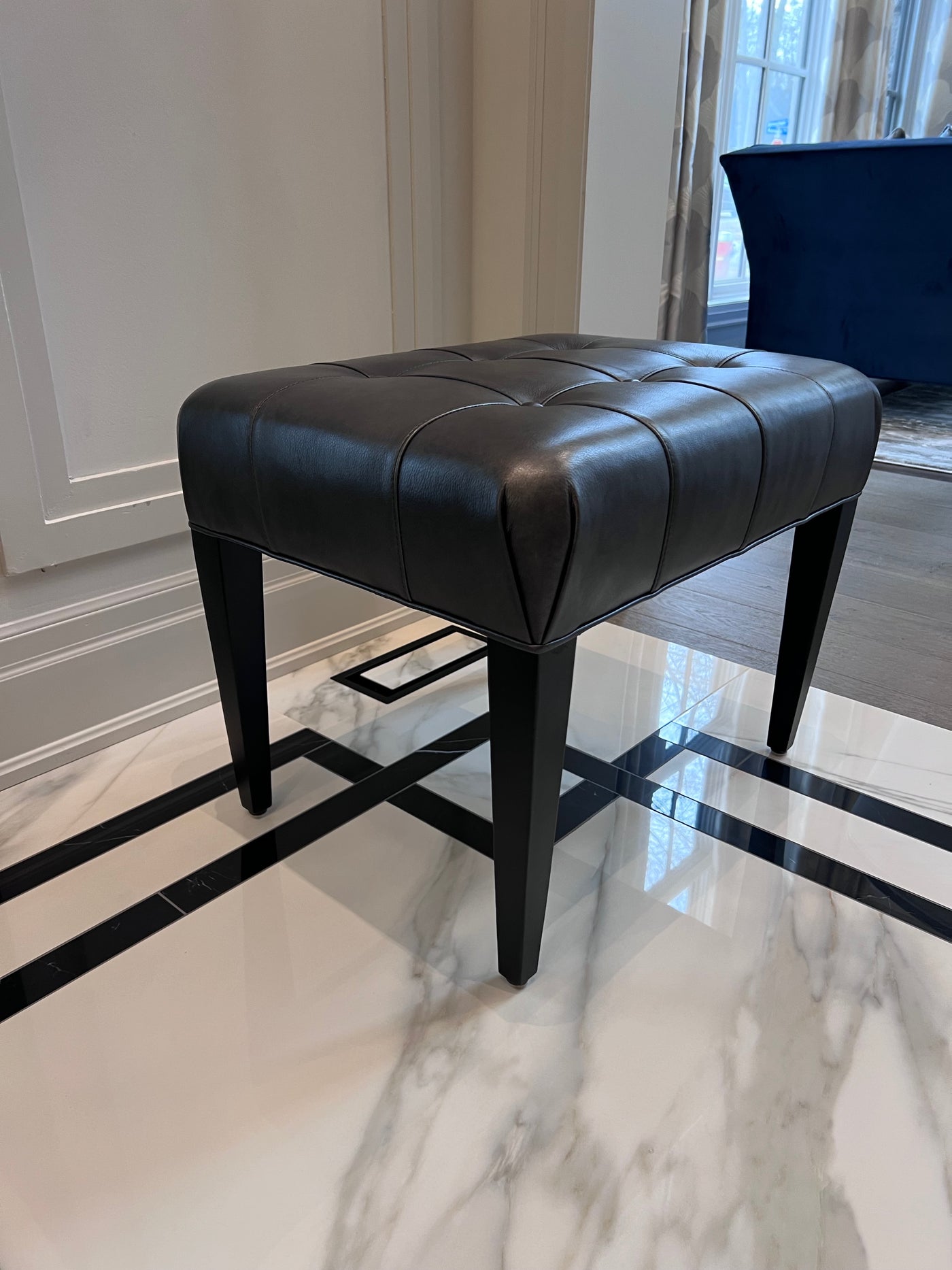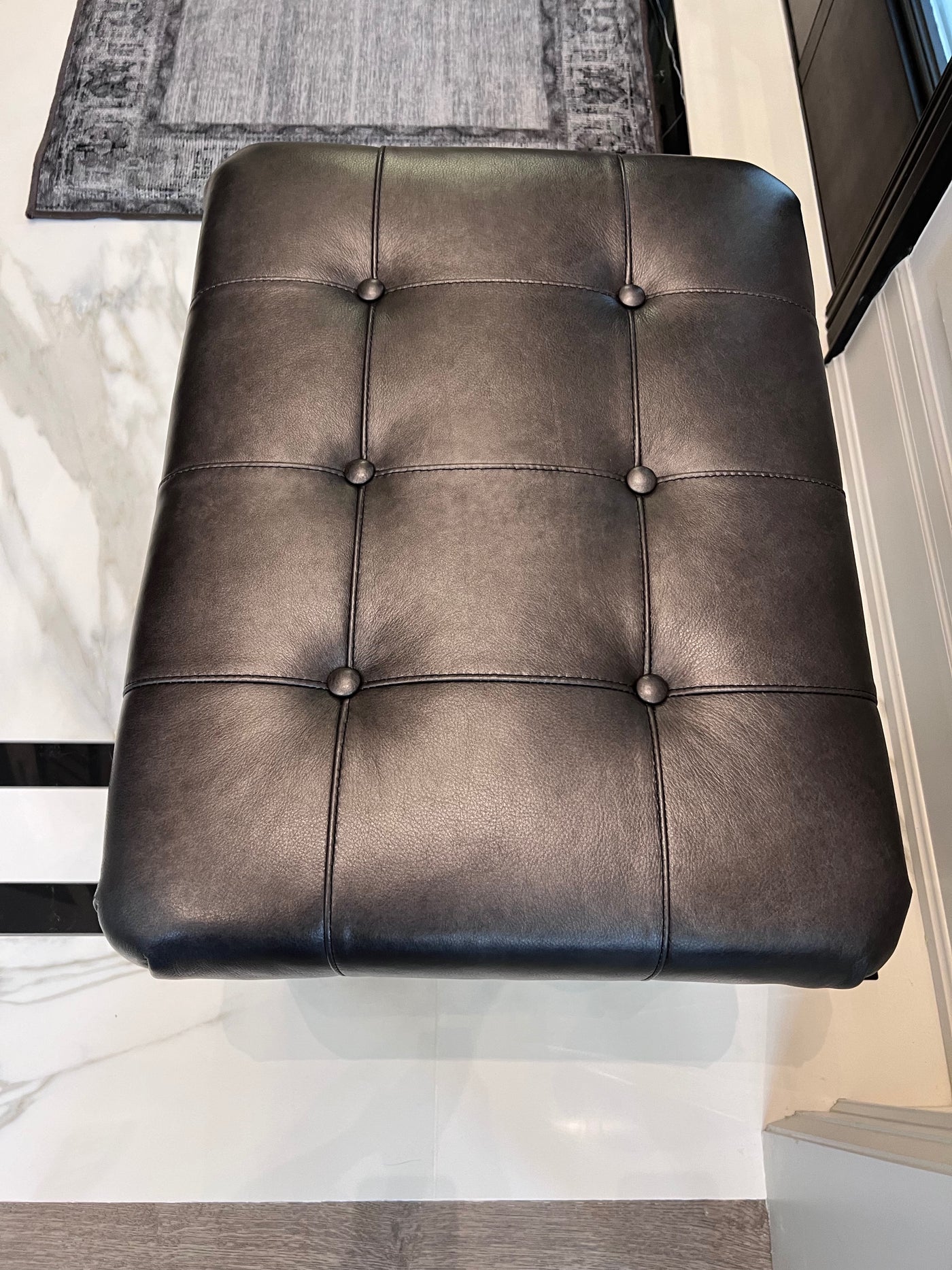 Ethan Allen Harbor Leather Tufted Wood-Base Bunching Ottoman, Lazaro Charcoal # 1 (*retail $1,072).