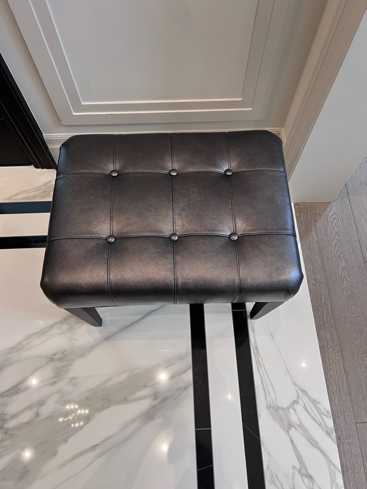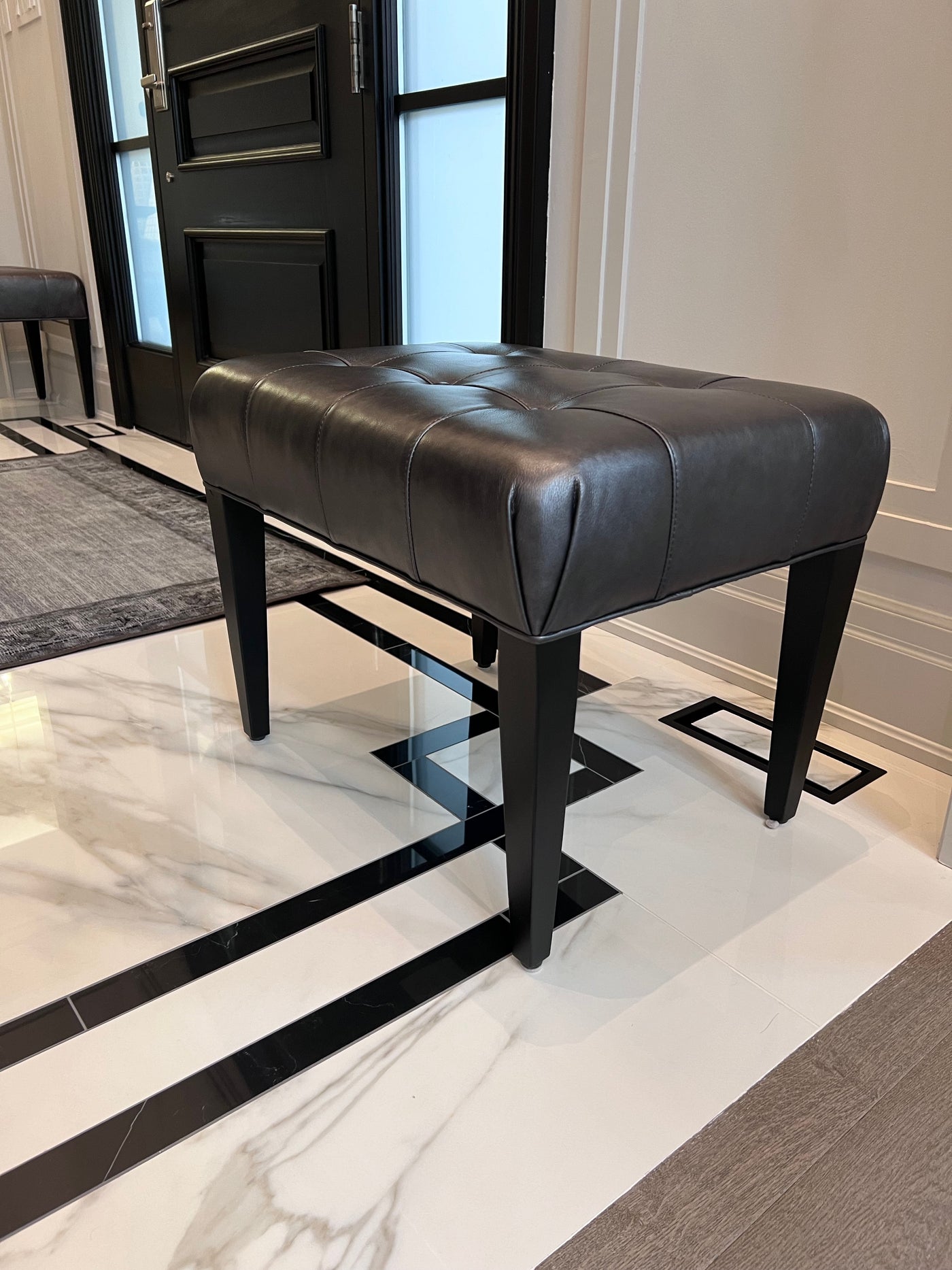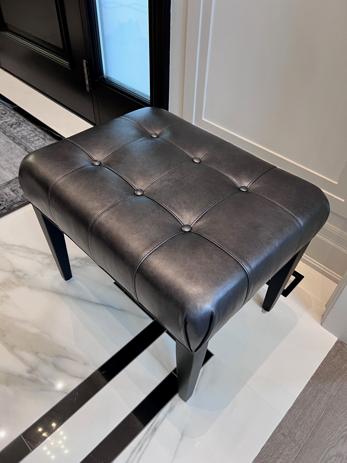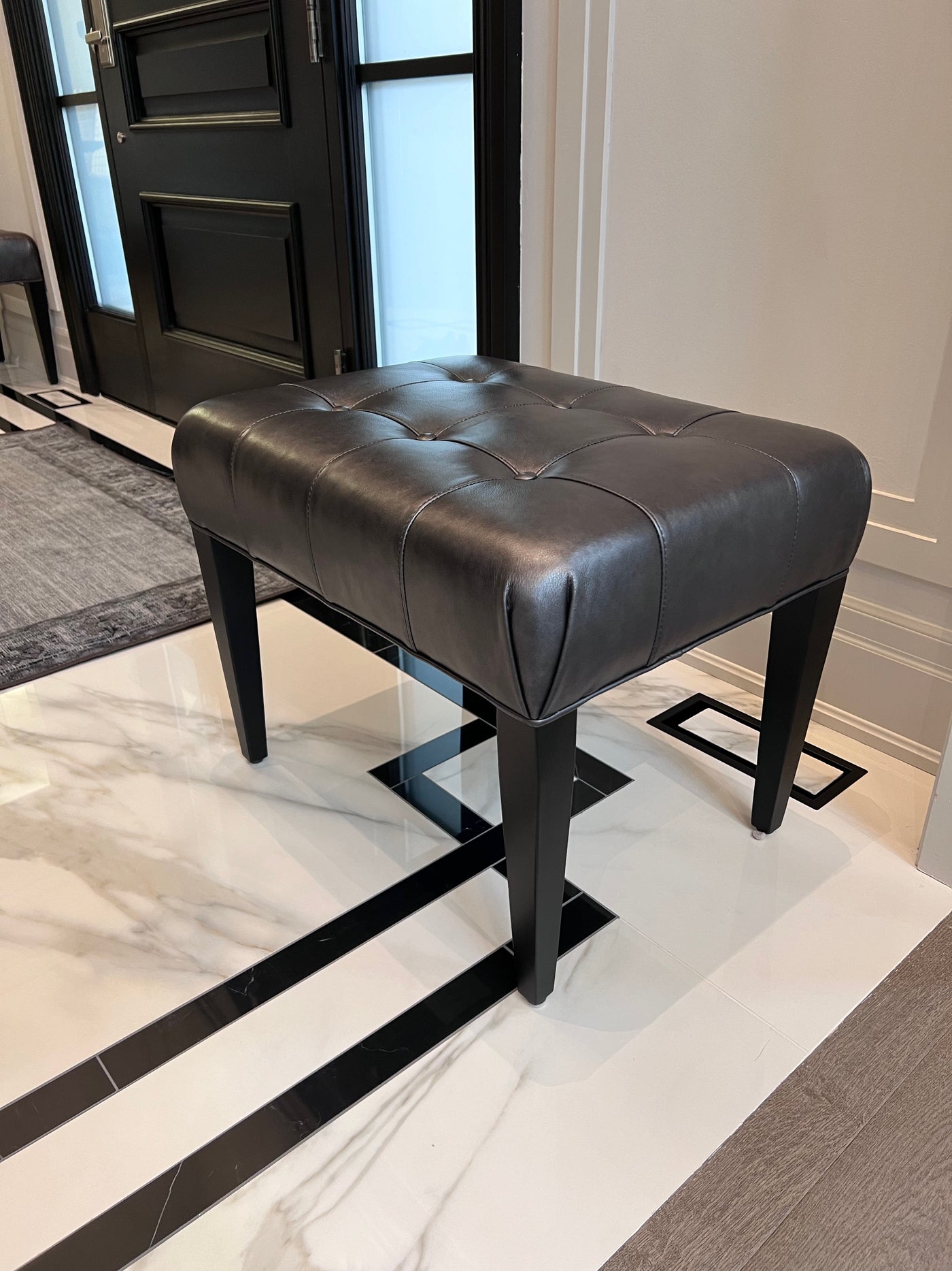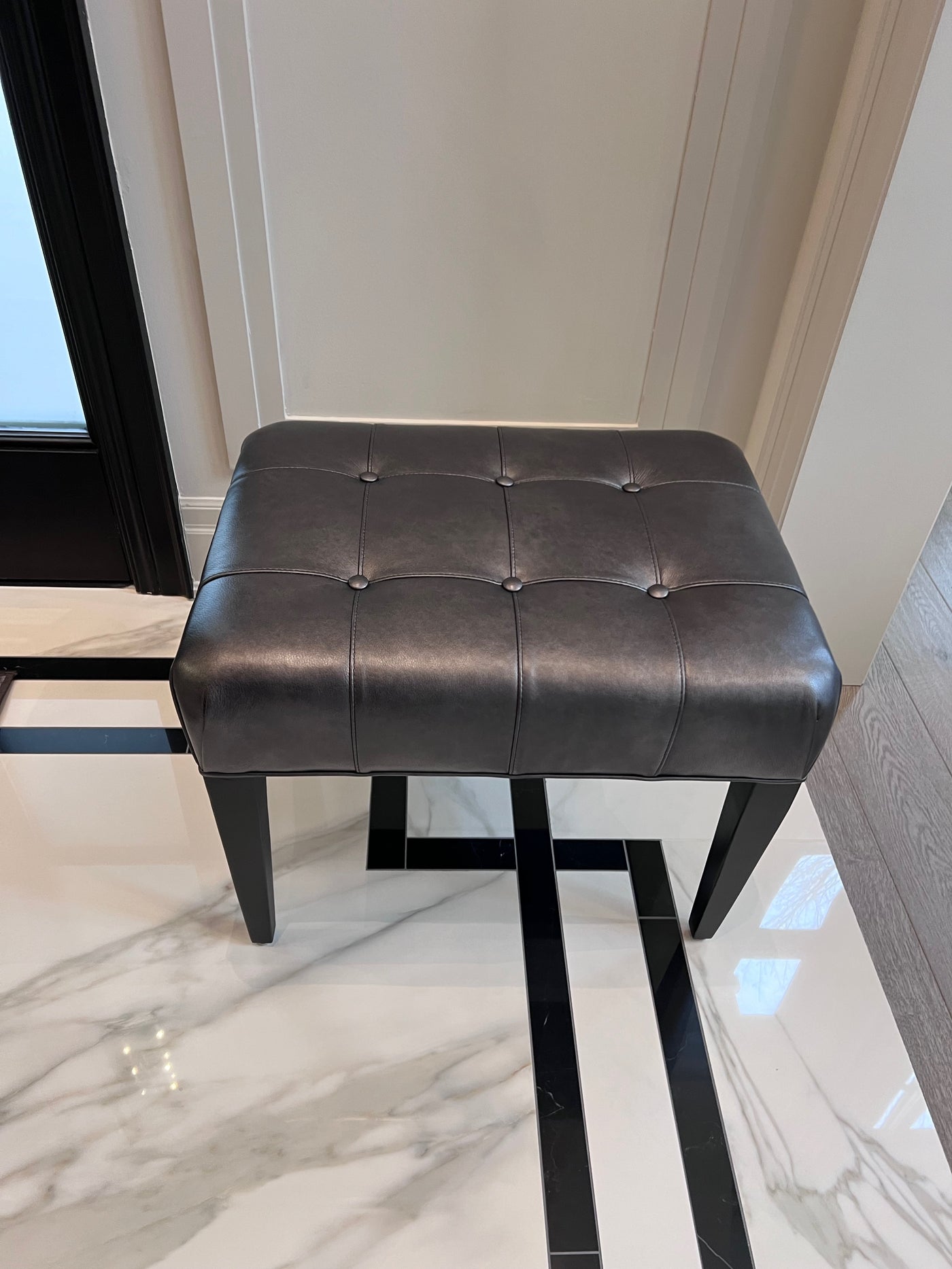 Ethan Allen Harbor Leather Tufted Wood-Base Bunching Ottoman, Lazaro Charcoal # 1 (*retail $1,072).