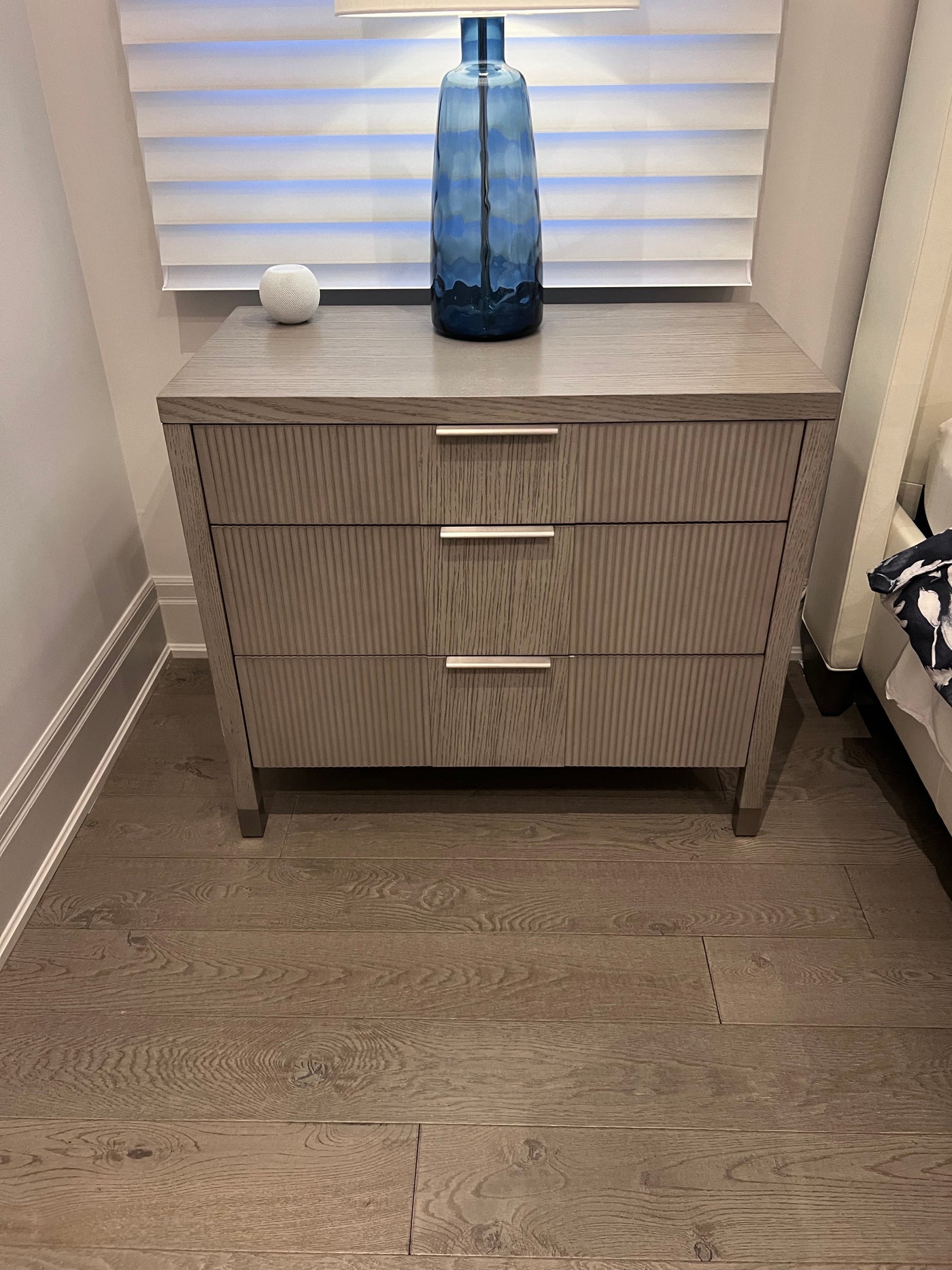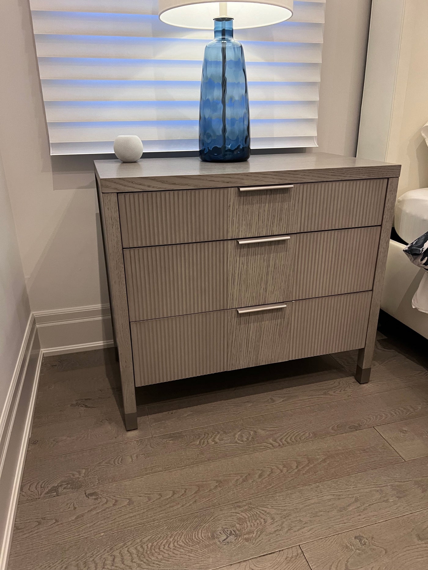 Bring elegant, streamlined design and a relaxed modern vibe into your bedroom. The Valermo three-drawer chest makes it possible, offering sophisticated style along with a healthy helping of storage. A fluted pattern on each drawer front, plus a prominent wood grain created by wire-brushing the oak, adds exceptional, touchable texture. When you're looking for a more perfect union of style and substance, this three-drawer dresser delivers.