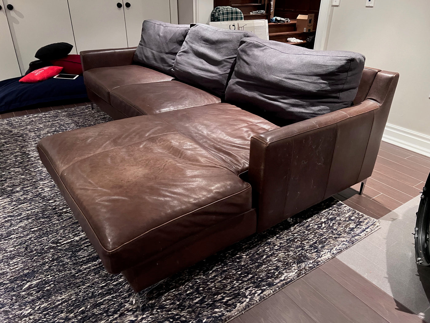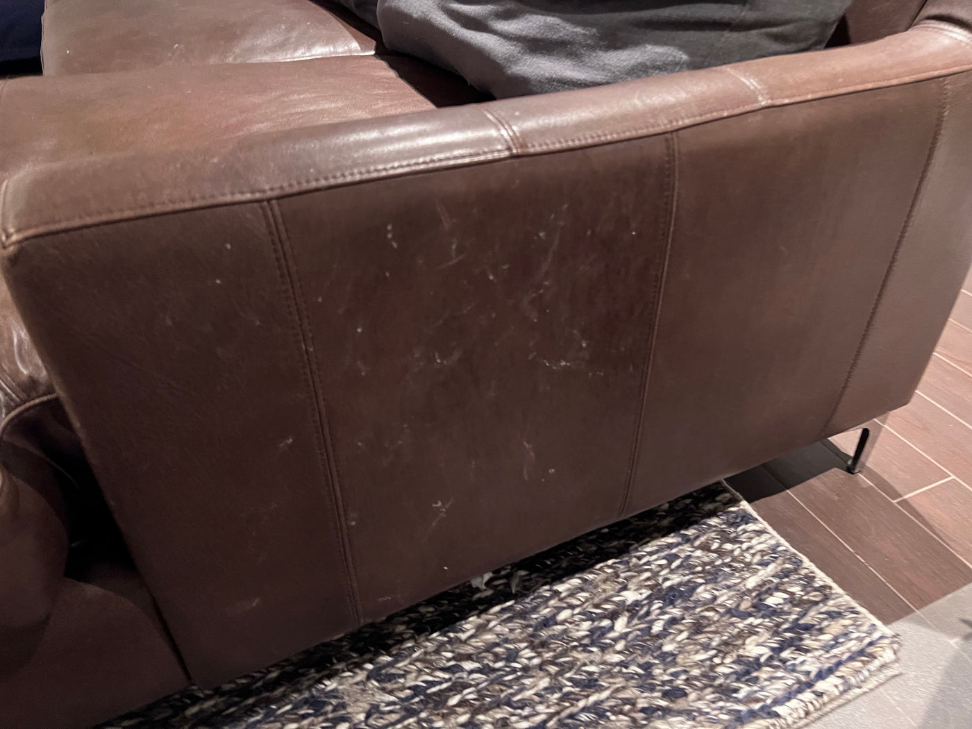 some wear on the leather consistent with frequent use. Back cushions have been well used. mostly in good condition!!