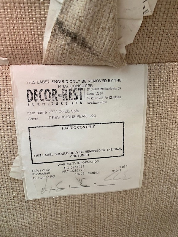 Decor-Rest Beige Condo Sofa (Prestigious Pearl 220).