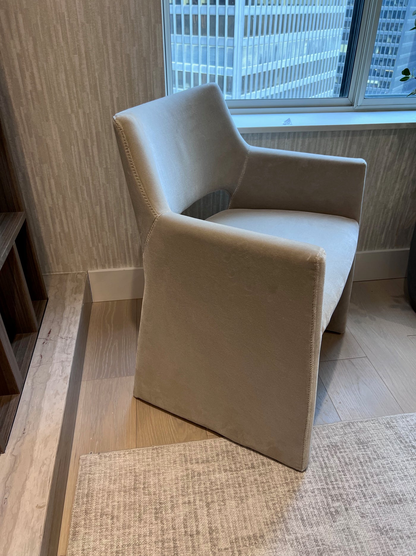 *BRAND NEW CB2 FOLEY FAUX MOHAIR GREY ARMCHAIR + EQ3 Throw Blanket (*Retail value $629)