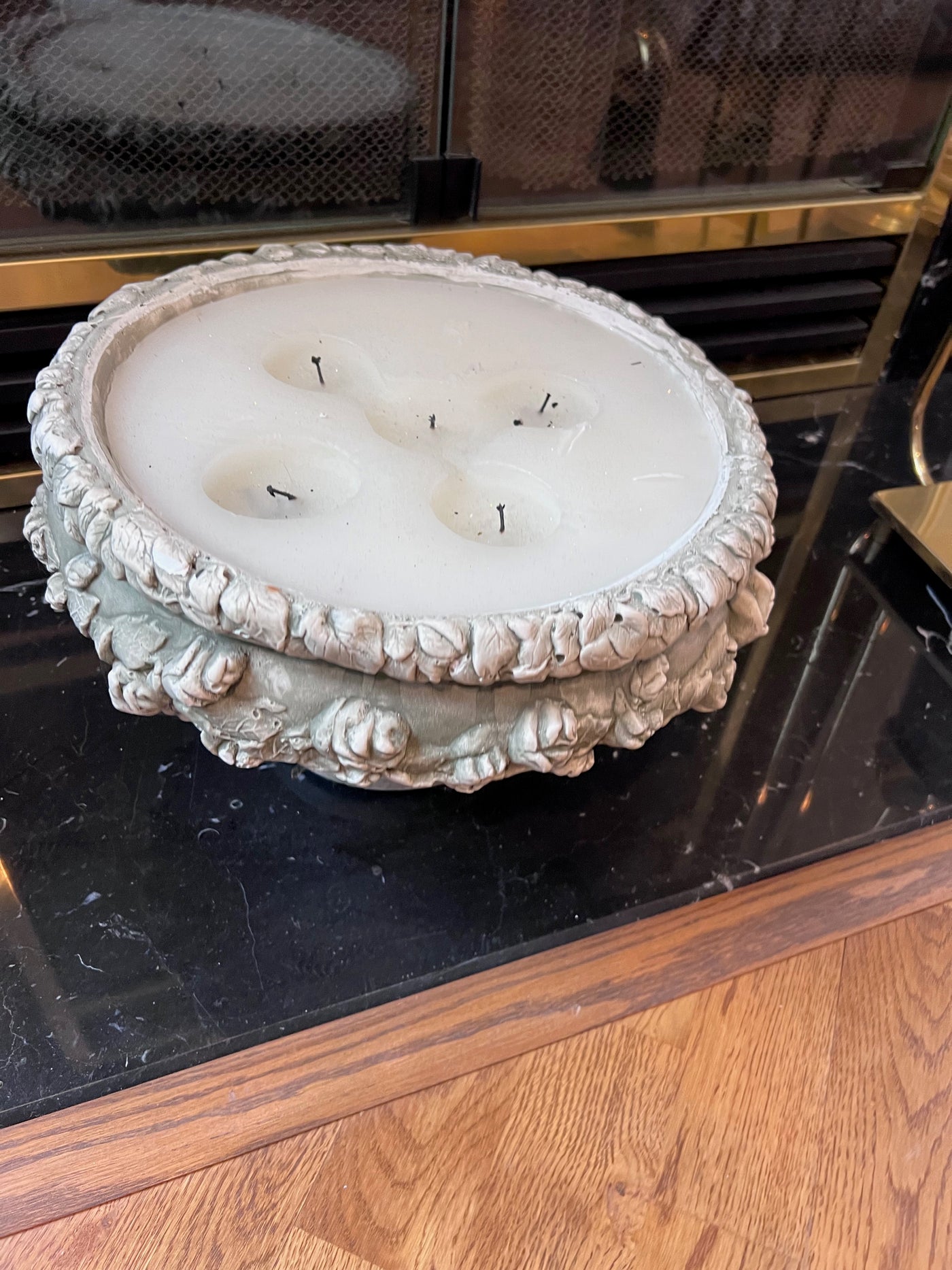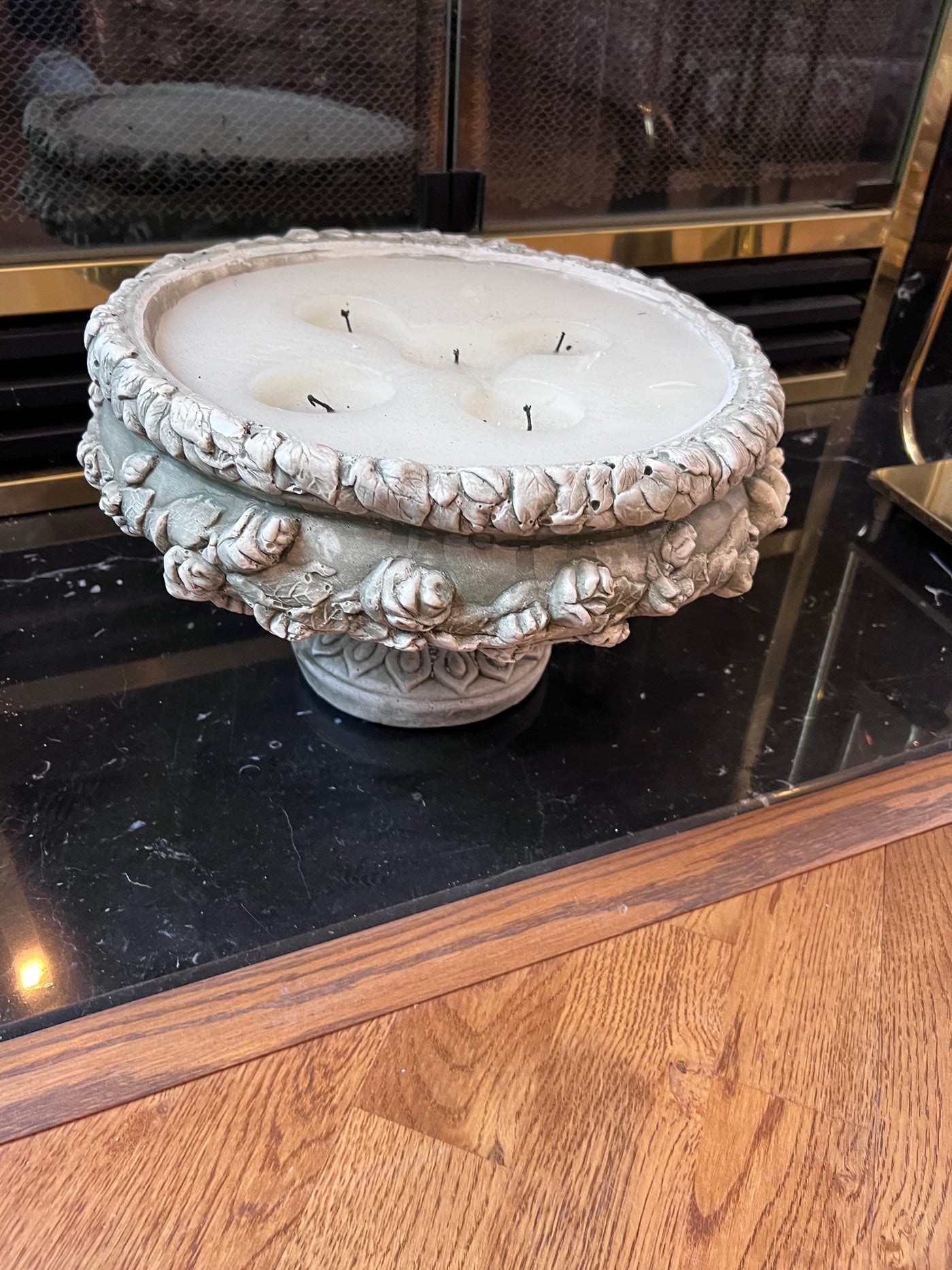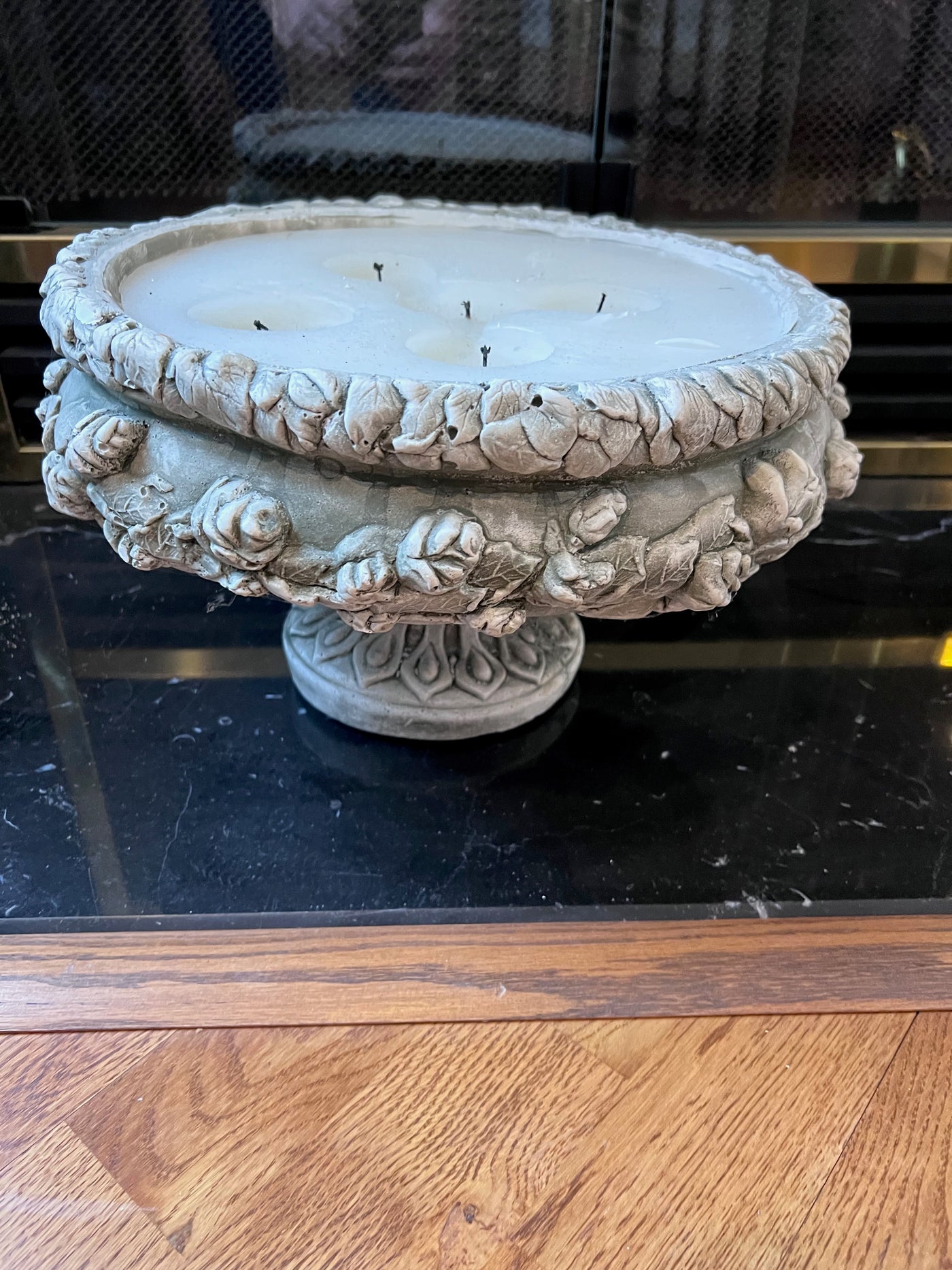 Large Candle in Ornate Ceramic Holder