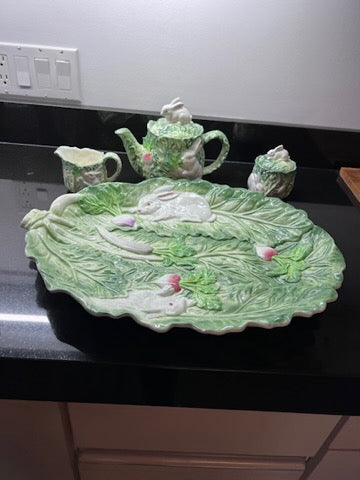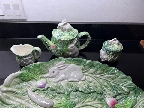 Rabbit Patch by Shafford- Teapot, Cream + Sugar, Platter.