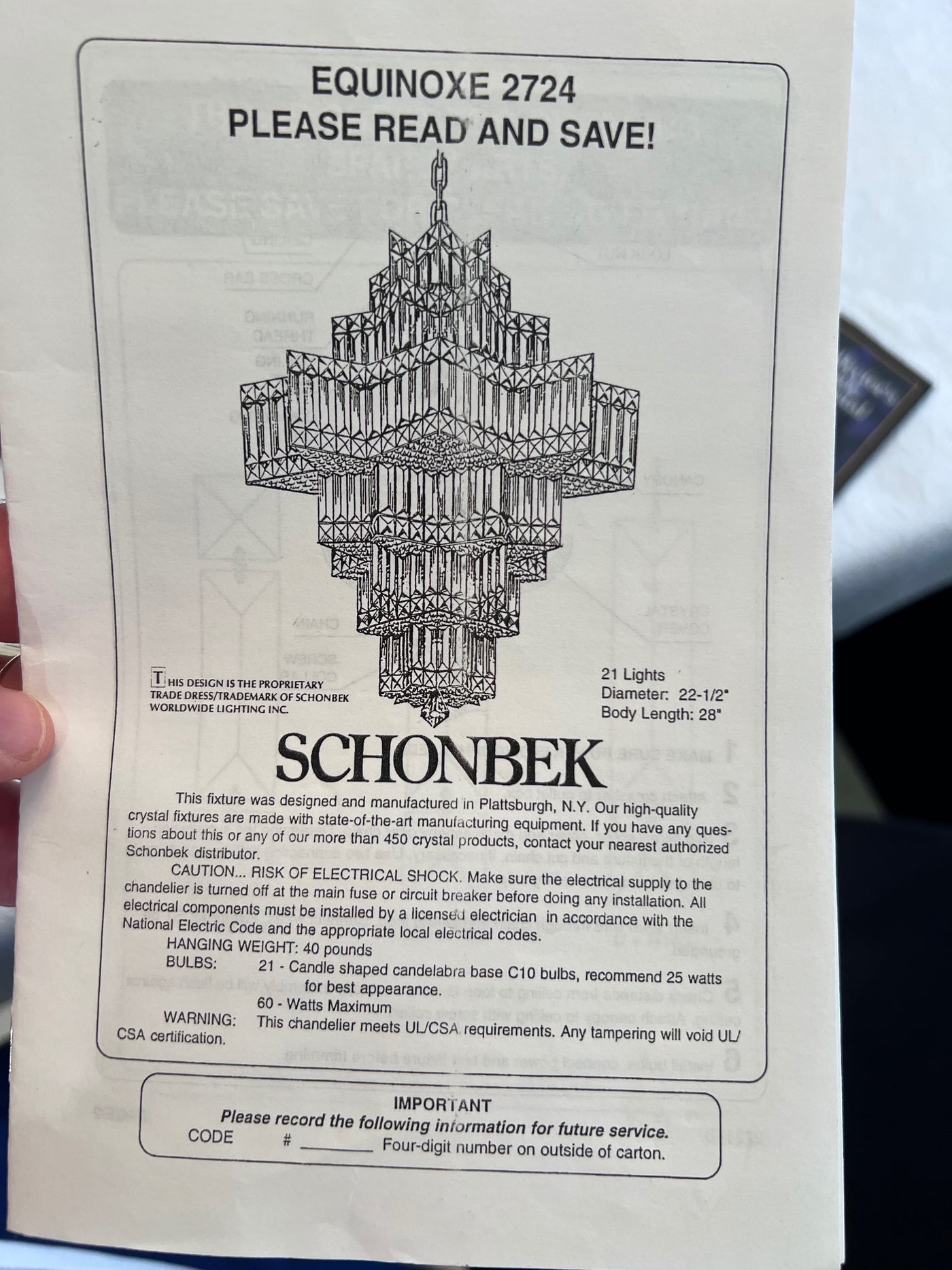 Schonbek Equinoxe 2724 Crystal Chandelier, 21 Lights (Retail Price $3,000).