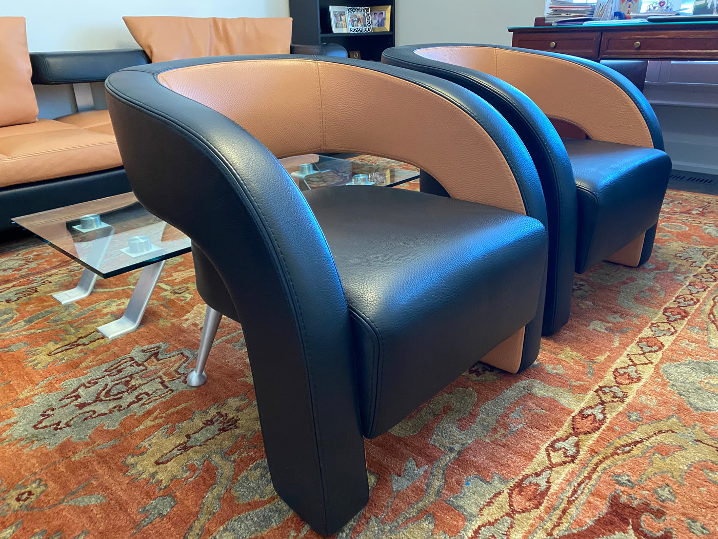 2 Formenti Italian Wave Leather Armchairs.
