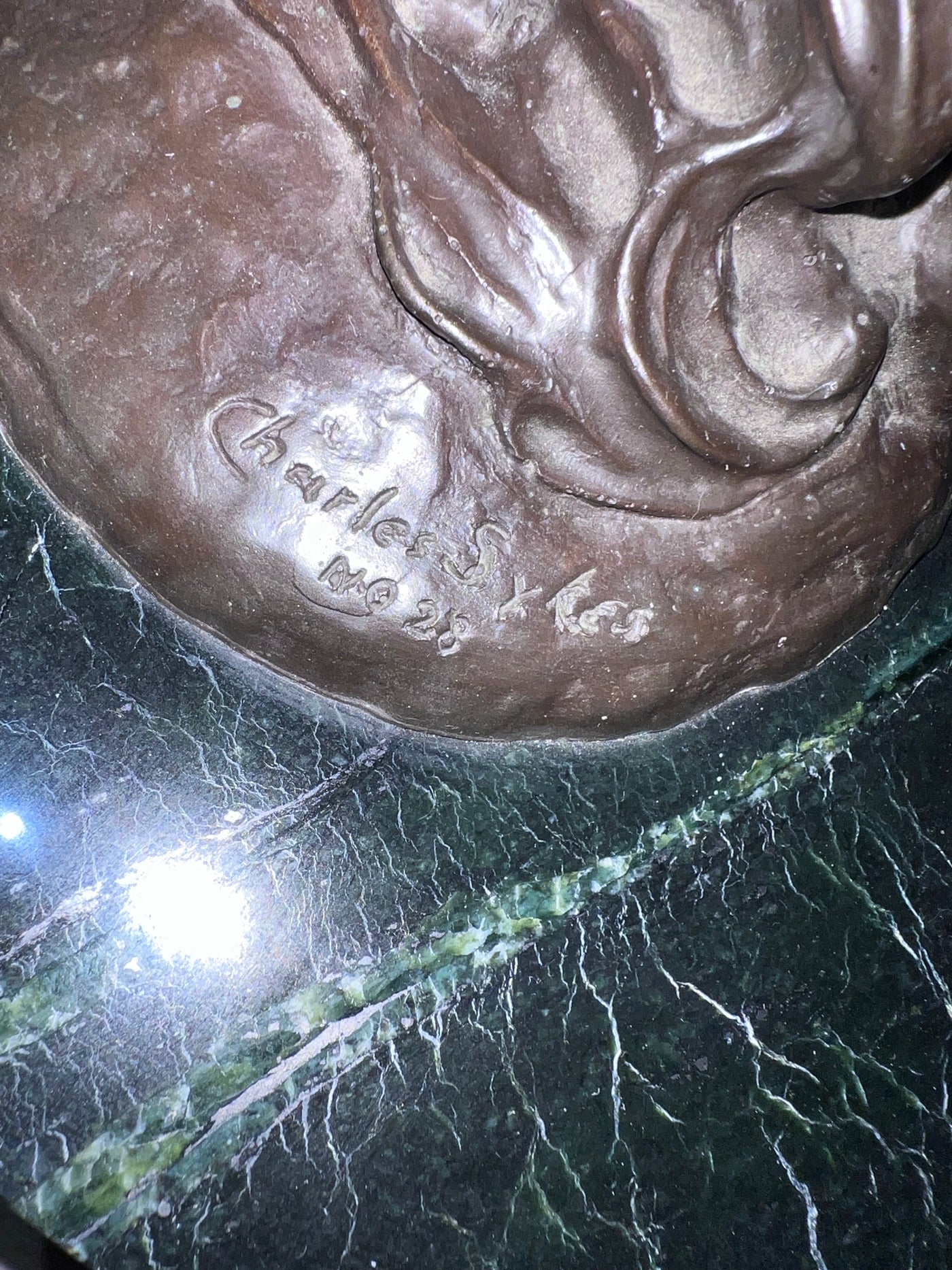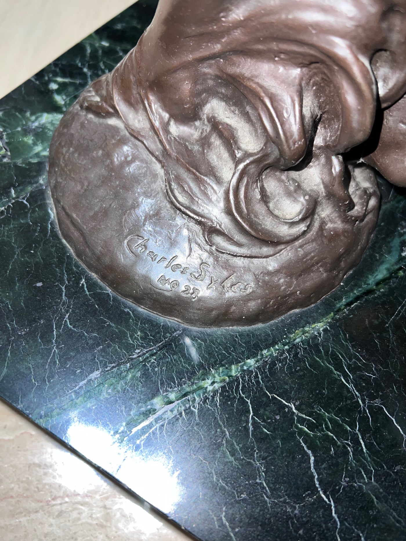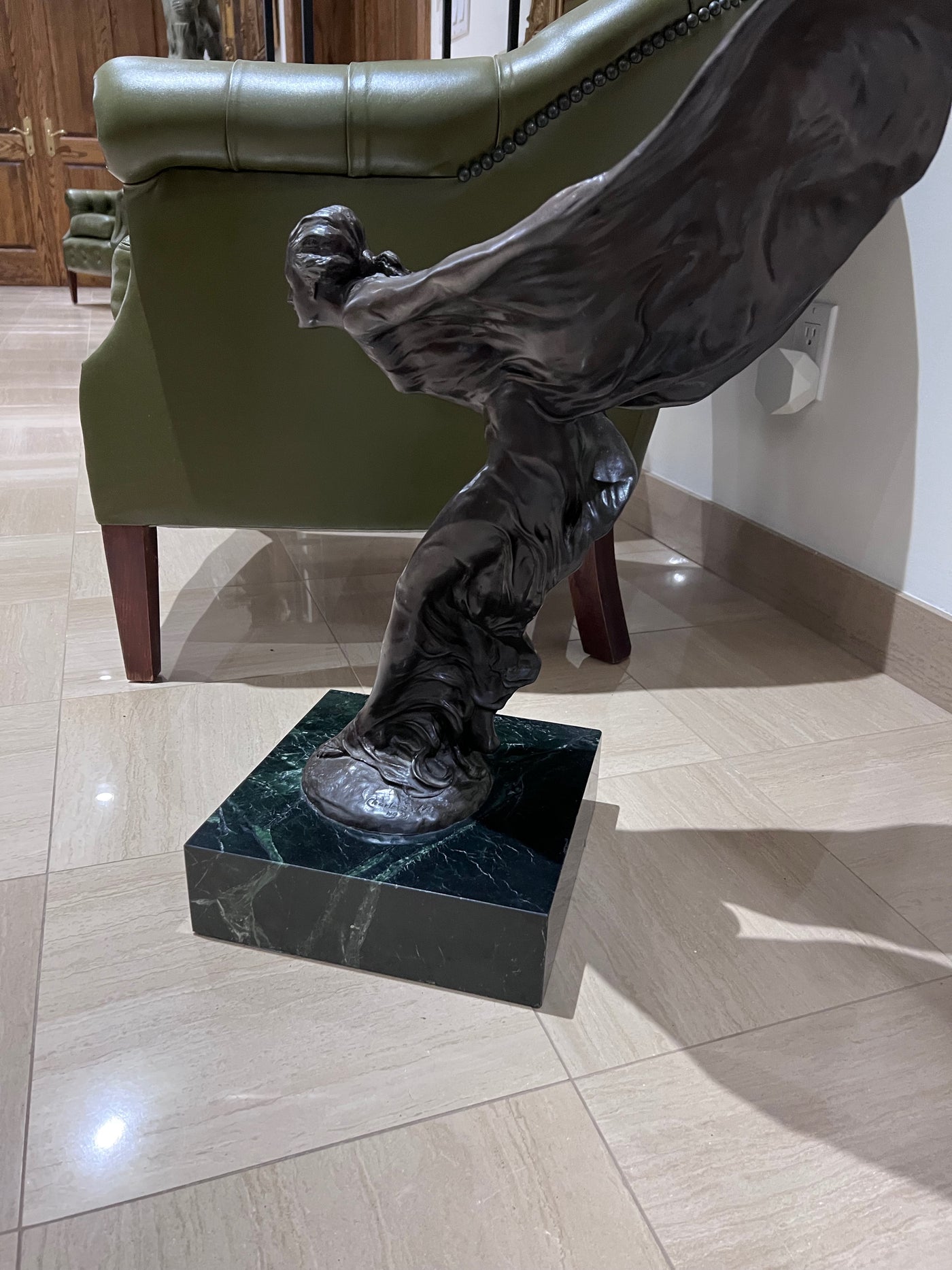 Mid-20th Century bronze of the legendary Rolls-Royce mascot which was designed by Charles Sykes R.A, the dark patinated bronze sculpture is set on a thick marble plinth. Signed by the artist Charles Sykes No.28, - later cast.