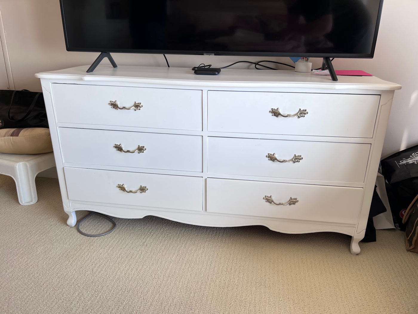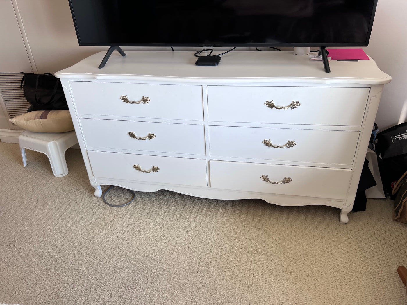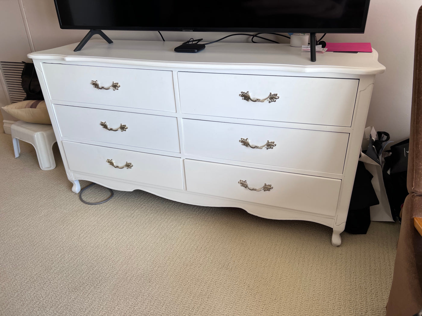 French Provincial White 6 Drawer Dresser