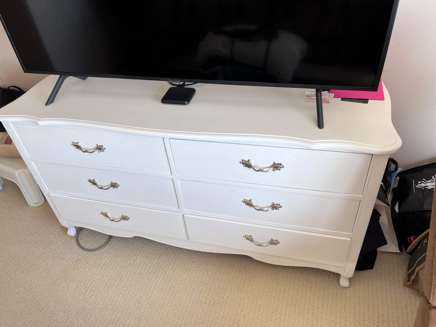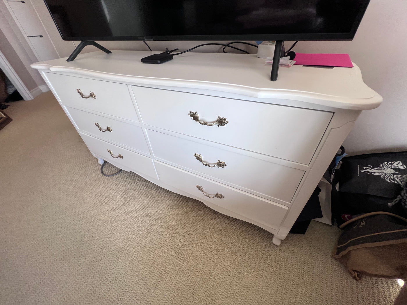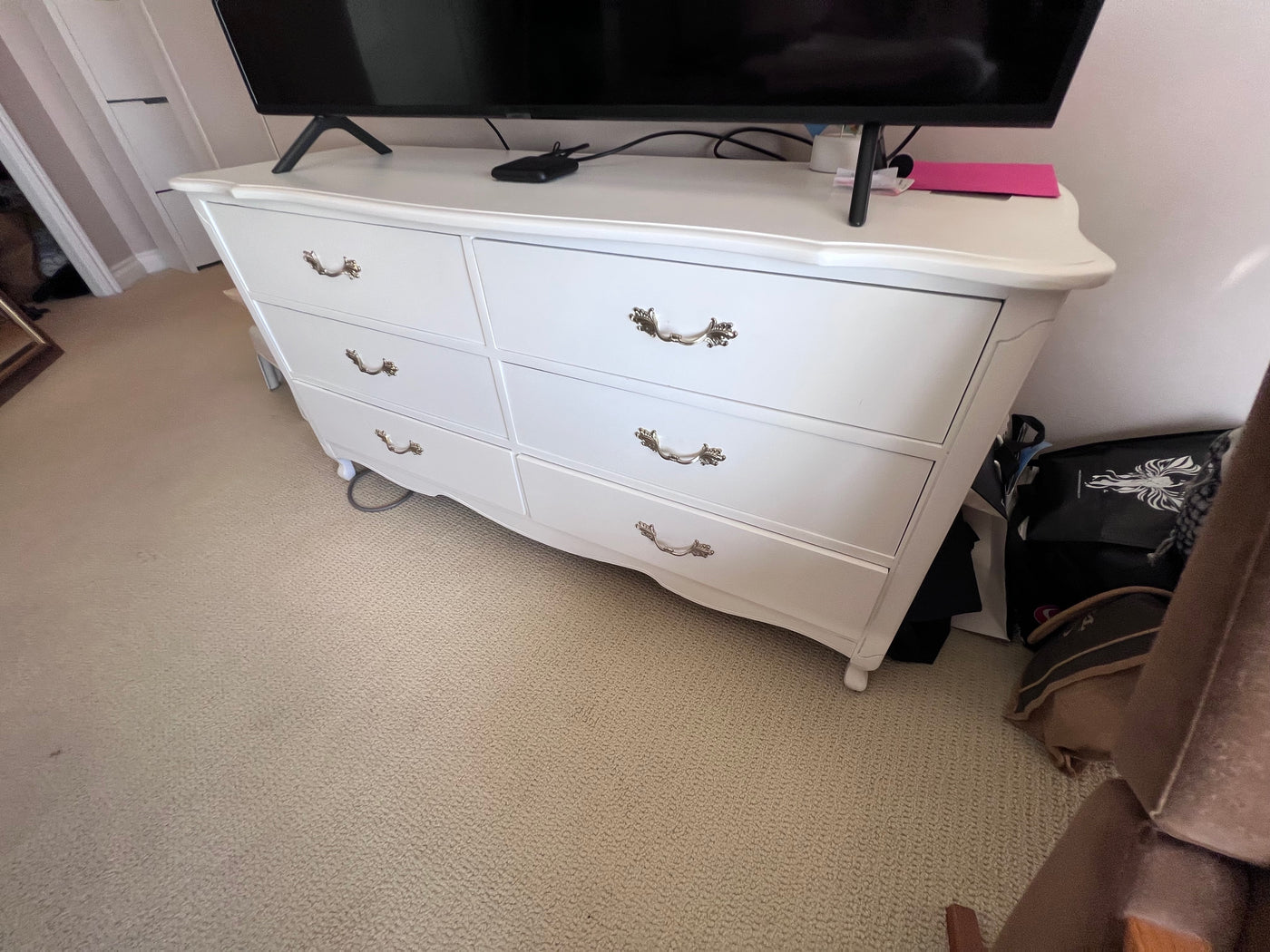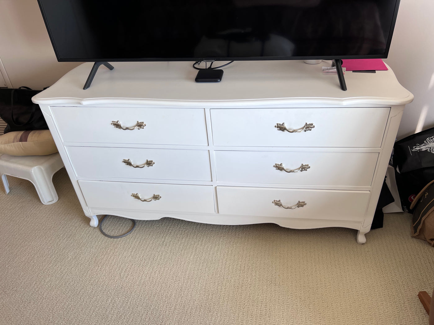 French Provincial White 6 Drawer Dresser
