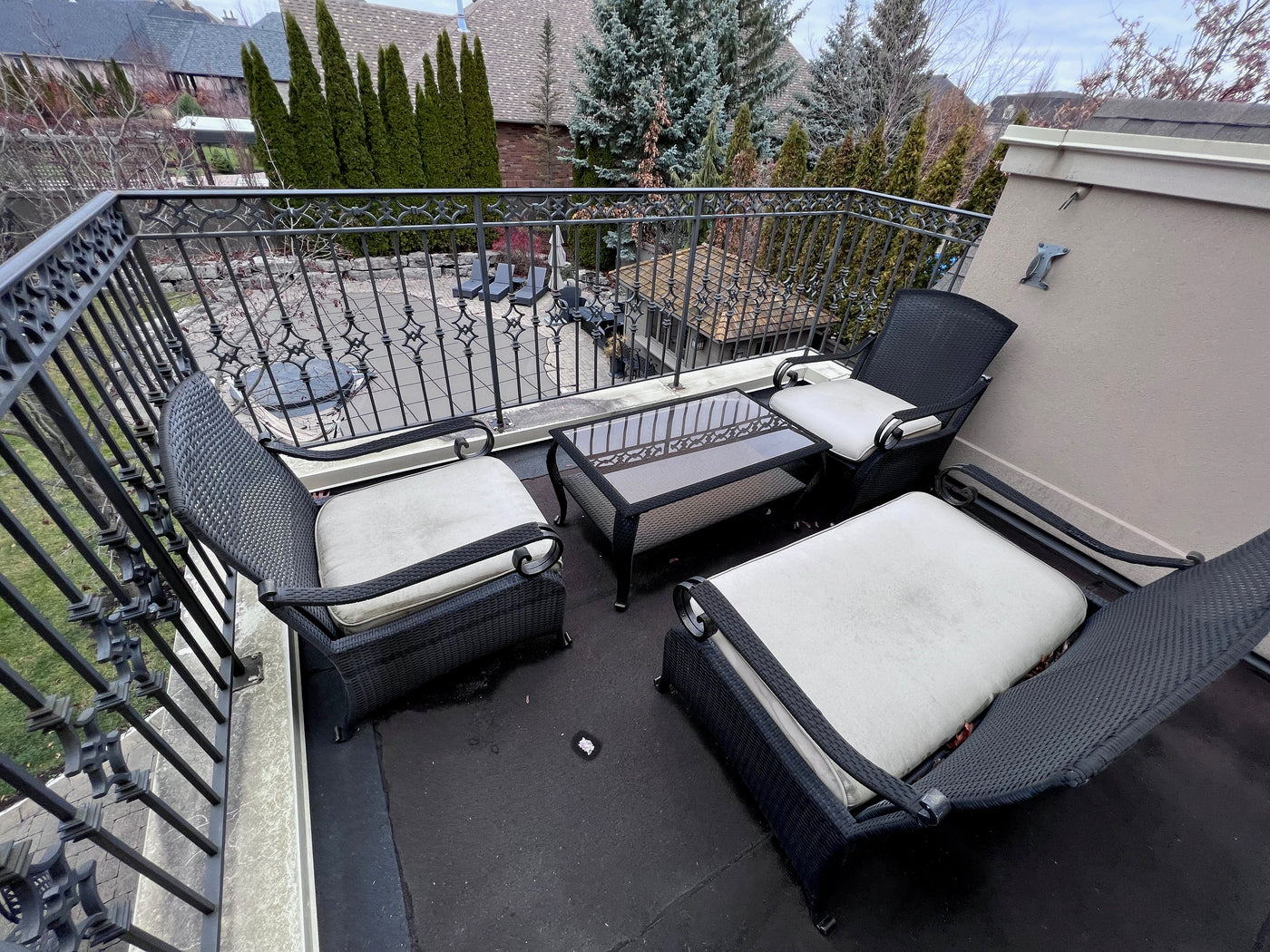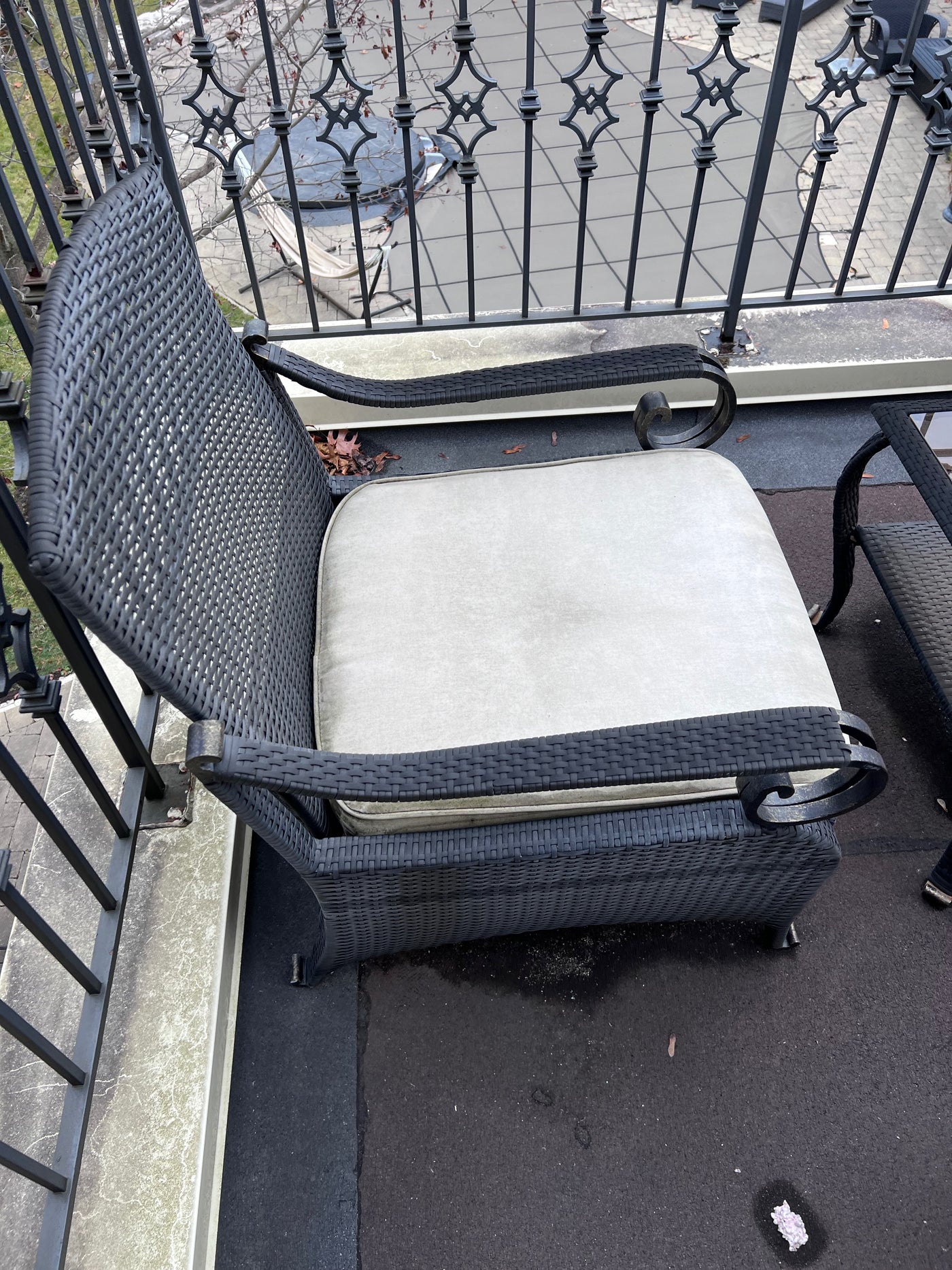 Condition: the cushions do have some marks and stains from the weather and there are some scratches on the frame.