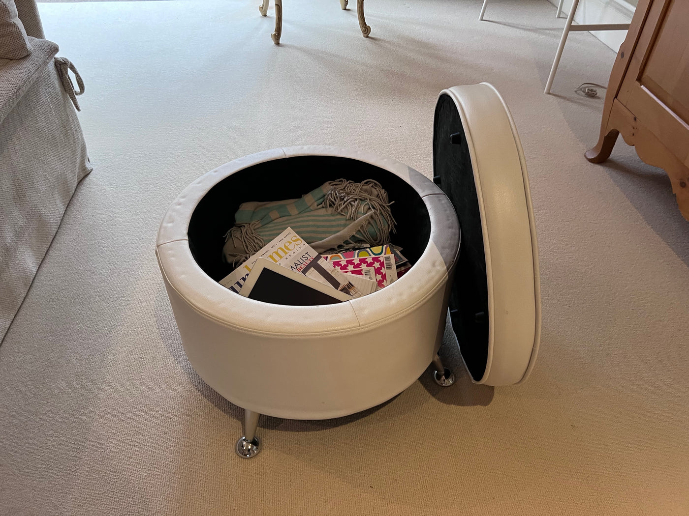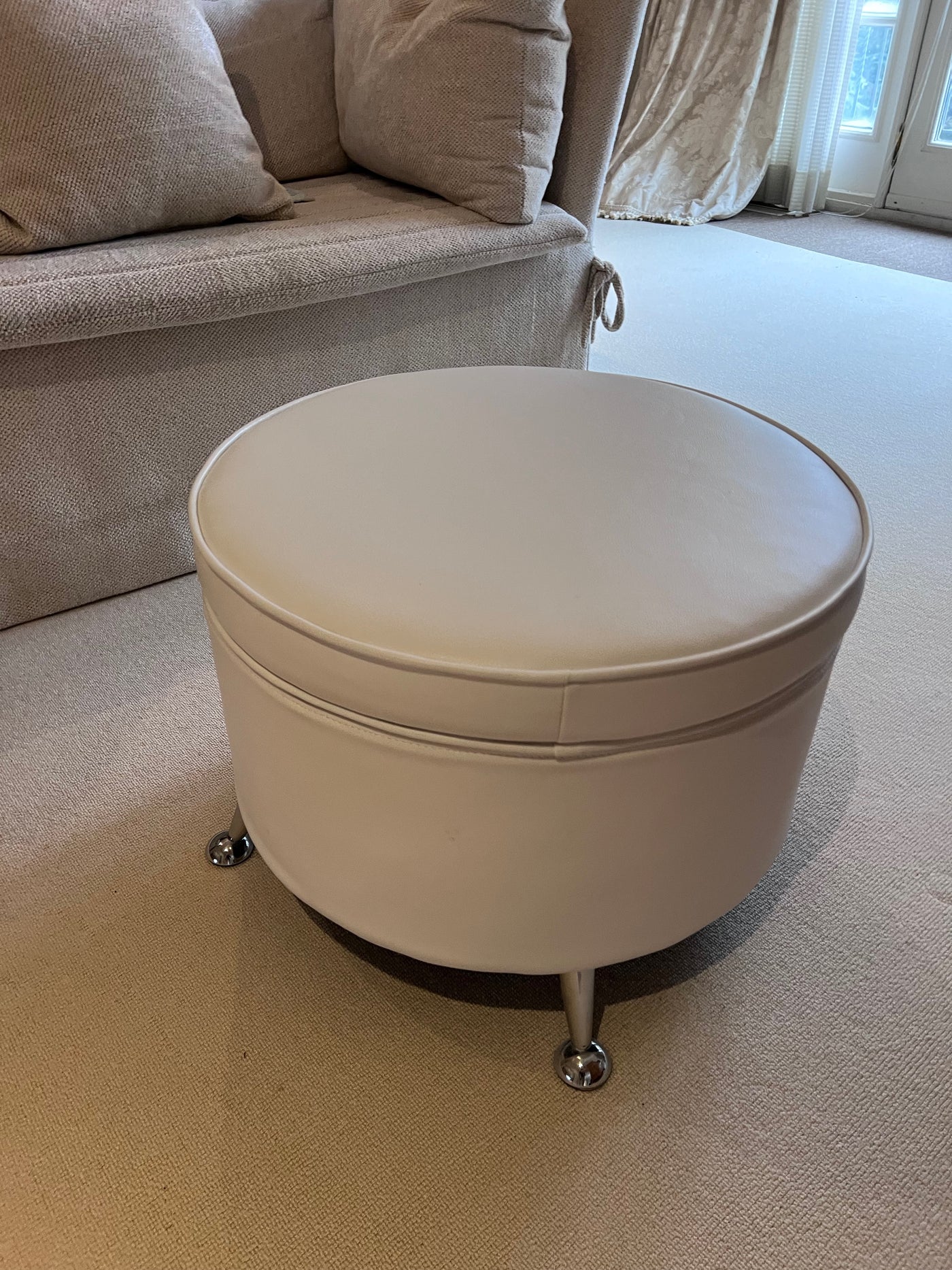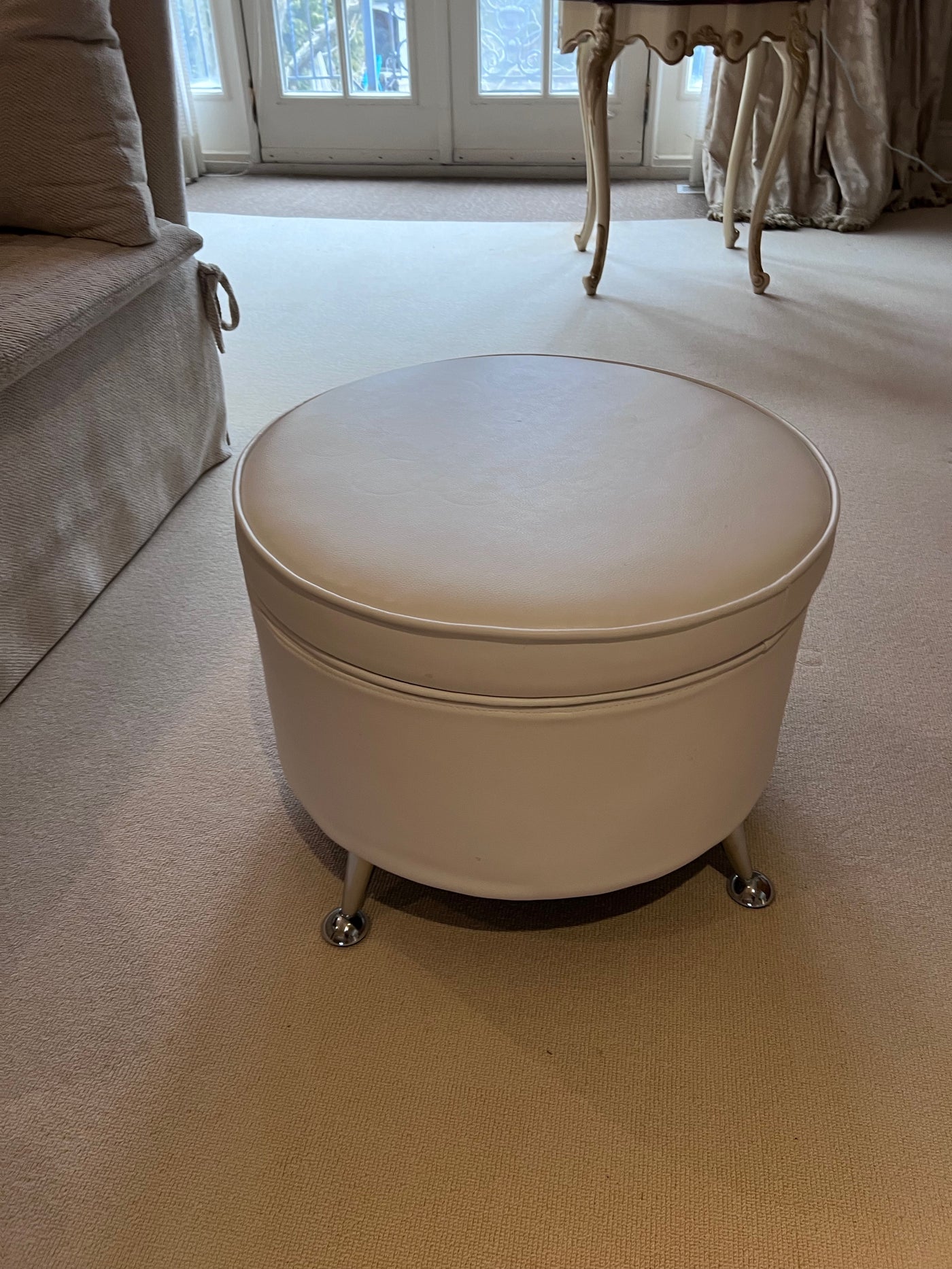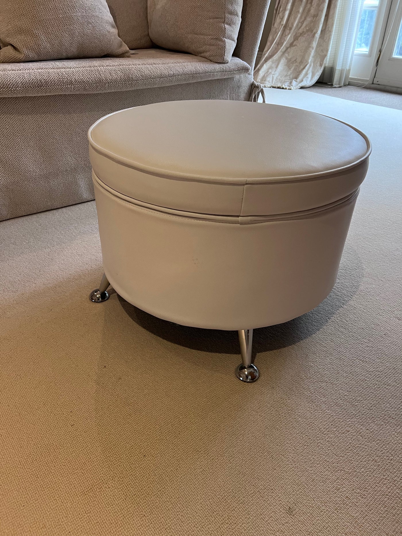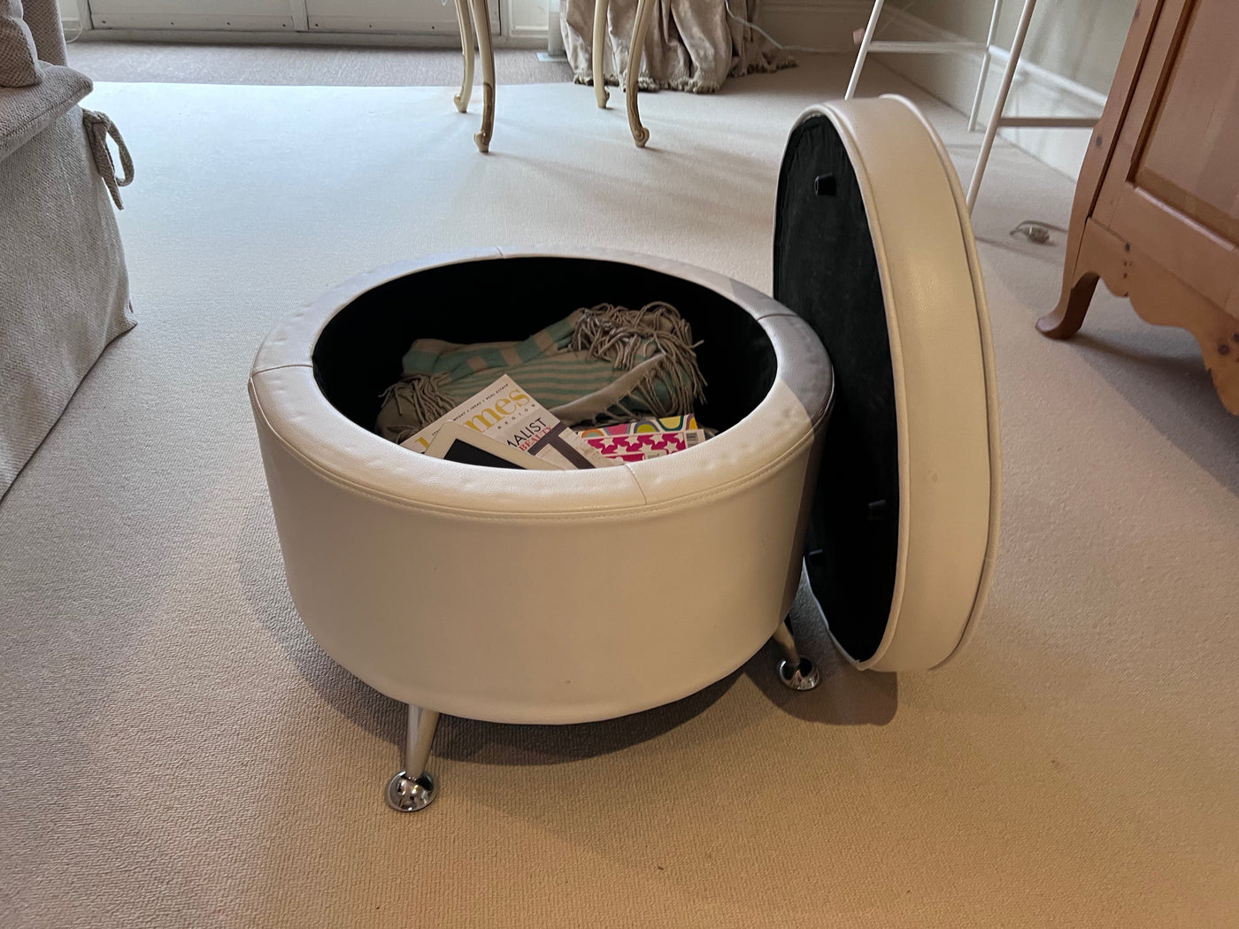 HomeSense Faux Leather Storage Ottoman, White (*retail price $99).