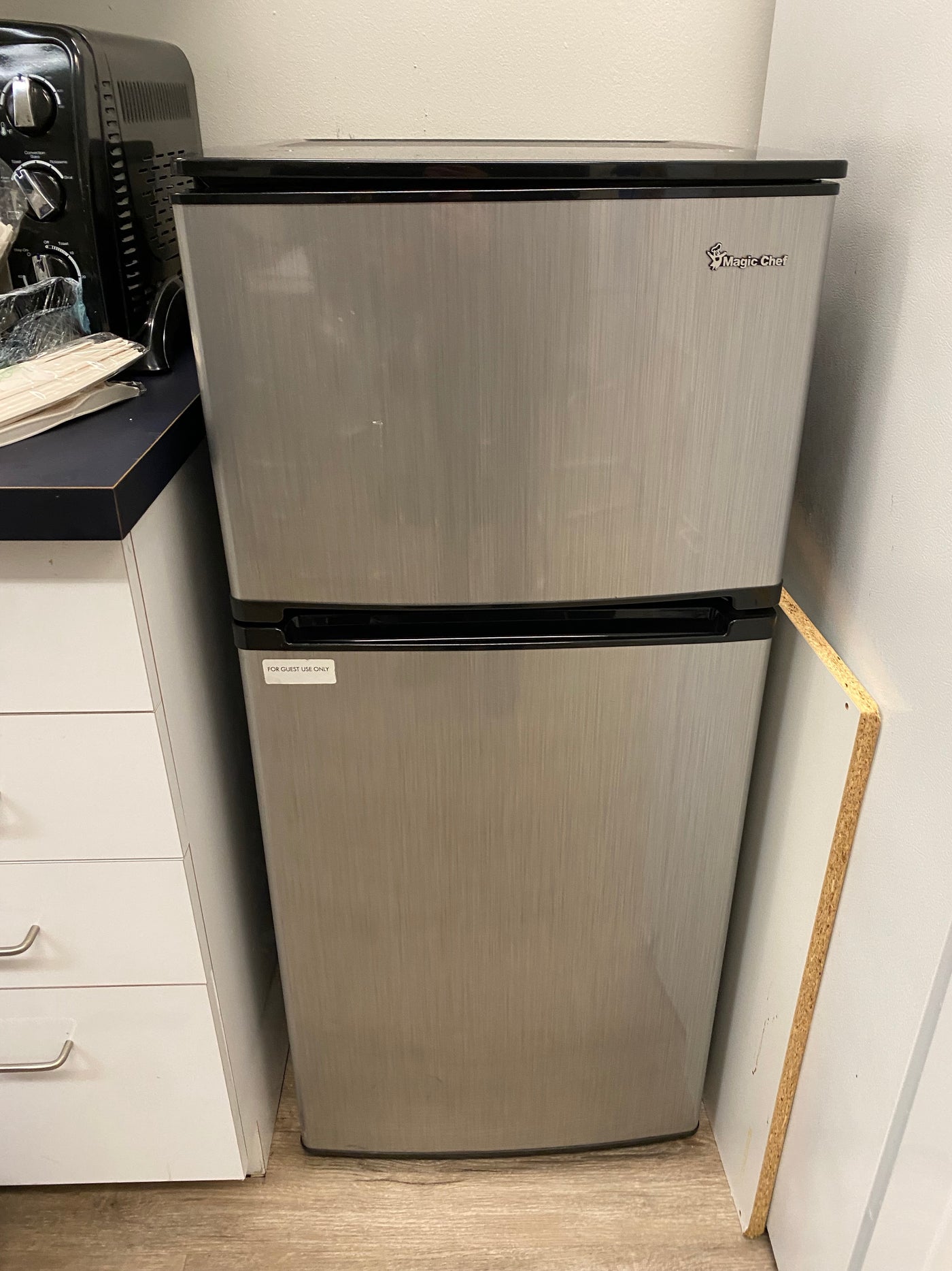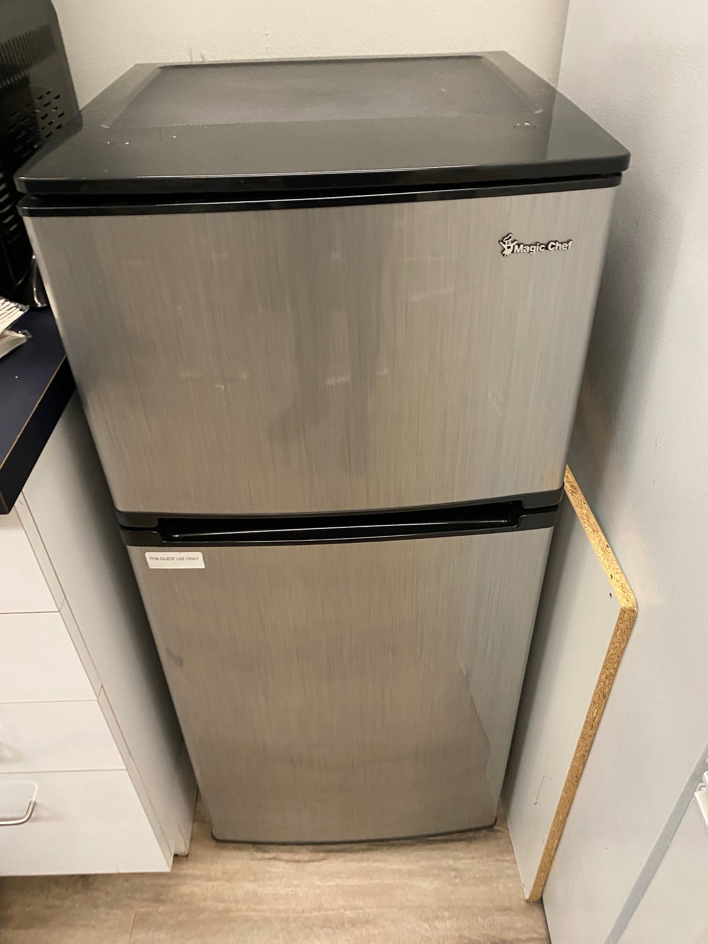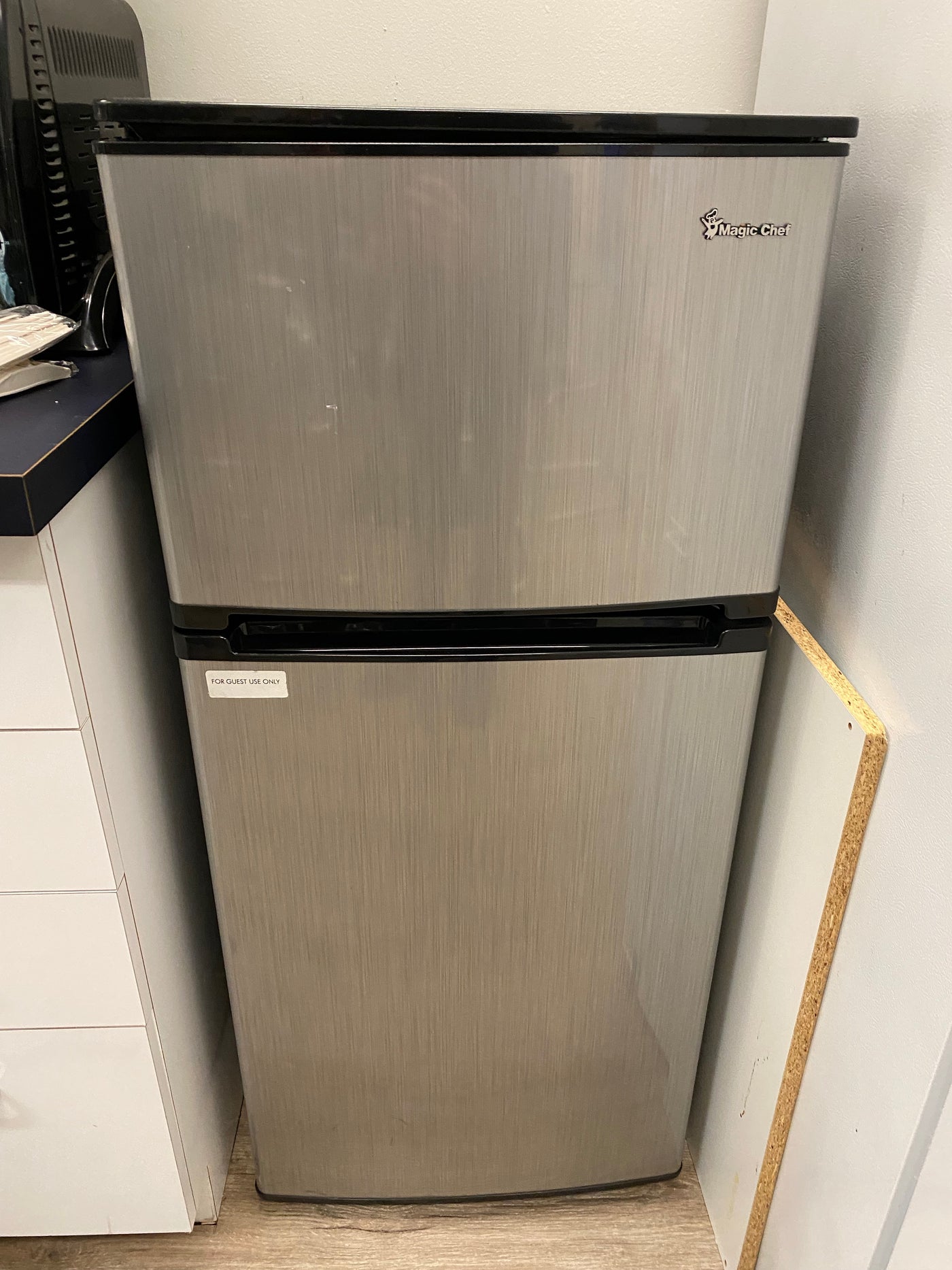 Magic Chef Stainless Steel Mini Fridge.