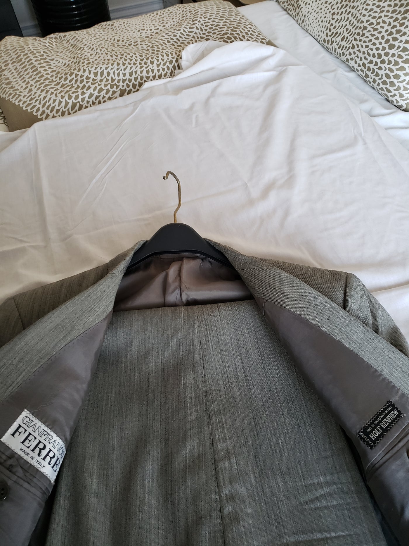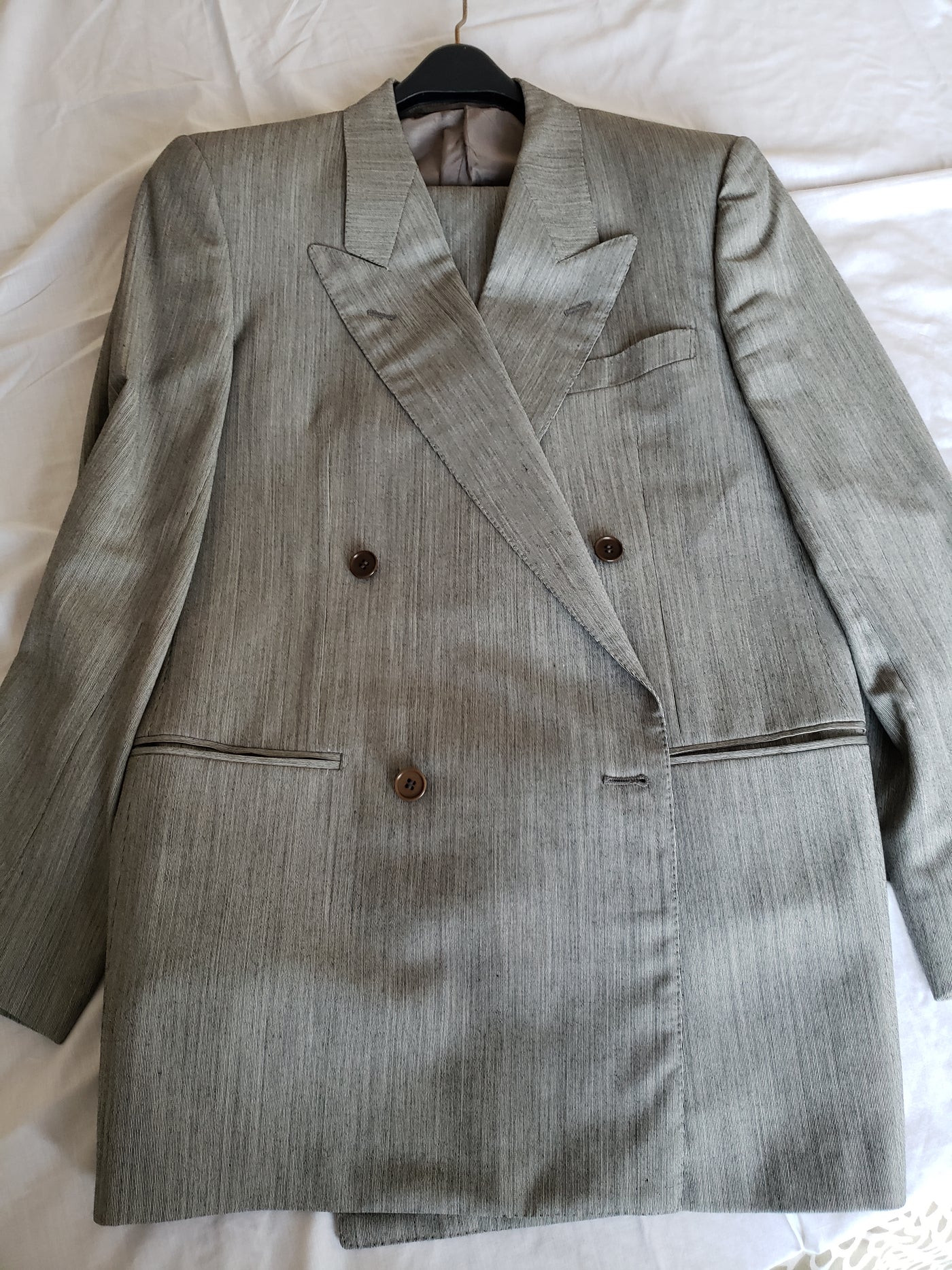Gianfranco Ferre - Grey Striped Double Breasted Suit. Elegant, Made in Italy.