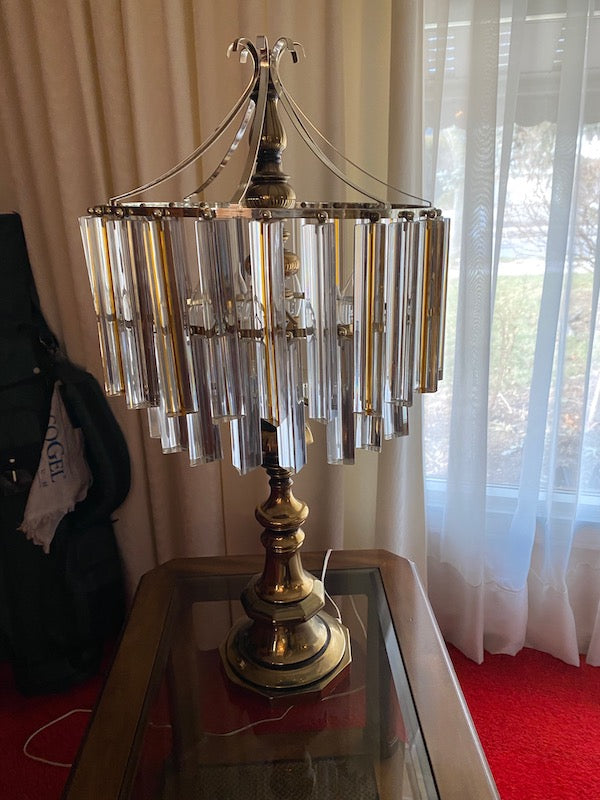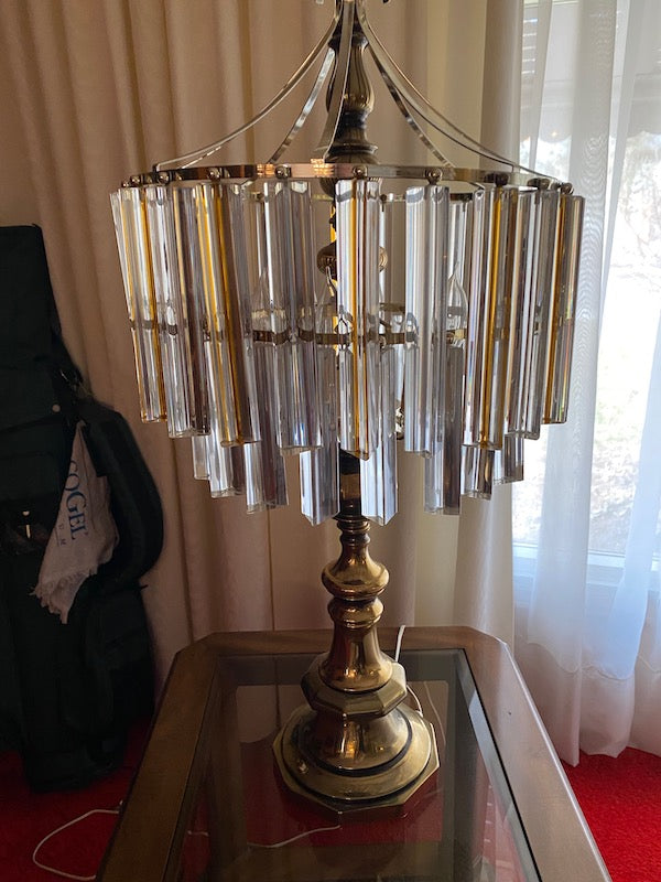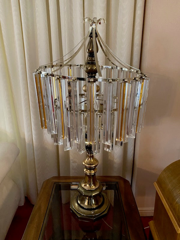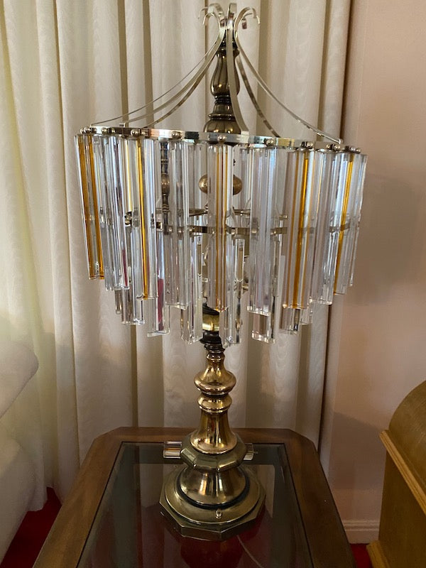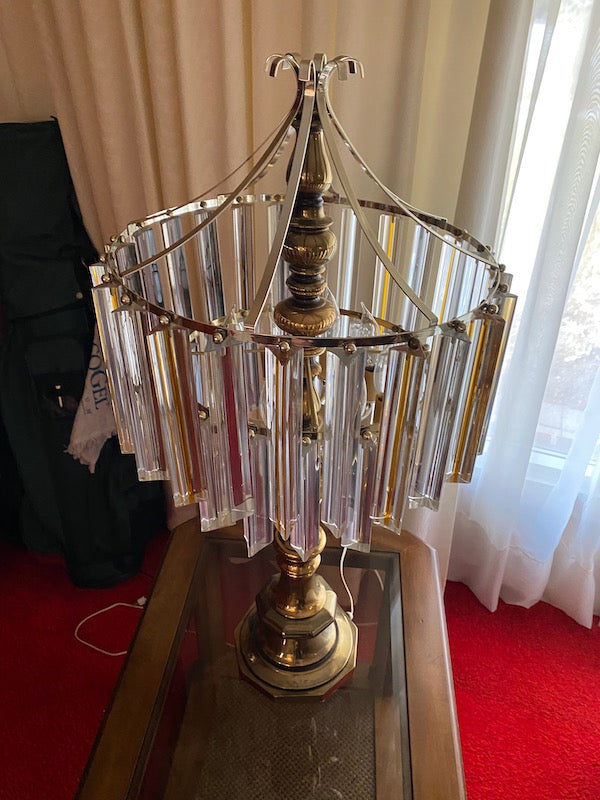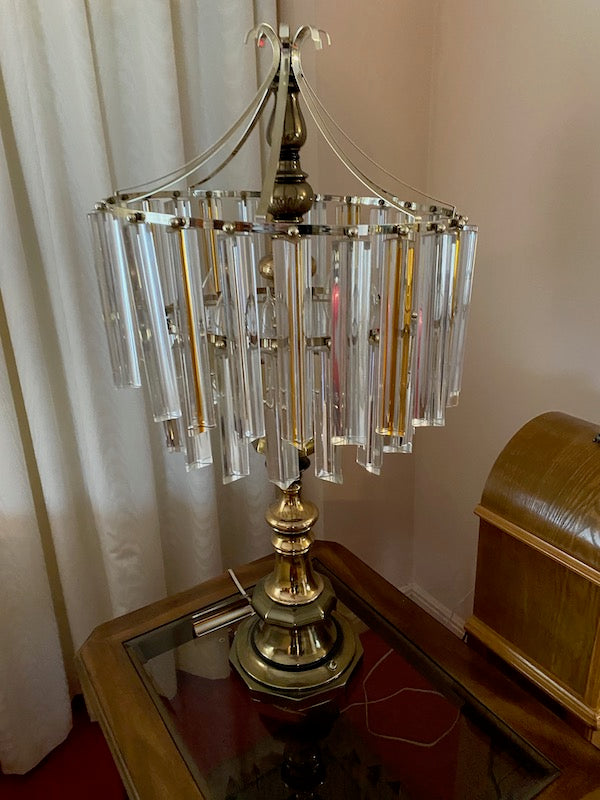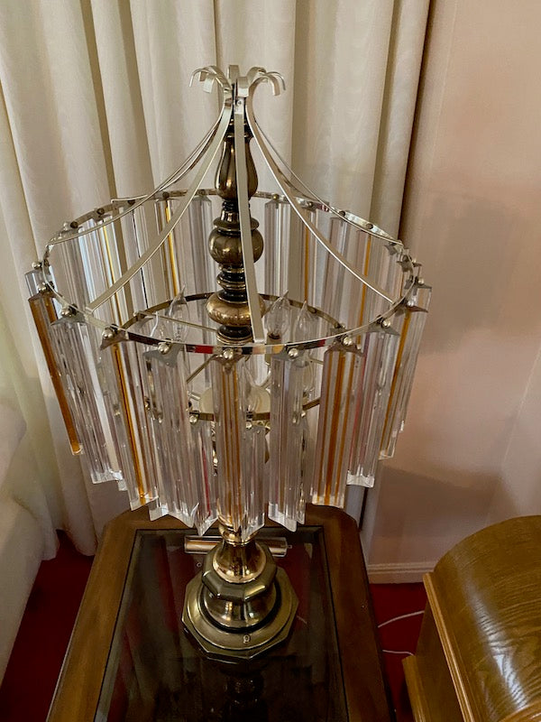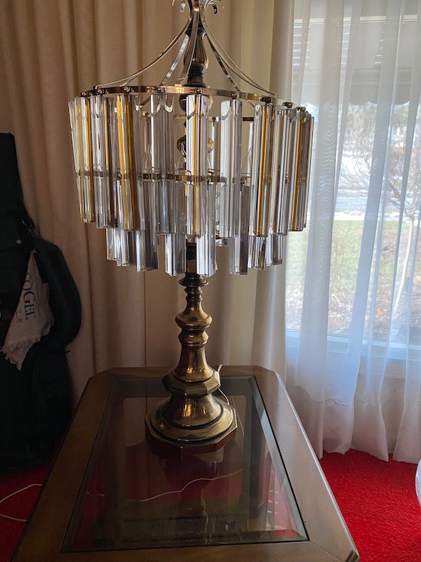 Pair of Vintage Brass Table Lamps with Crystal Hanging Pendants
