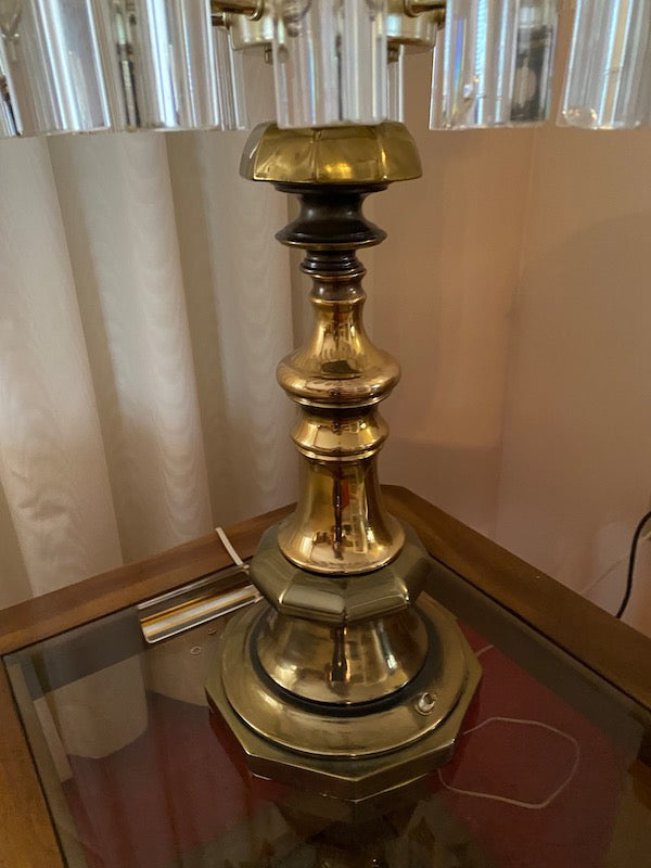 Pair of Vintage Brass Table Lamps with Crystal Hanging Pendants. These are solid heavy-duty table lamps and are quality that will last a lifetime! In amazing condition overall.