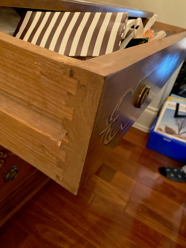 3 drawers, beautiful painted front with brass pulls. High quality construction, with with dove tailed drawers.