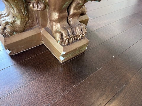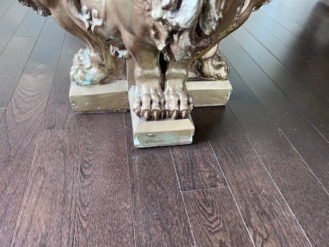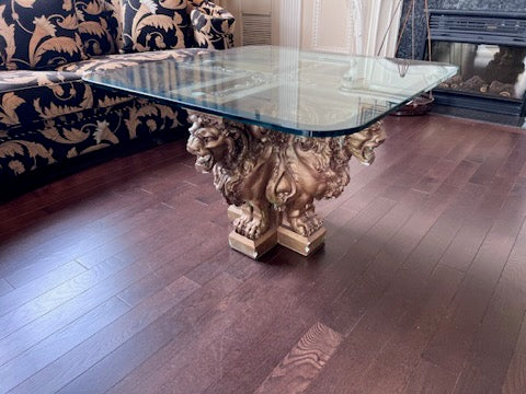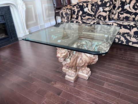 Glass Top Coffee Table with Gold Ceramic 'Lion Head' Base.