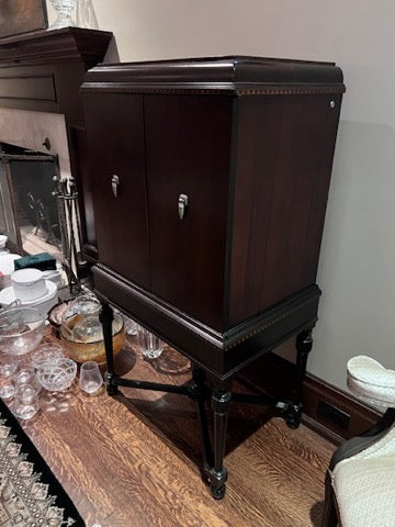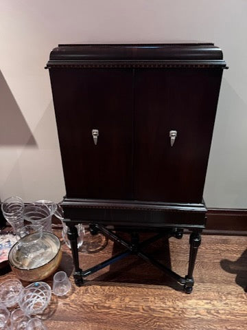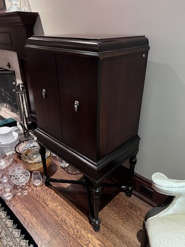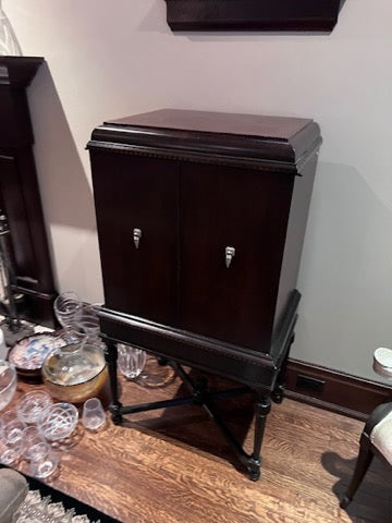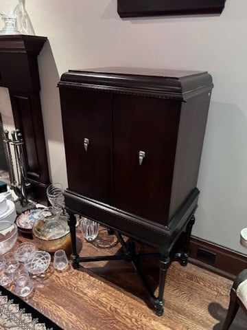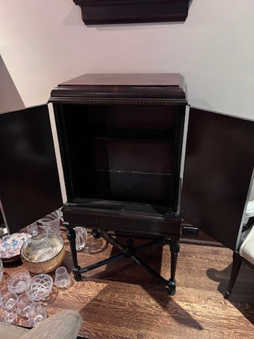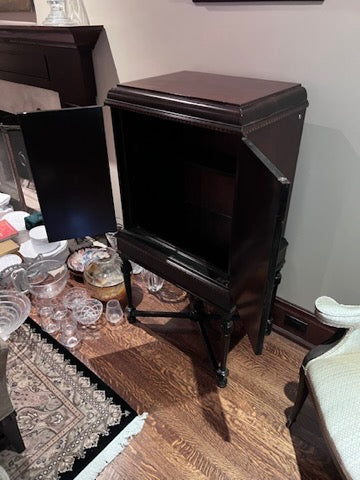 Antique Bar Cabinet. In good condition. Unit is 1 piece. Opens to offer shelving/storage inside.