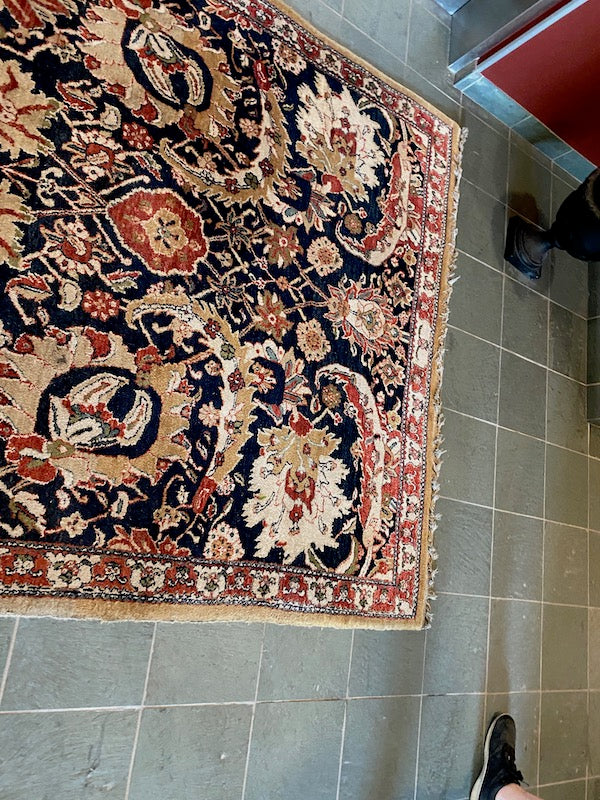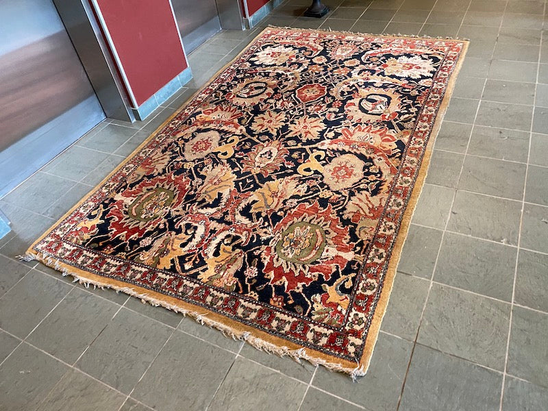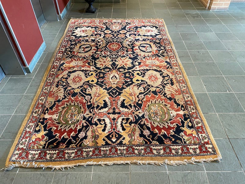 “Mahindra” Hand knotted using 100% vegetable dyed, hand spun, wooden yarn- “Black Mountain Looms” Indian Rug.