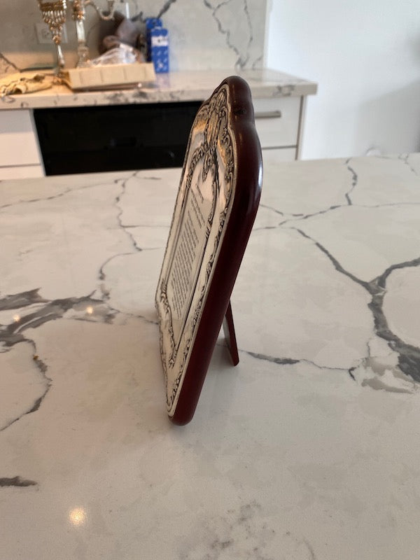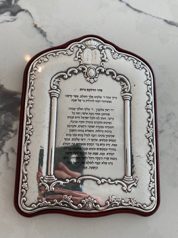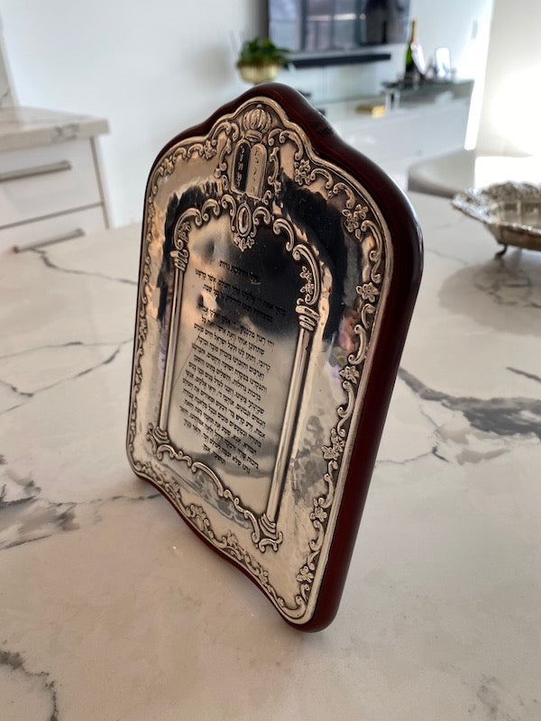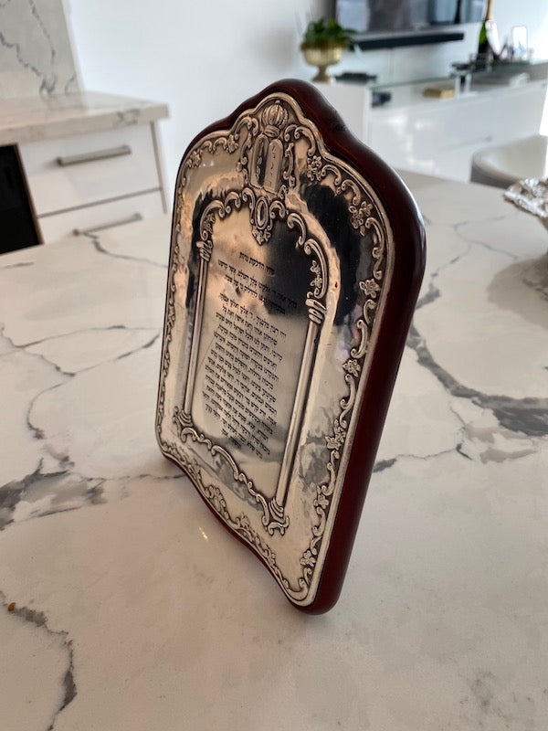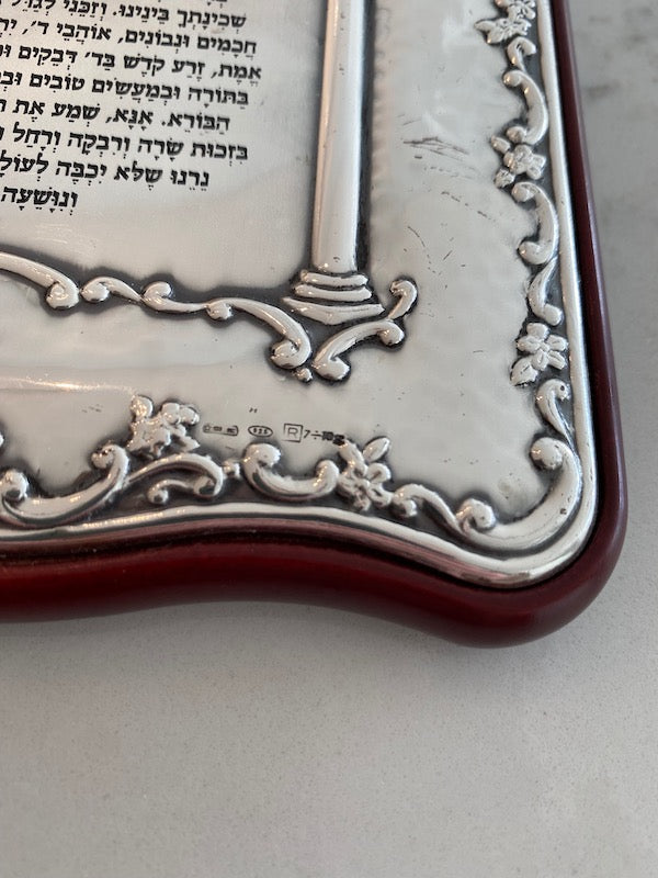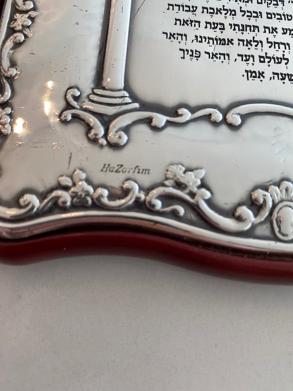Hazorfim Sterling Silver Torah Scroll Plaque on Wood Stand.