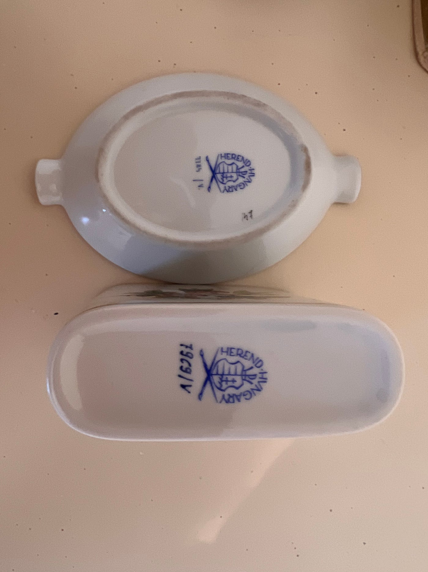 Herend Queen Victoria- Cigarette Holder, Ashtray, Matchstick Holder.