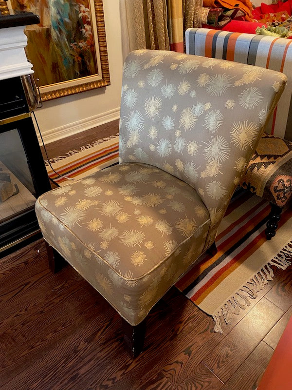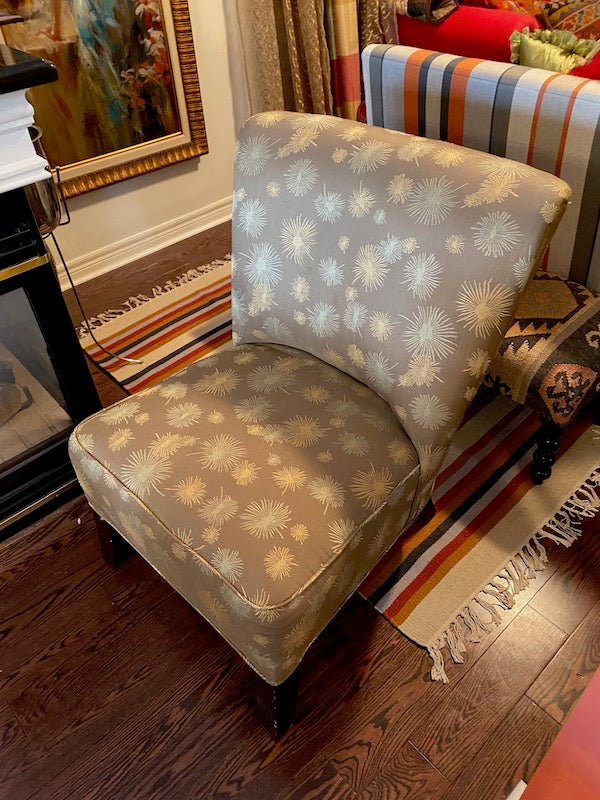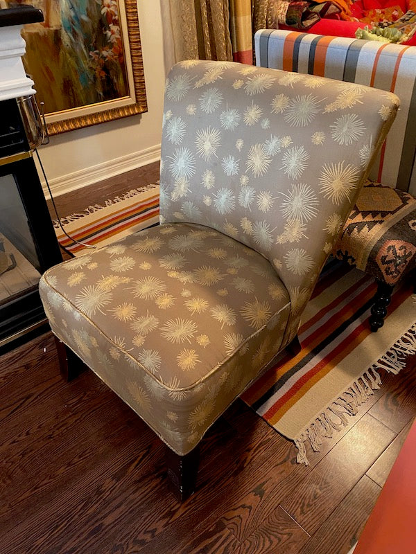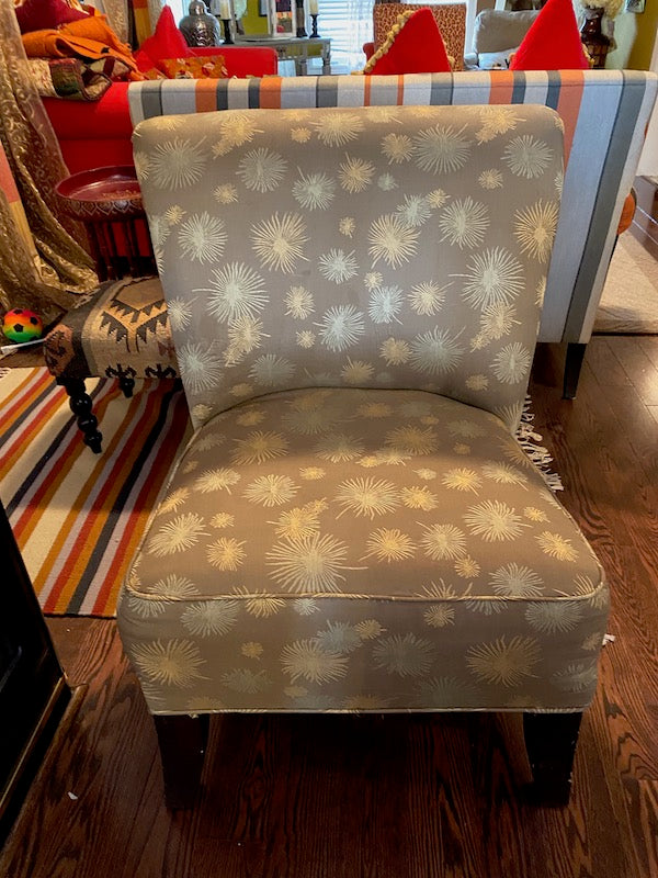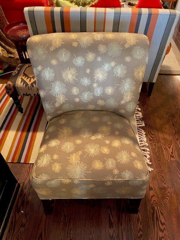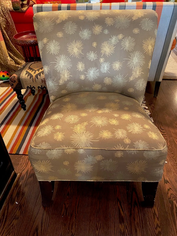 Grey Upholstered Armless Side Chair.