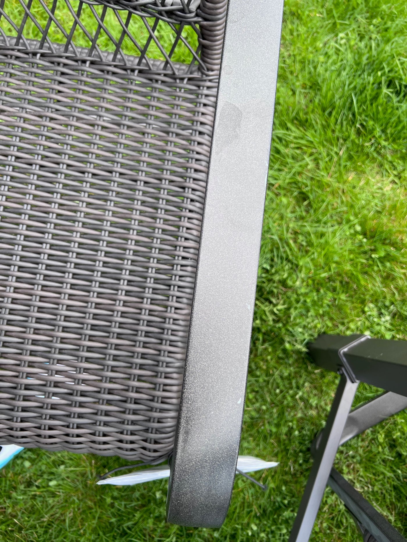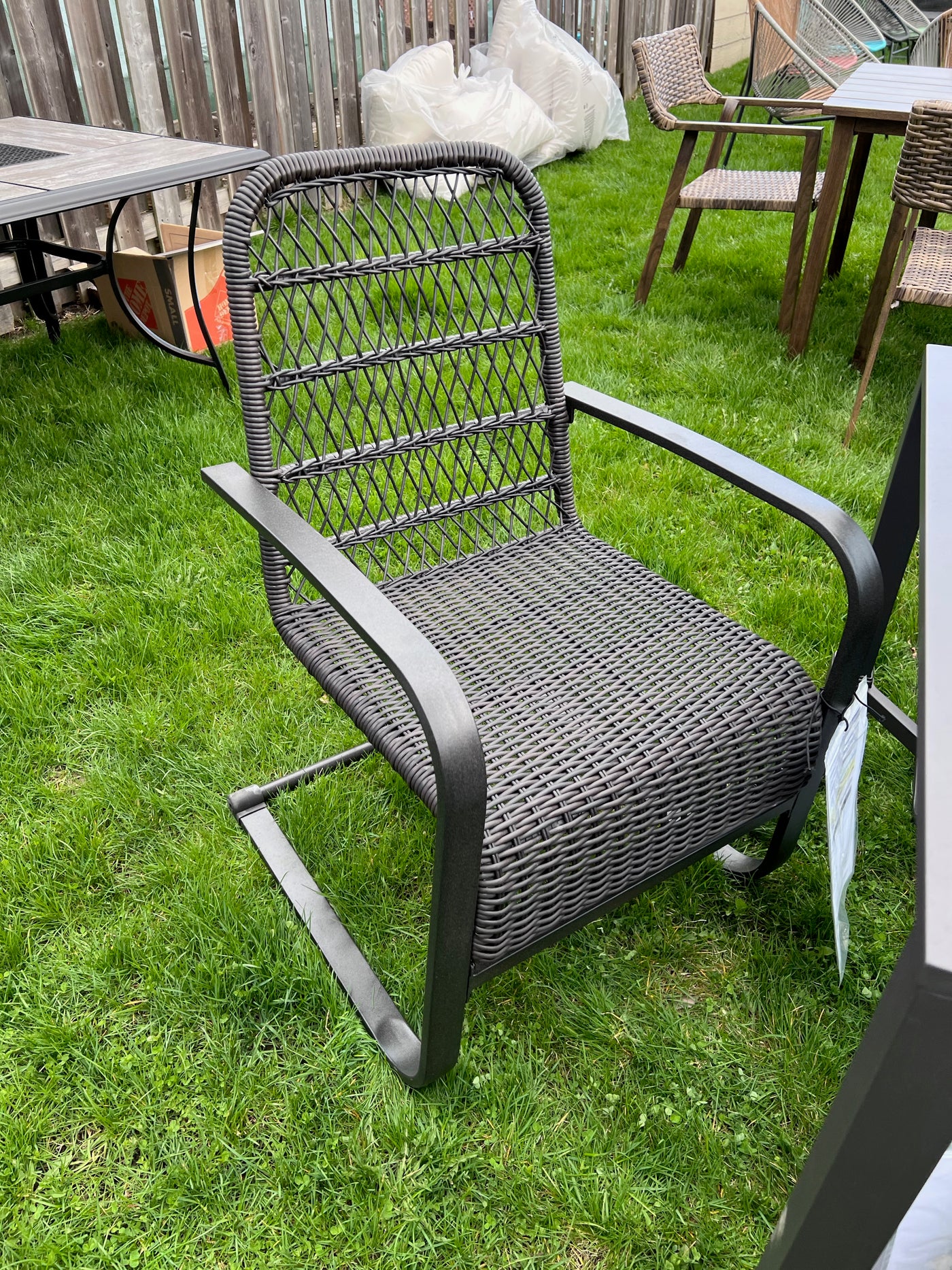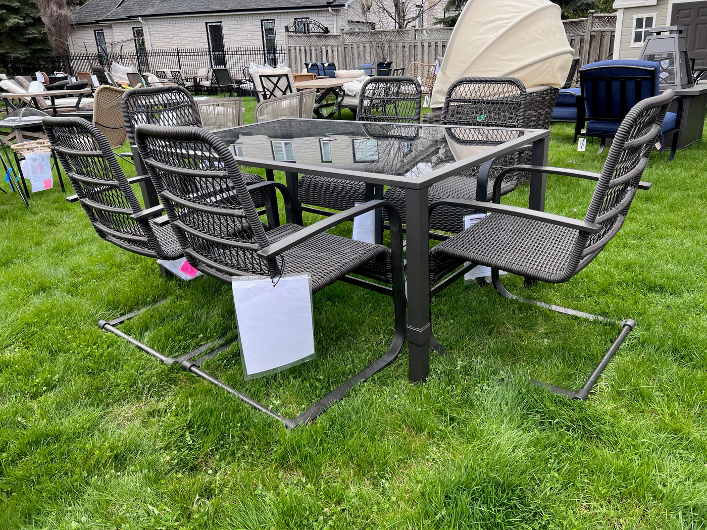 Dark Brown Patio Dining Table + 6 Rocker Chairs.