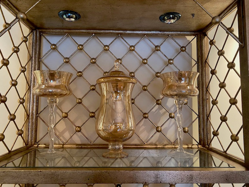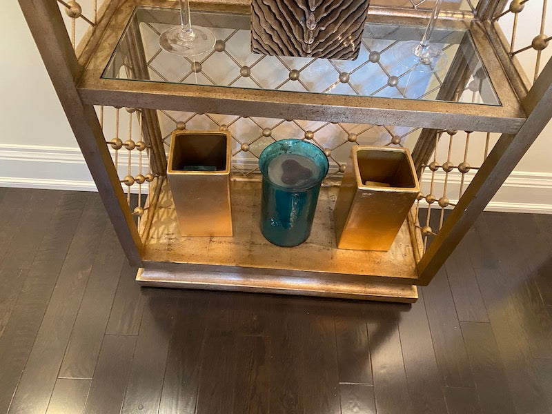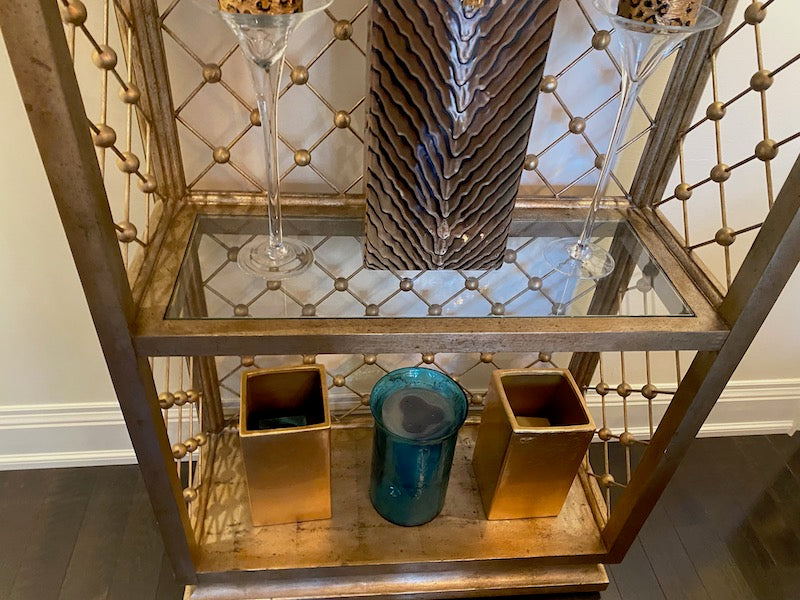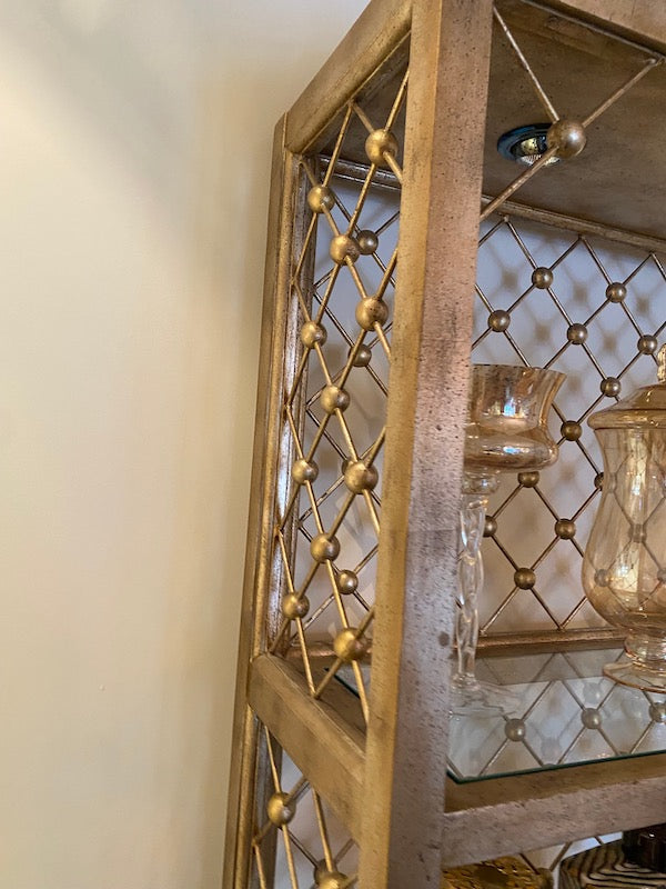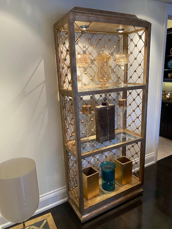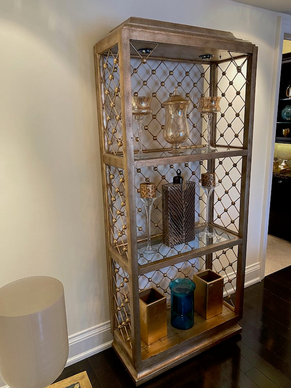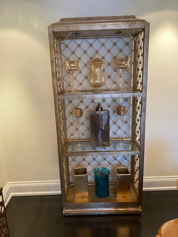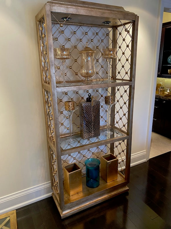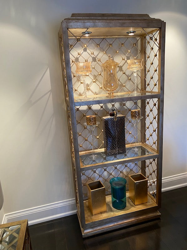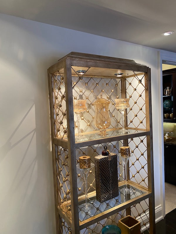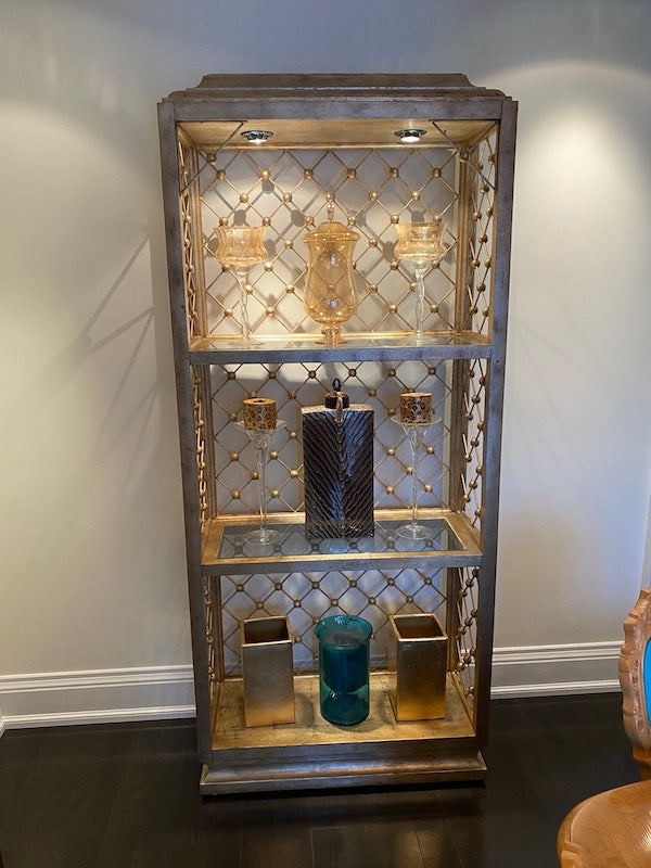 Modern Illuminated Brushed Gold and Silver Etagere.