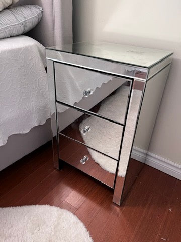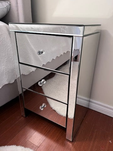 3 Drawer Mirrored Side Table.