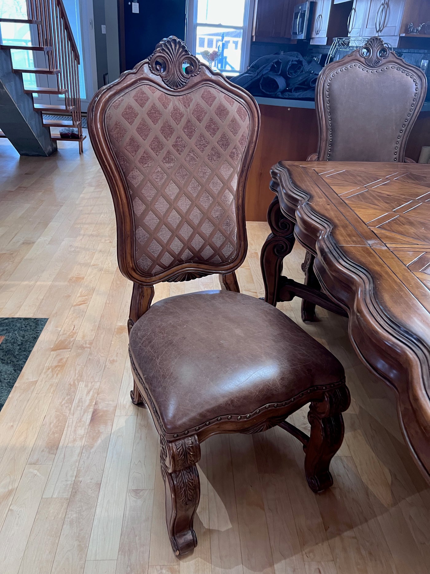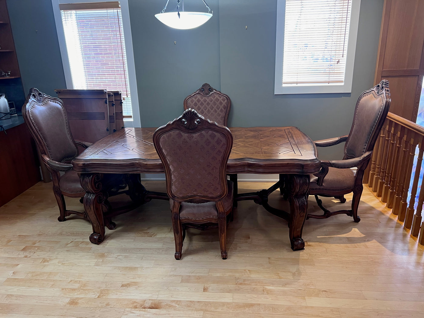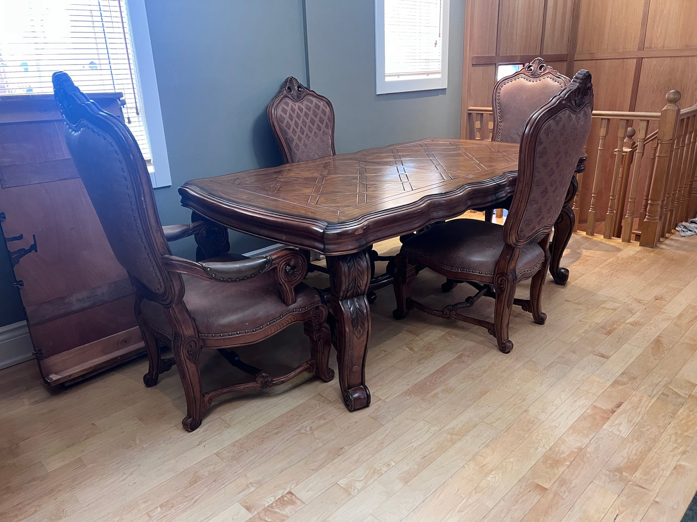 Michael Amini Signature Series by AICO 'Eden' Dining Table + 4 Chairs (+ 3 additional leaves).