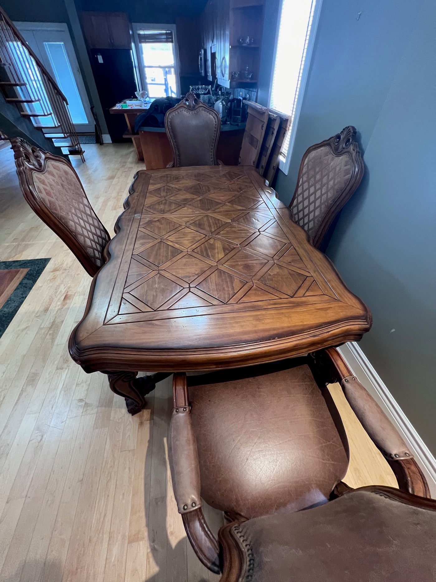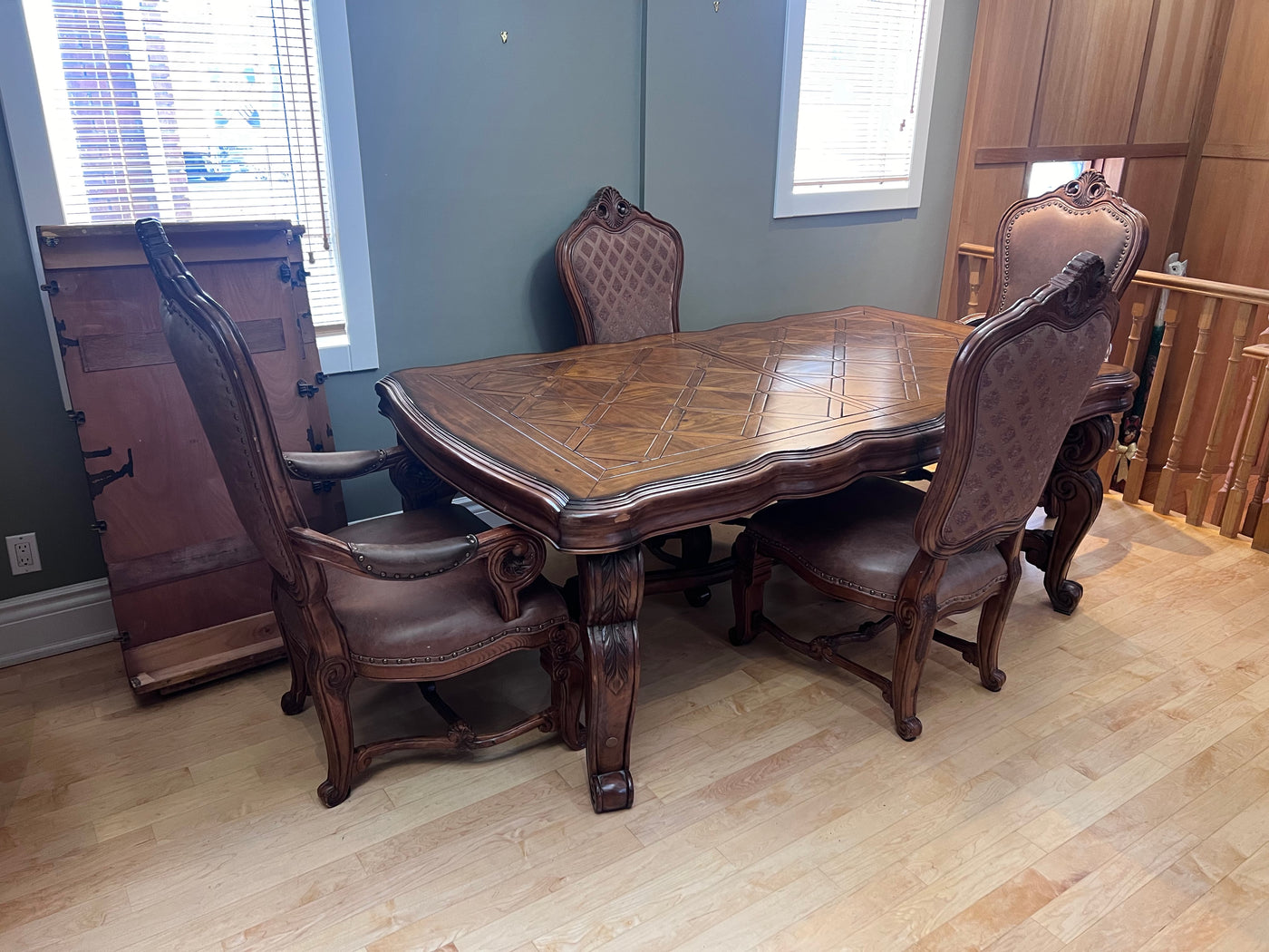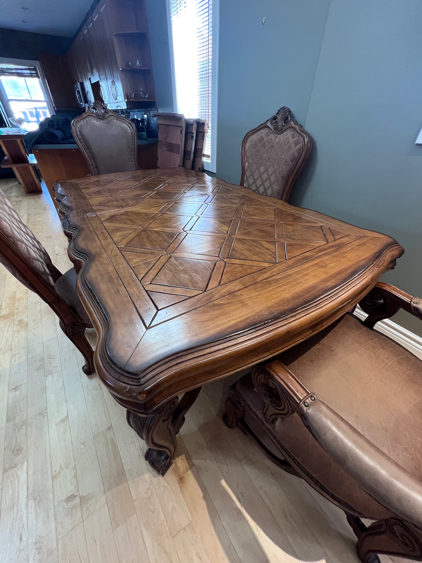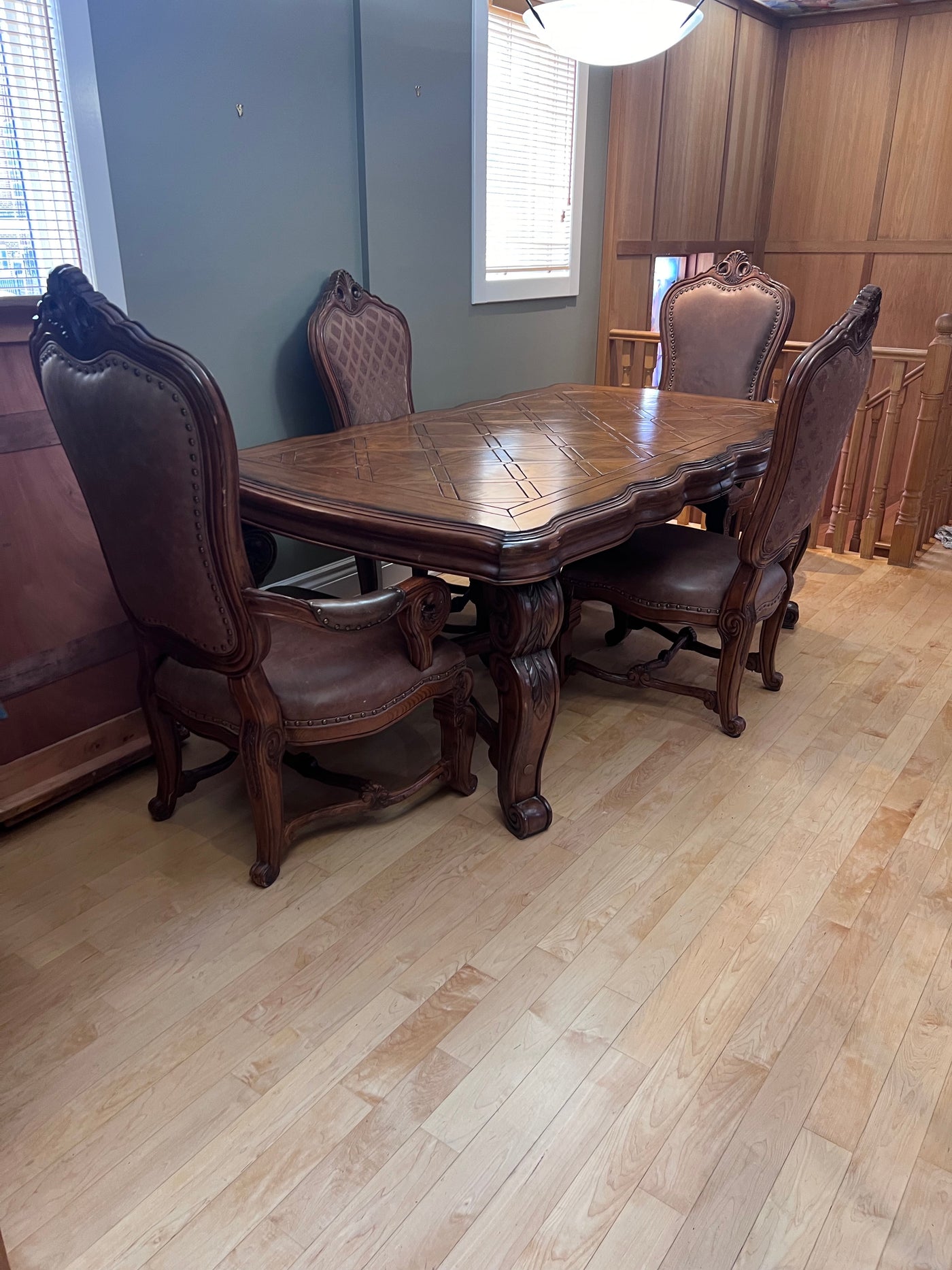 Michael Amini Signature Series by AICO 'Eden' Dining Table + 4 Chairs (+ 3 additional leaves).
