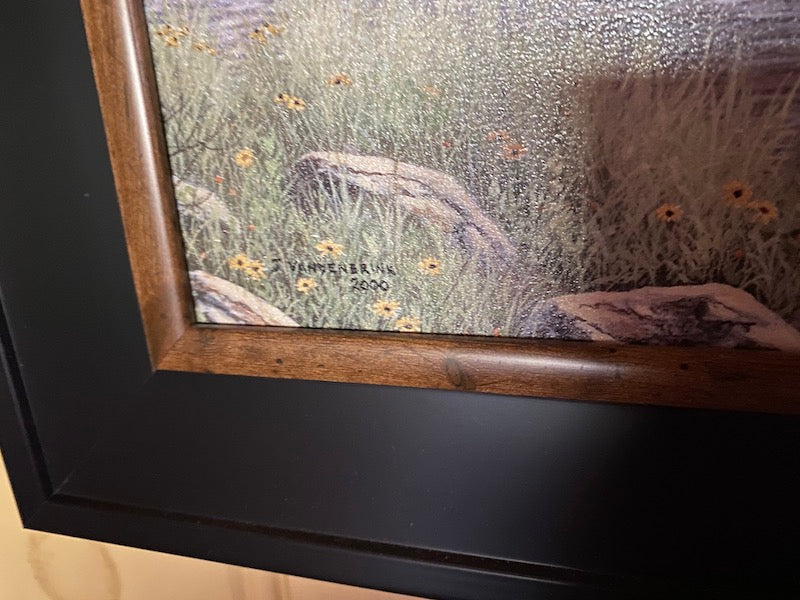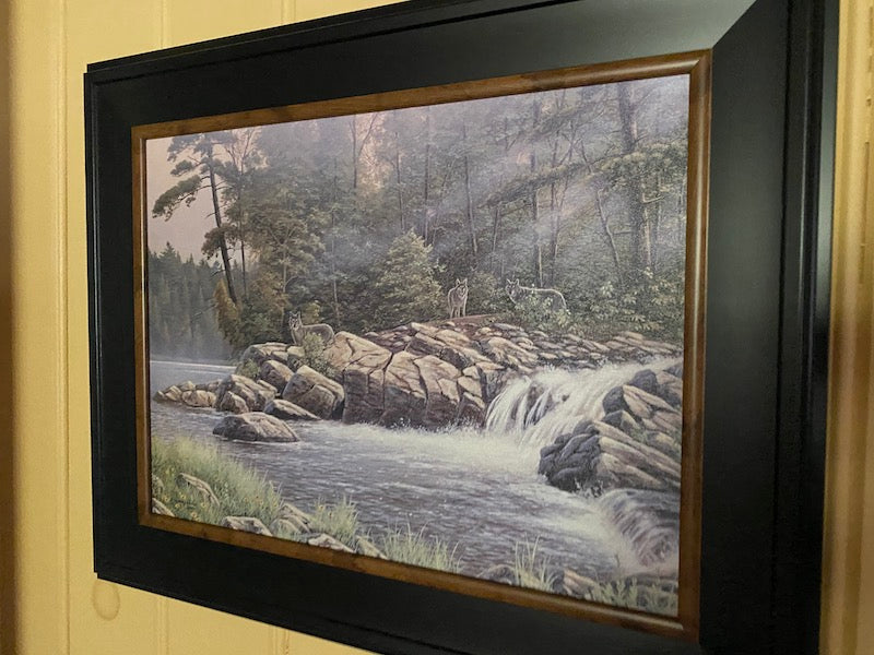 Jake Vandenbrink Signed & Framed Print- Above the Falls- Family of Wolves. Signed and dated in the lower left.