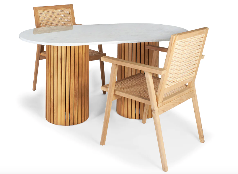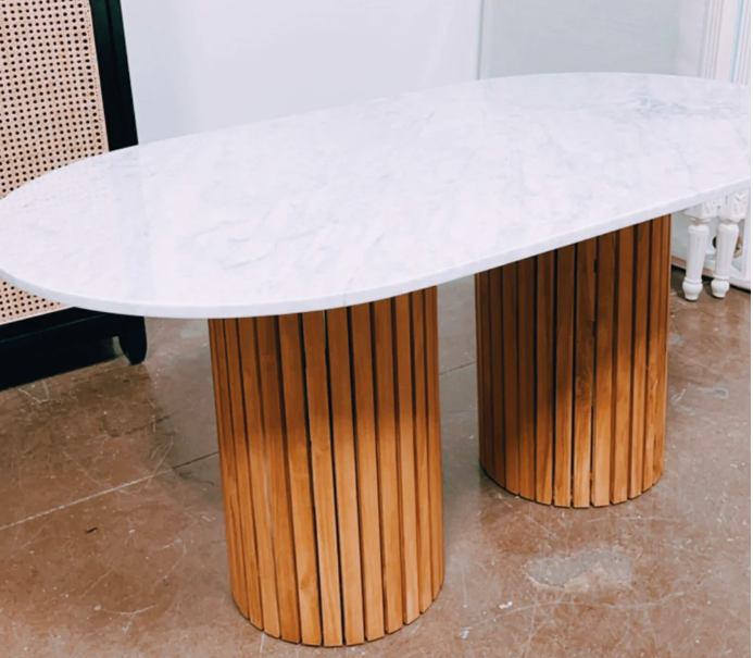 Milan Oval Top Teak Base Dining Table- retail $3,200 (*2 Available).