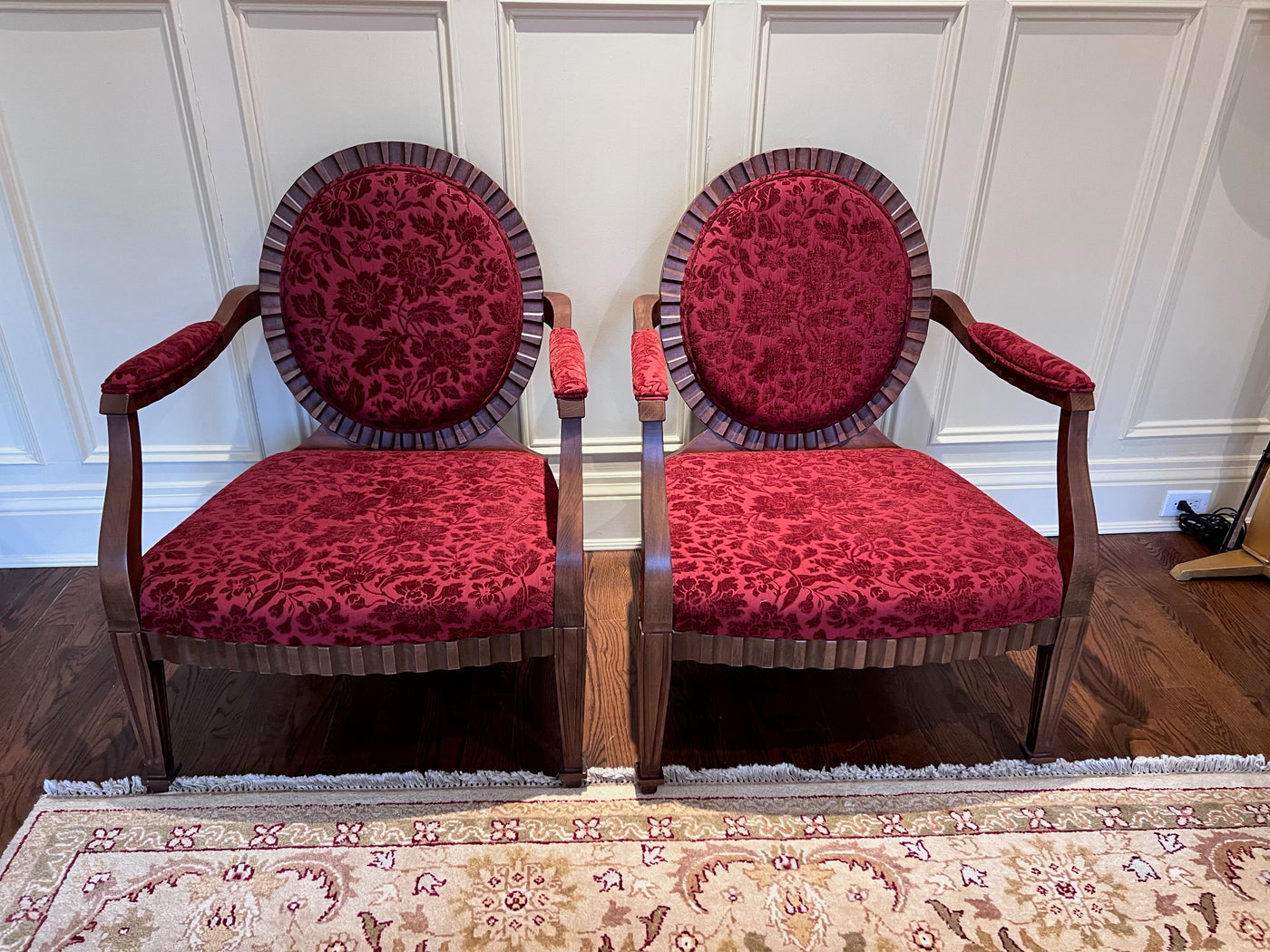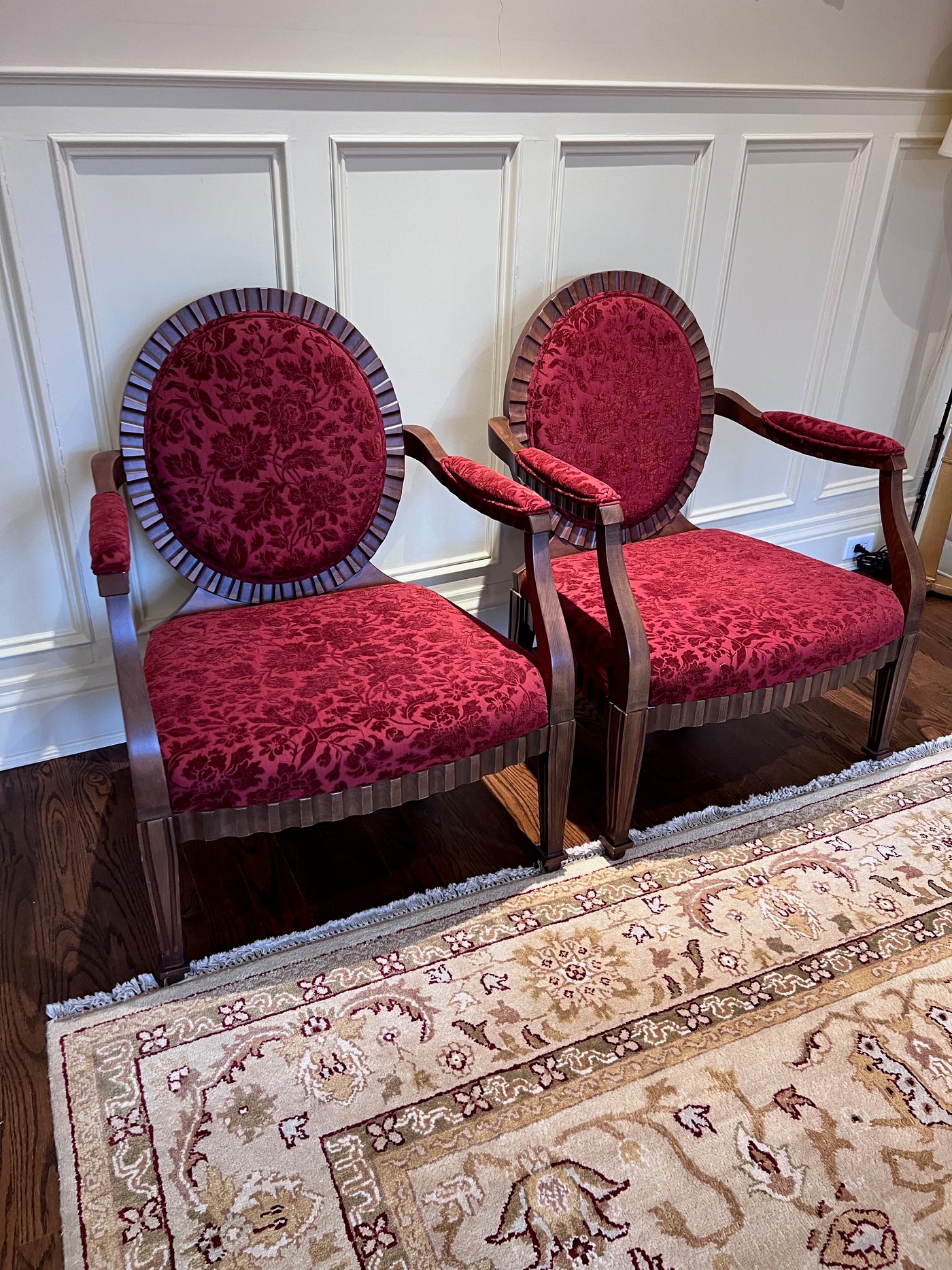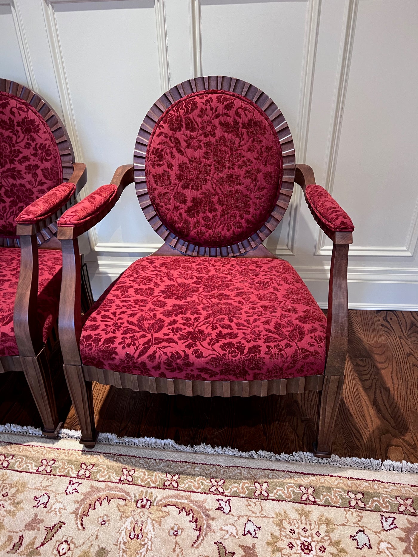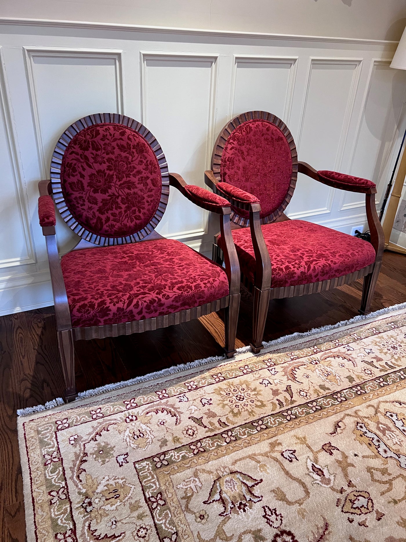 Pair of Beautiful Red Upholstered Round Back Armchairs from 'Sita Chairs'
