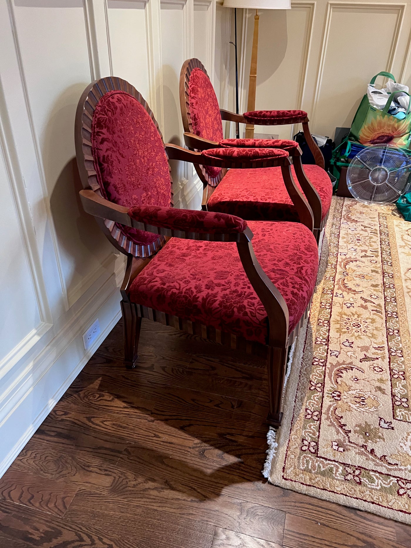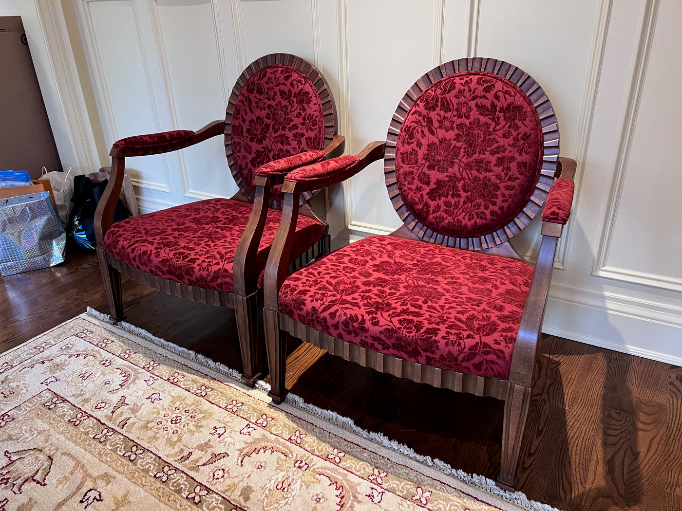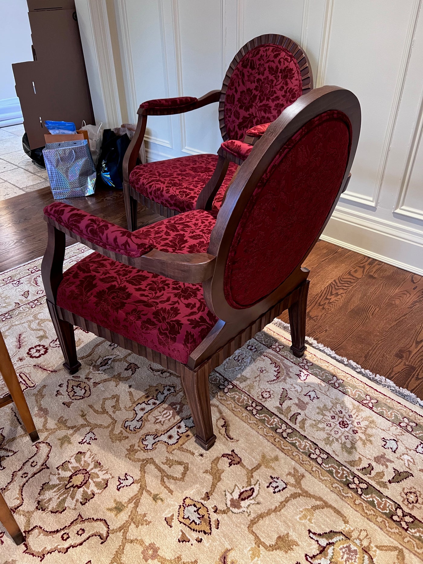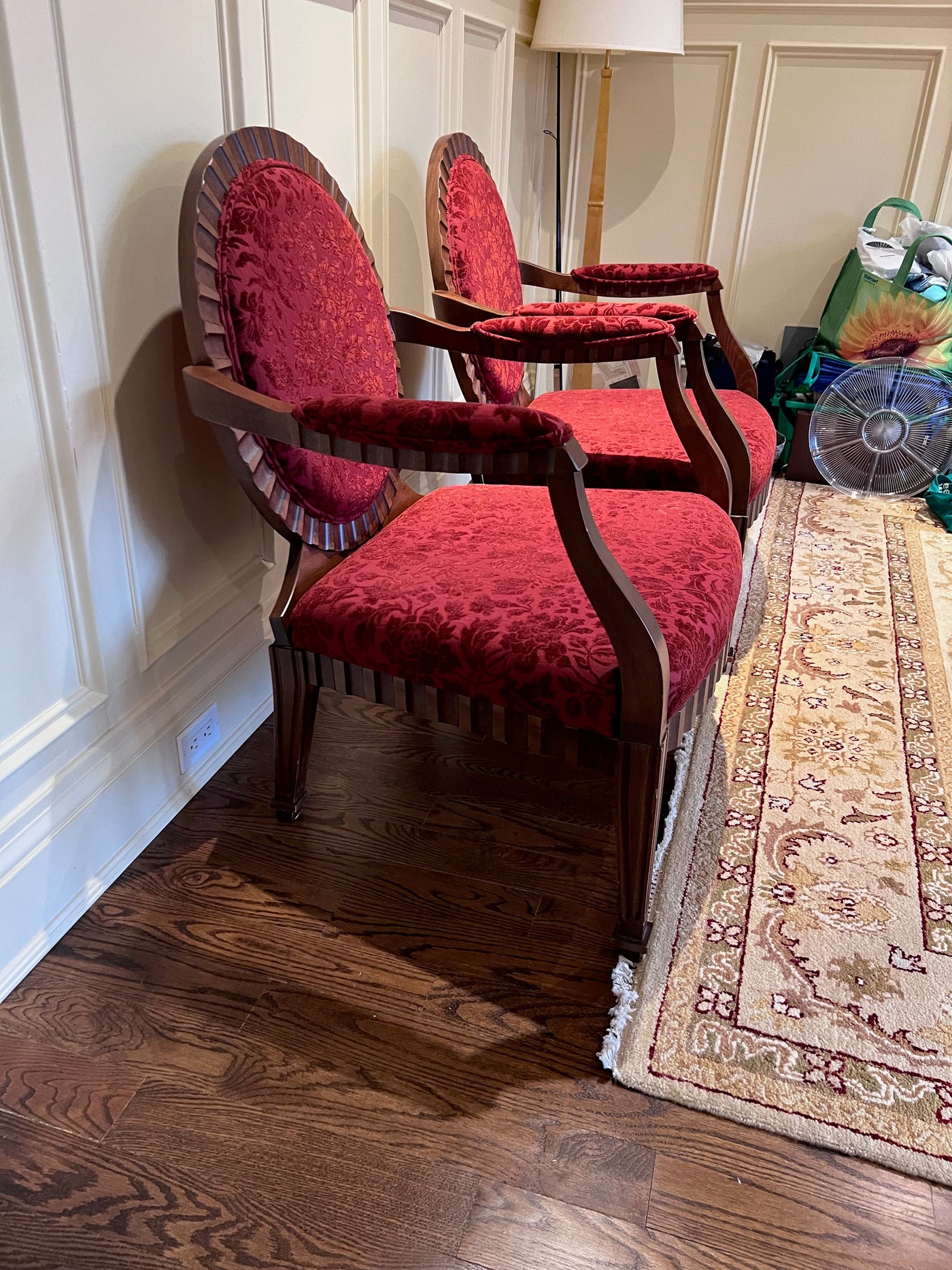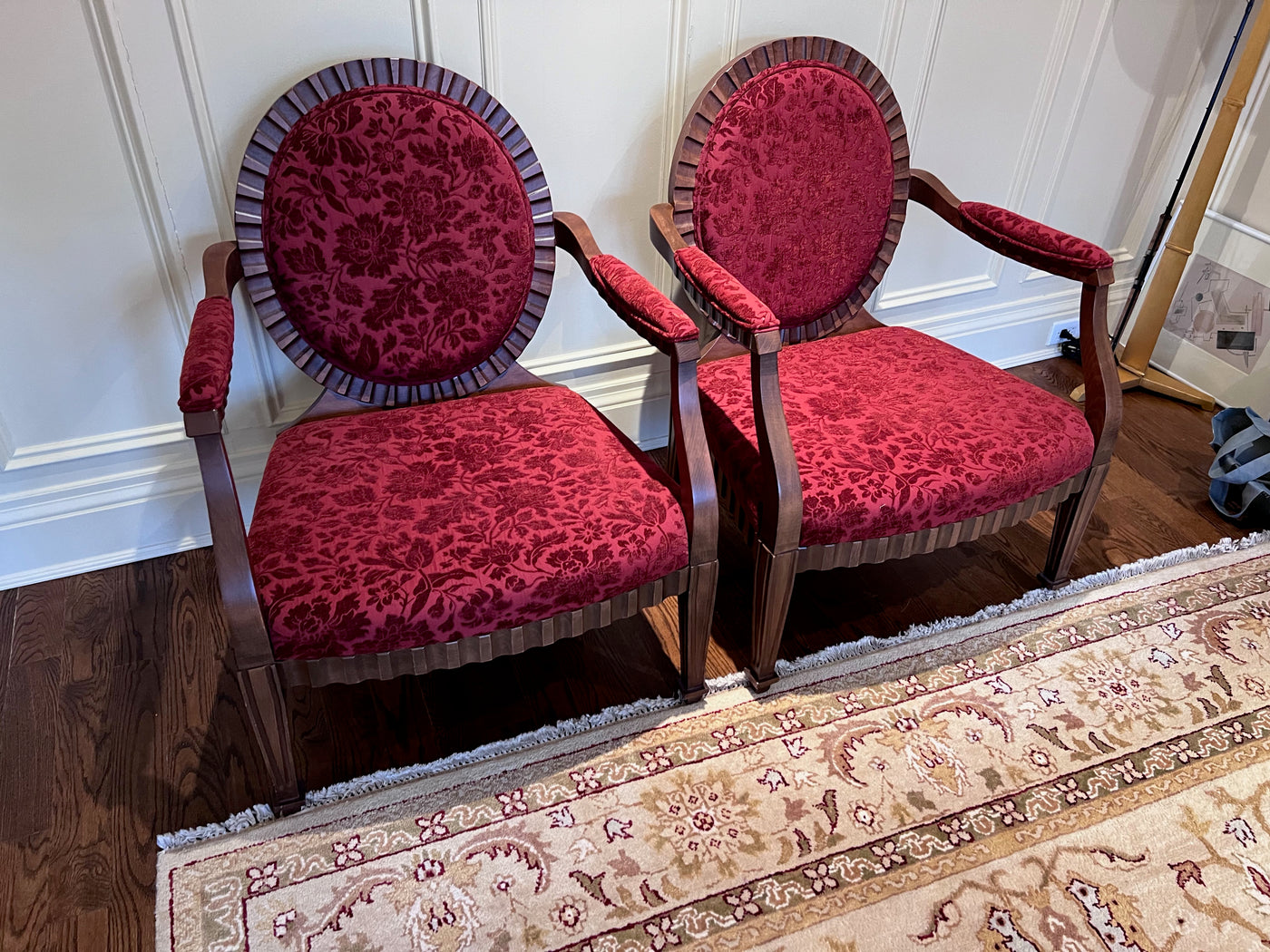 Pair of Beautiful Red Upholstered Round Back Armchairs from 'Sita Chairs'