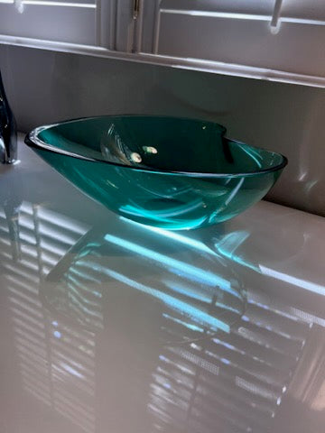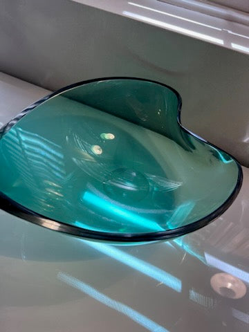 Orrefors green glass Leaf Shaped bowl by edward hald.