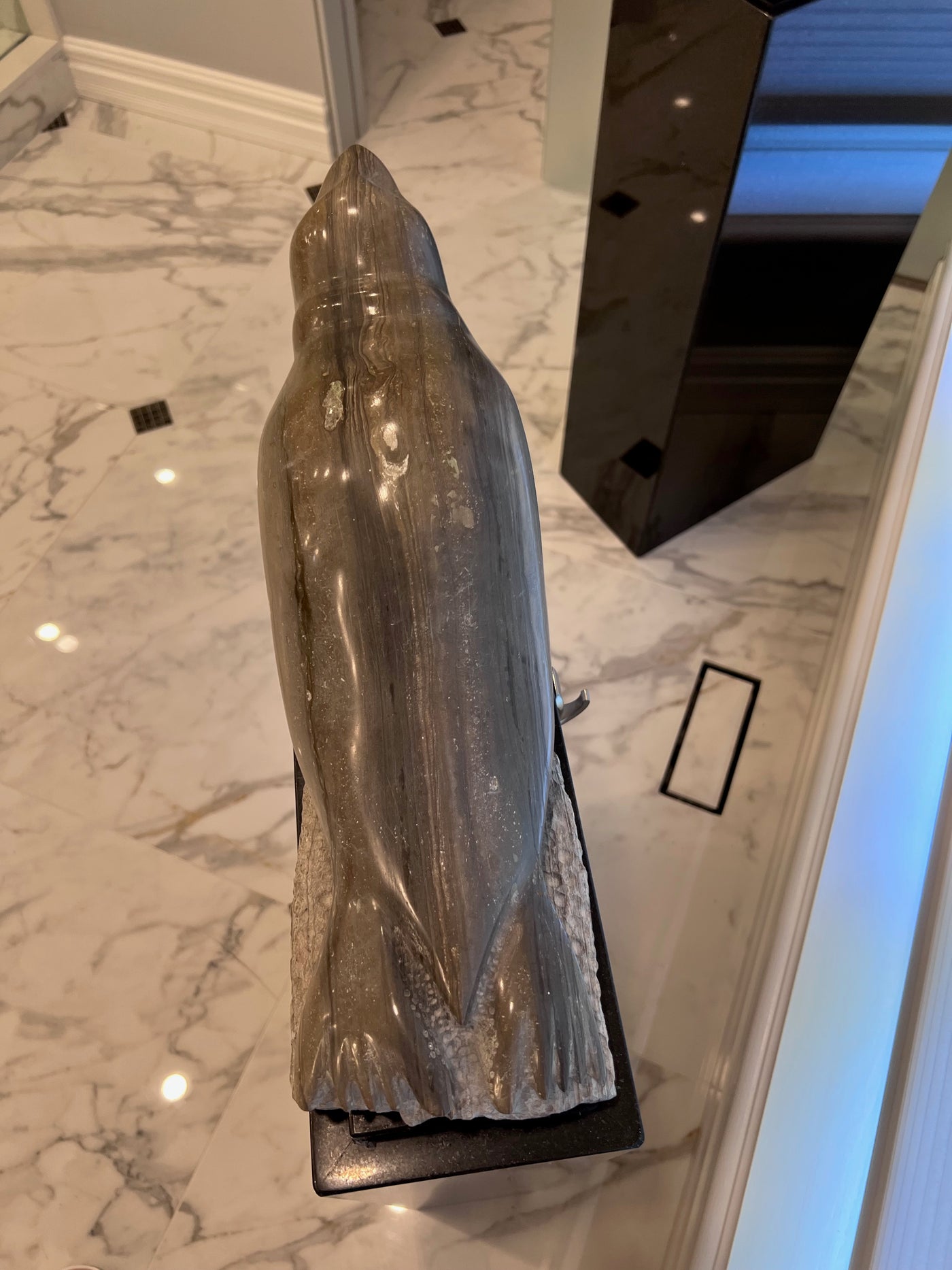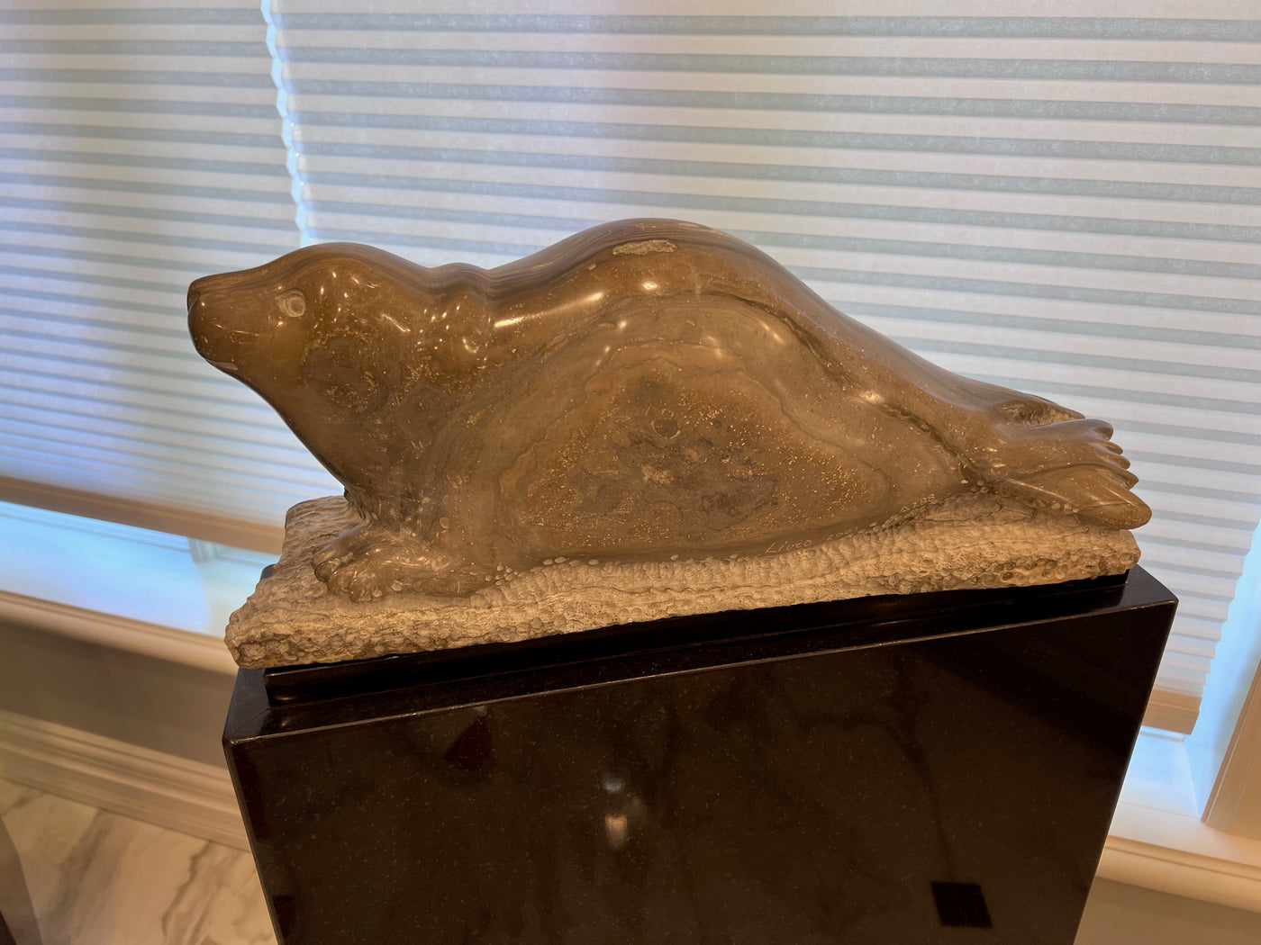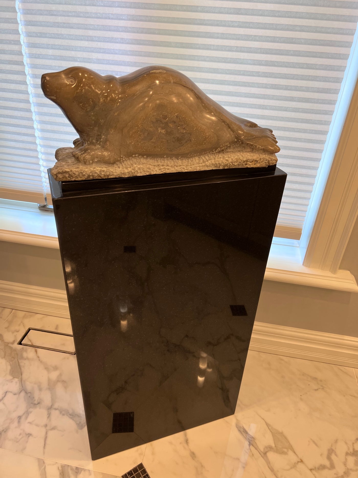 Signed Soapstone Sculpture- Seal, Sitting on a Beautiful Granite Stand