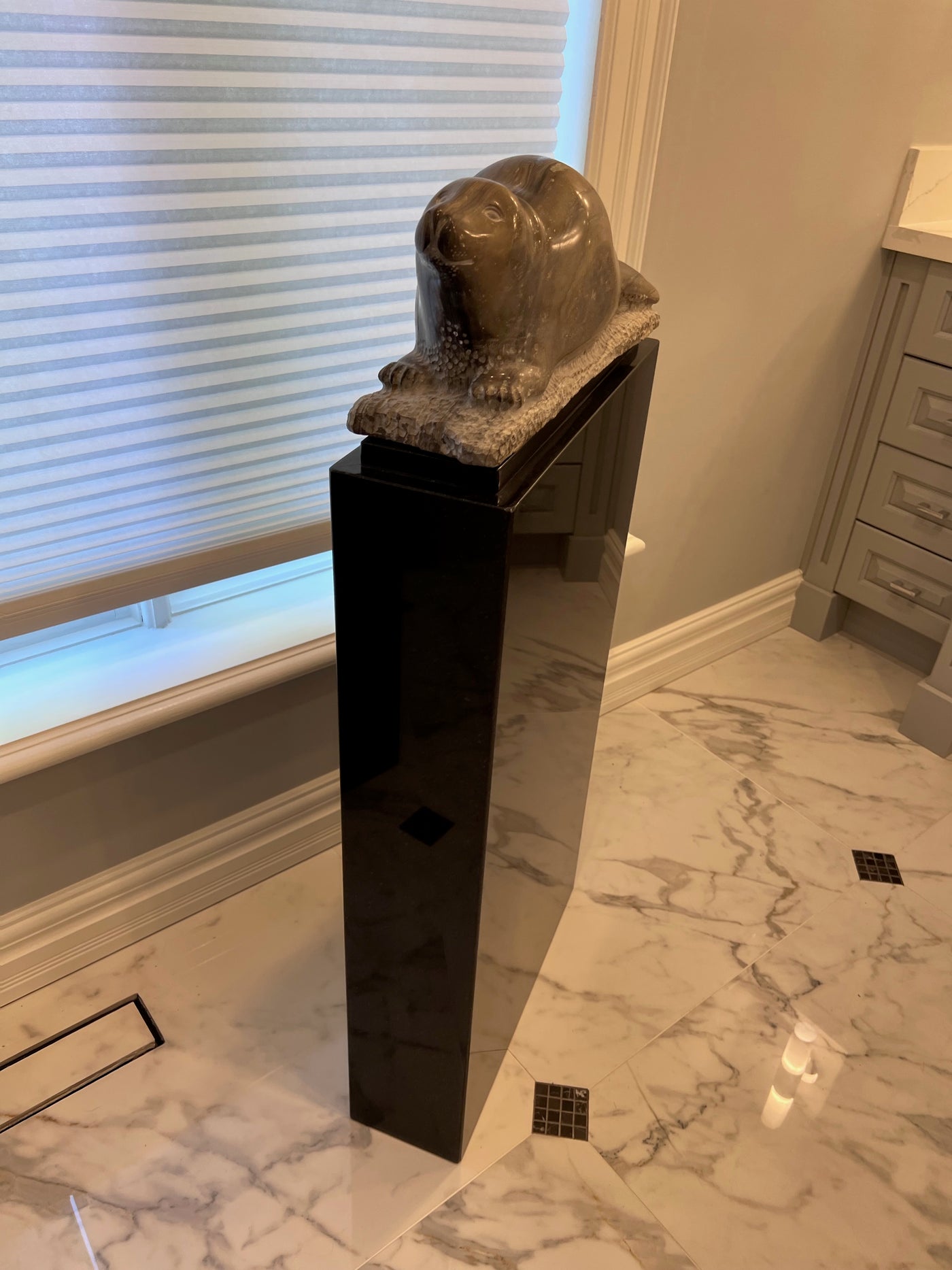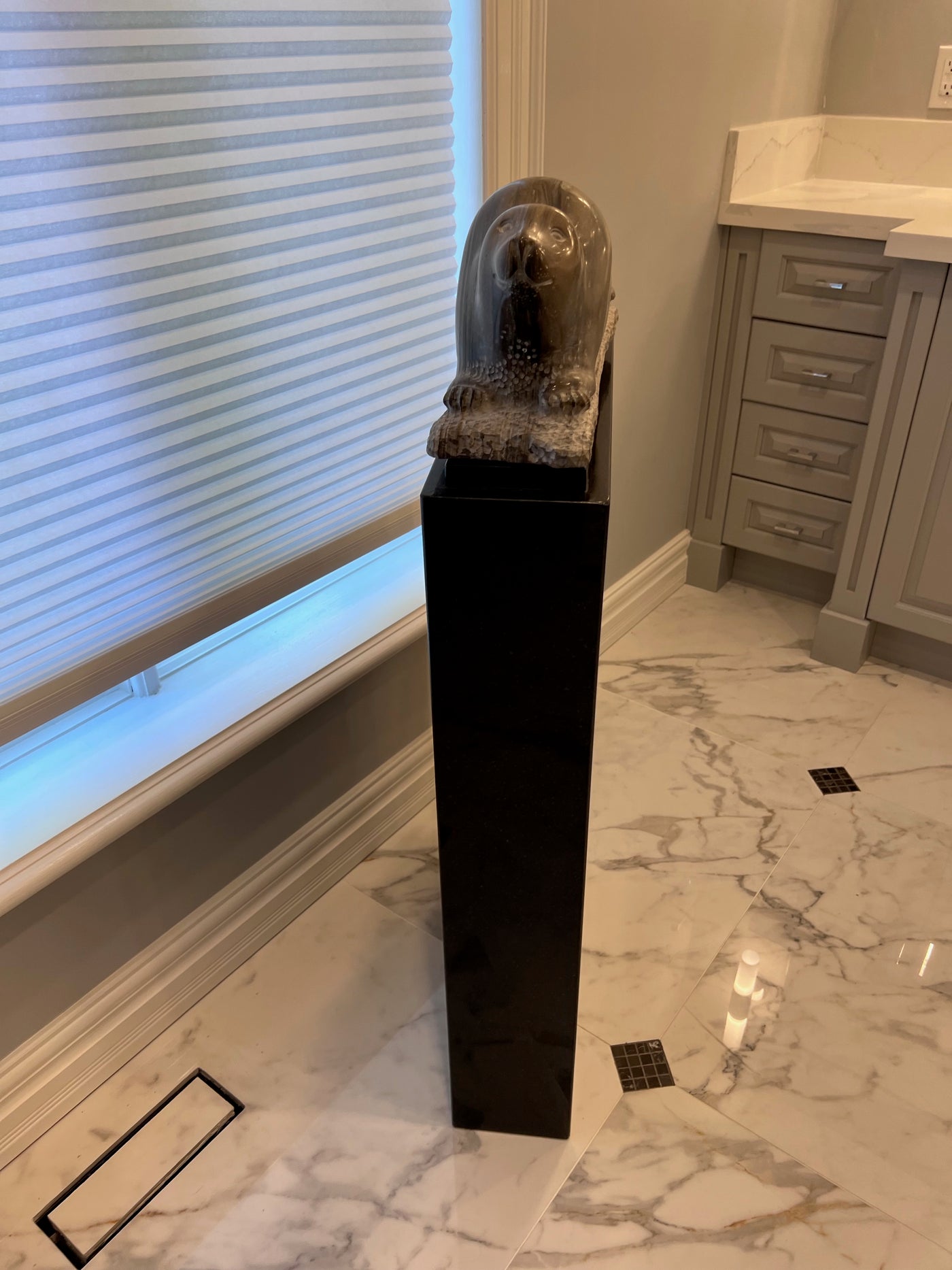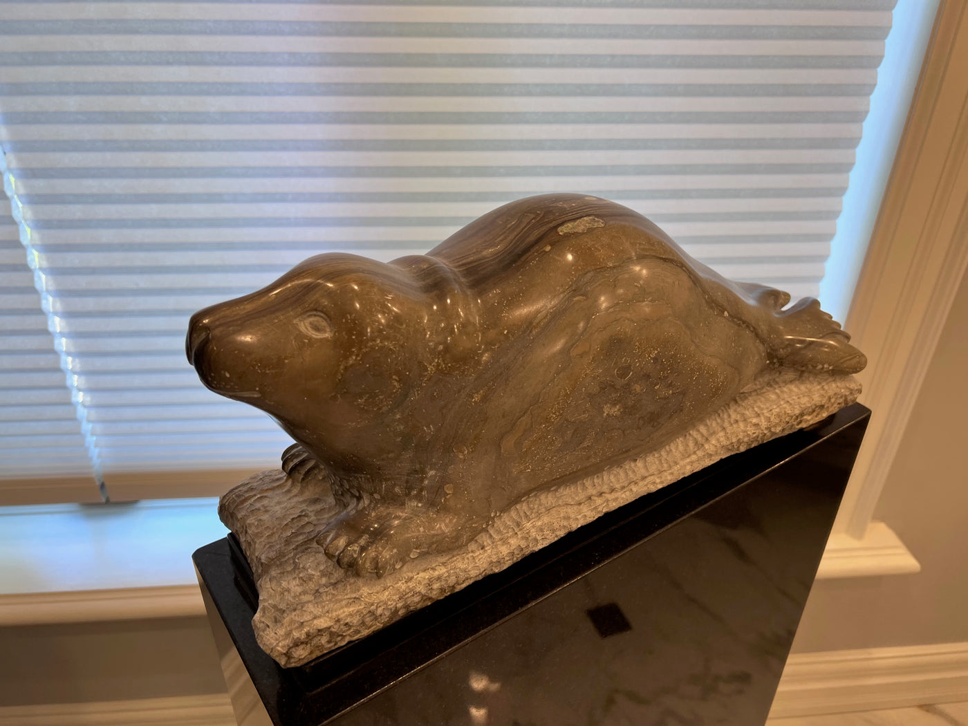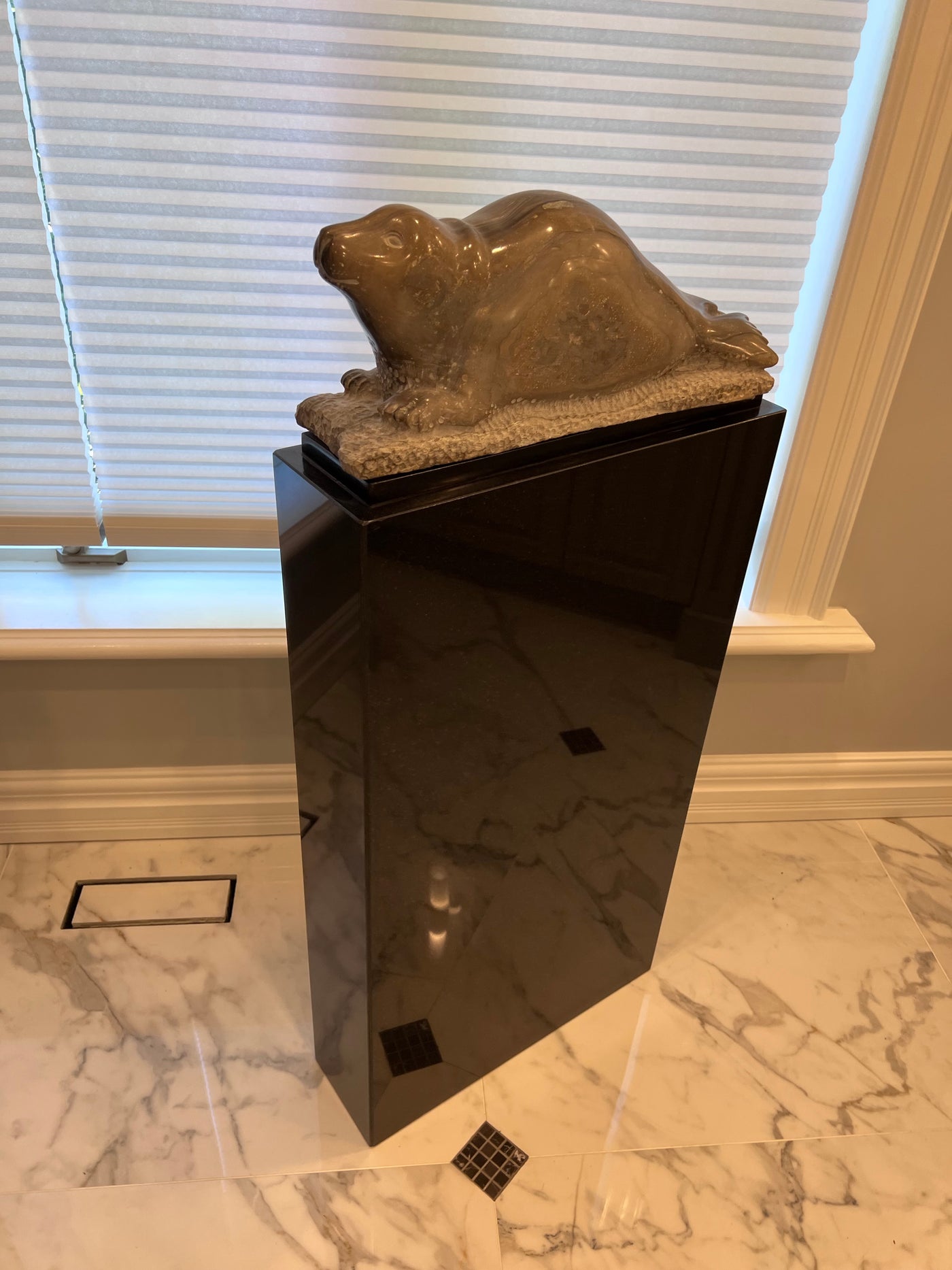 Signed Soapstone Sculpture- Seal, Sitting on a Beautiful Granite Stand