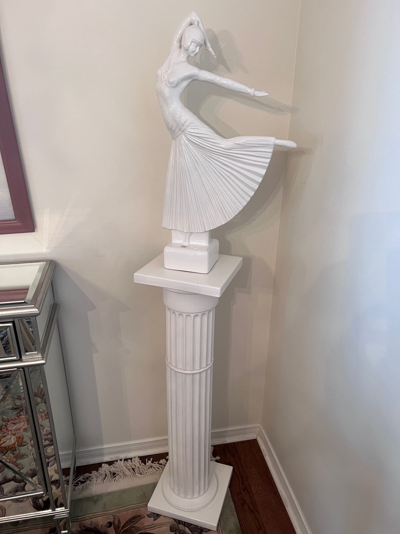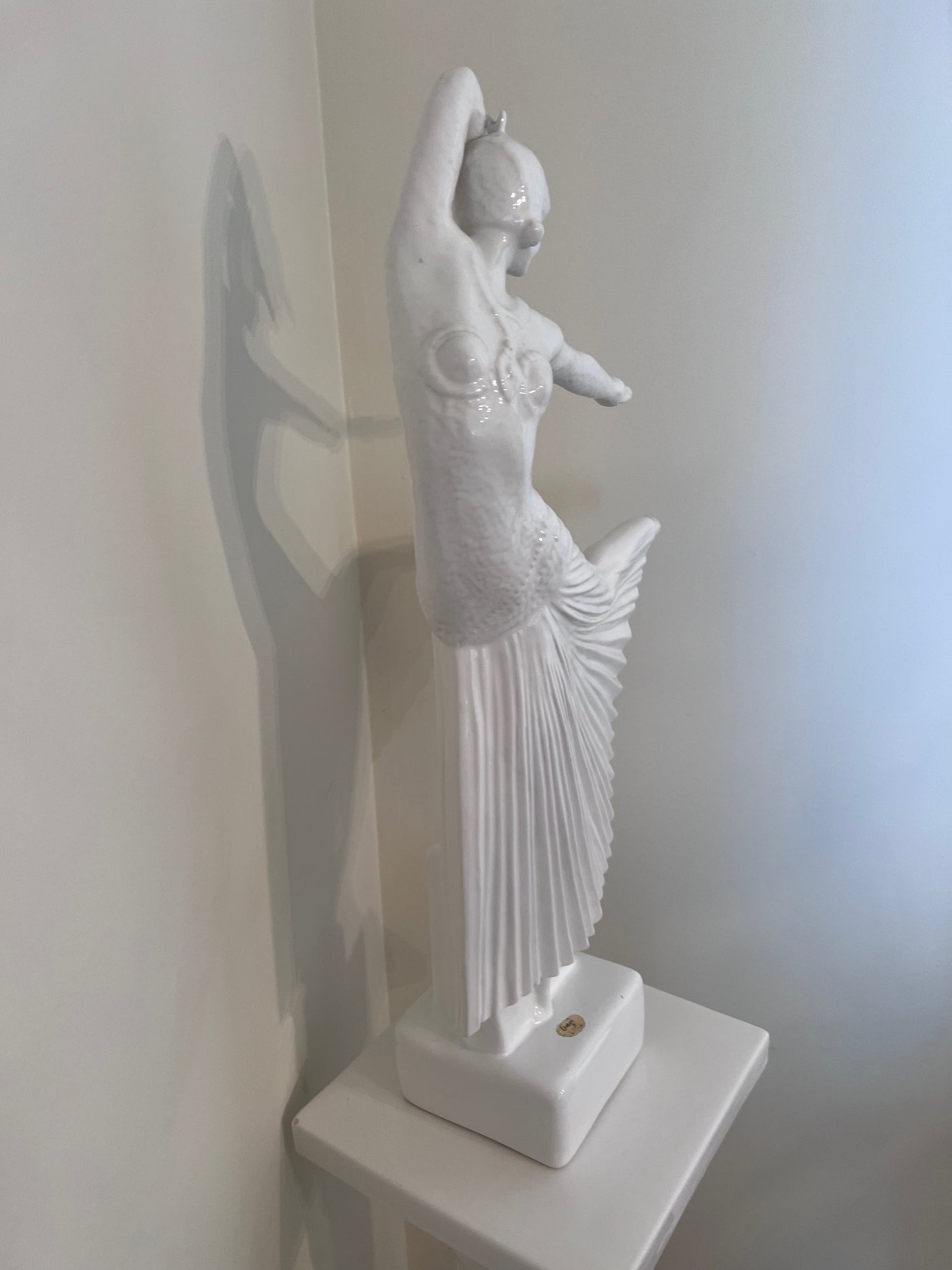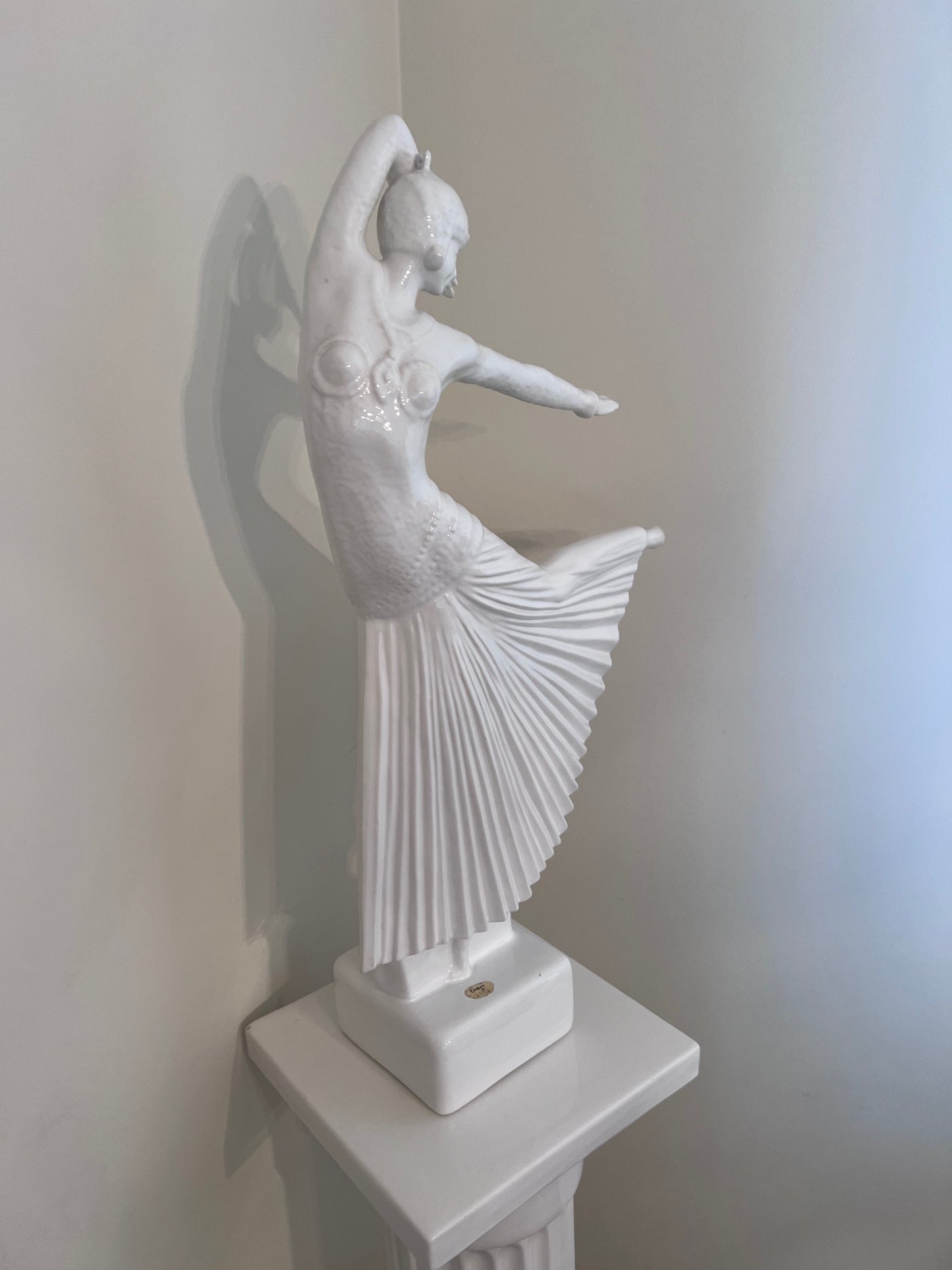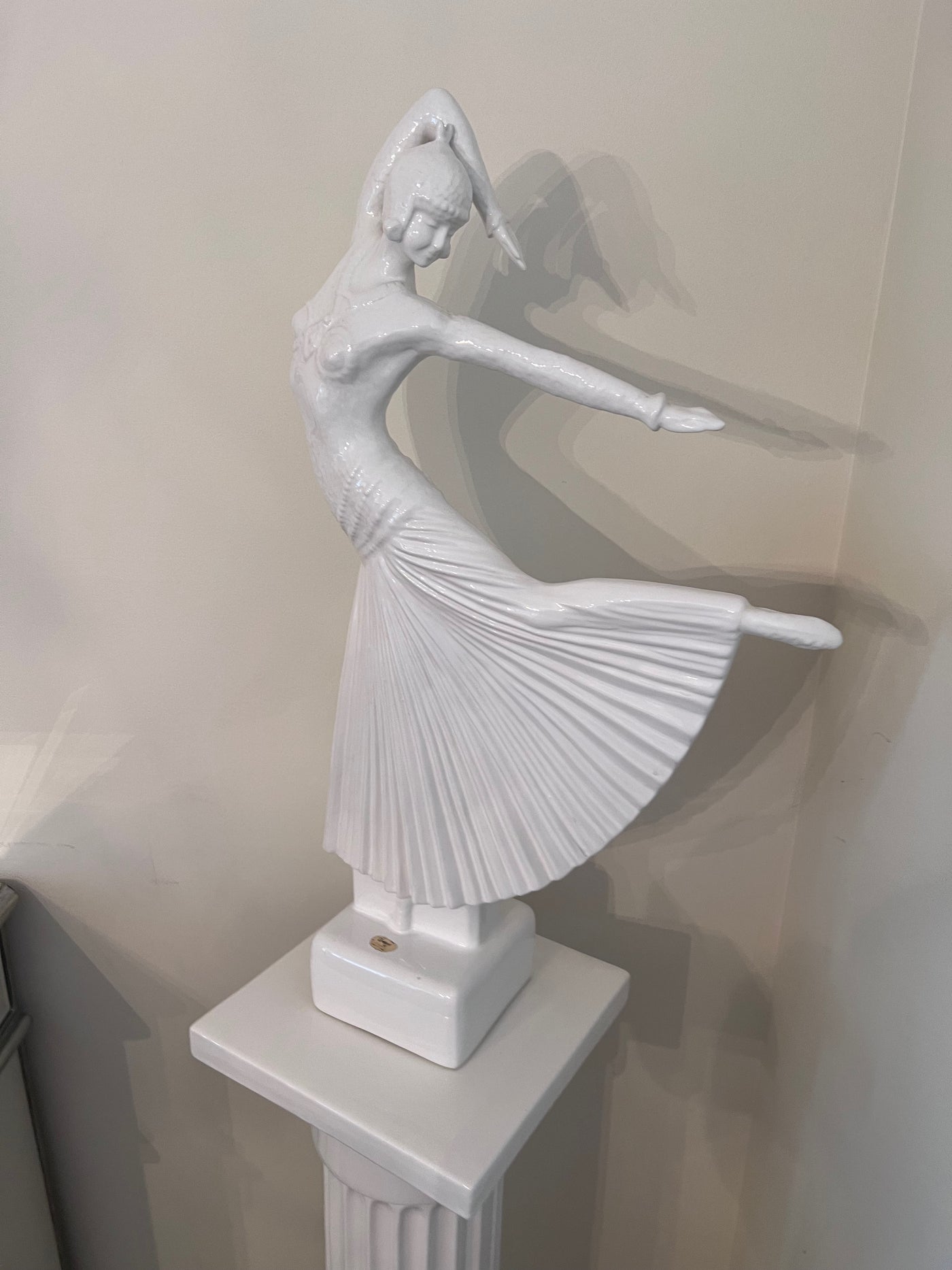Ceramic White 'Dancer' Sculpture on Pedestal Stand.