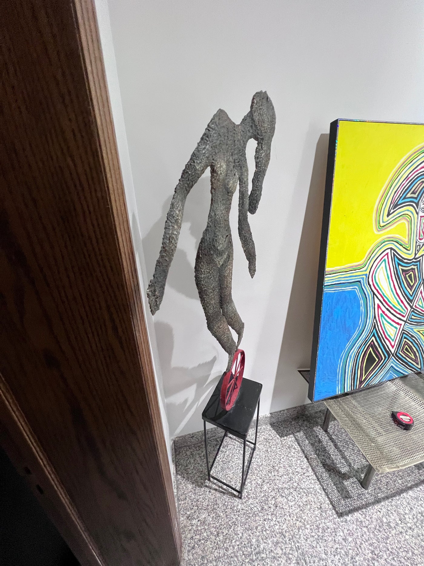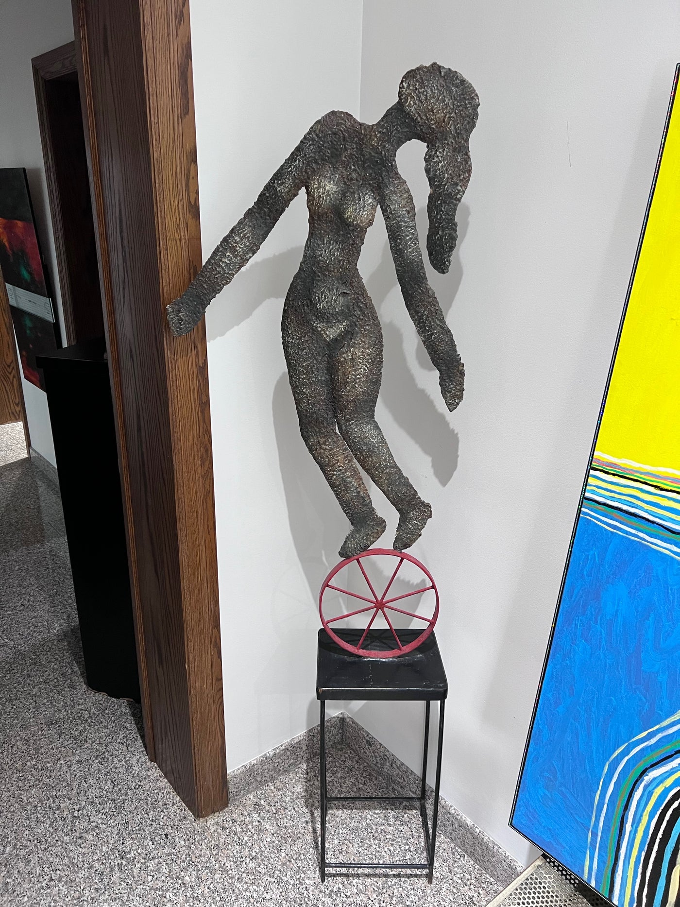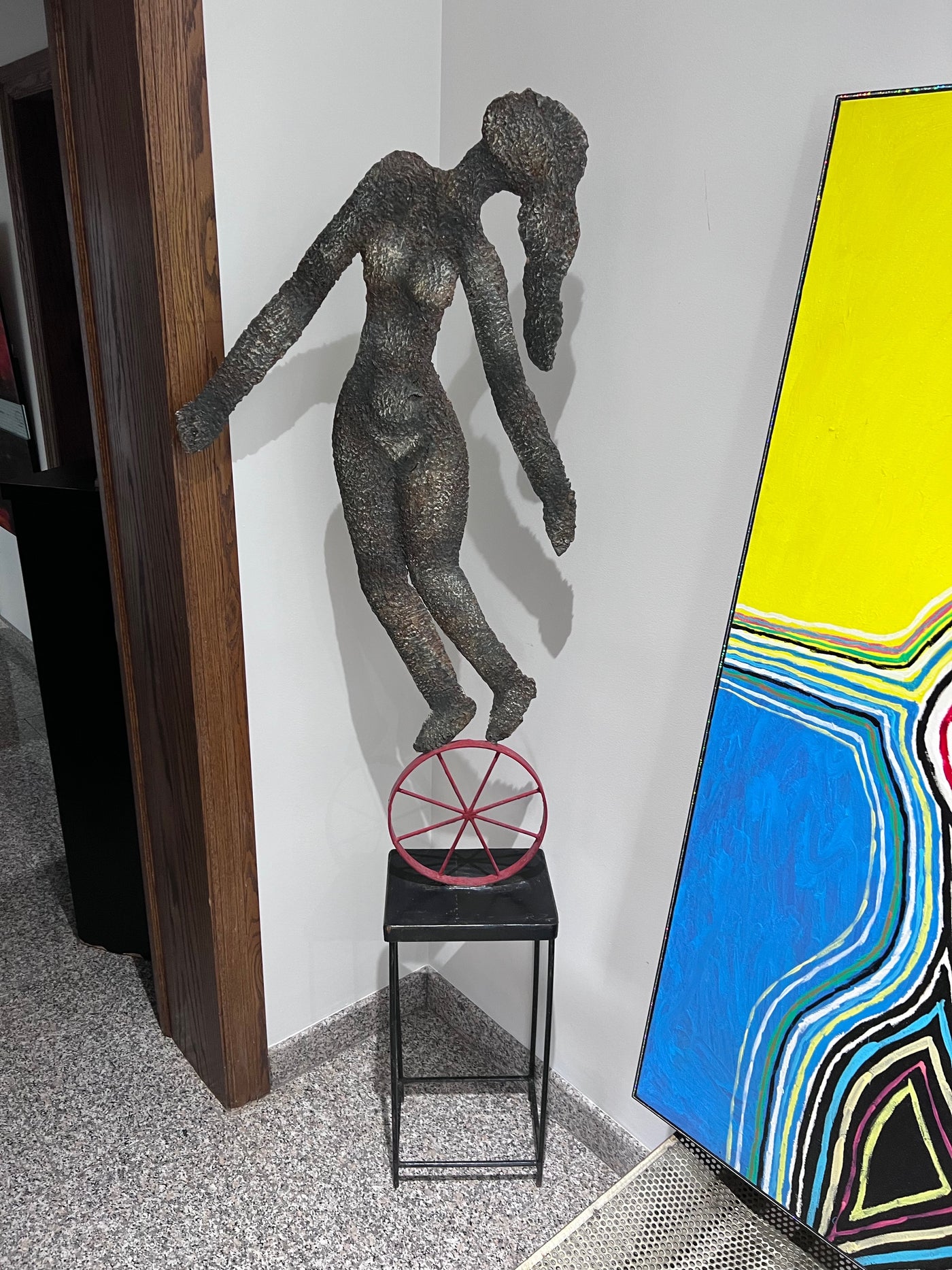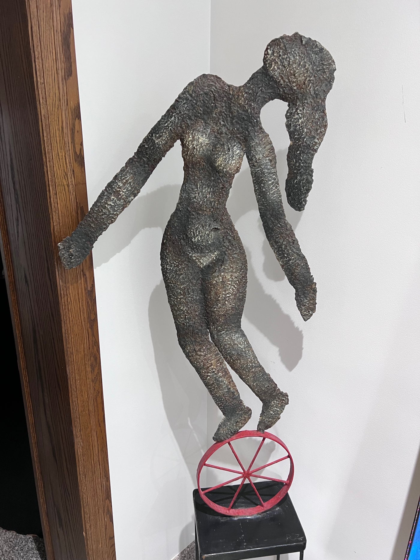 Ruben Zellermayer Painted Steel Sculpture- 'Girl on Wheel'.